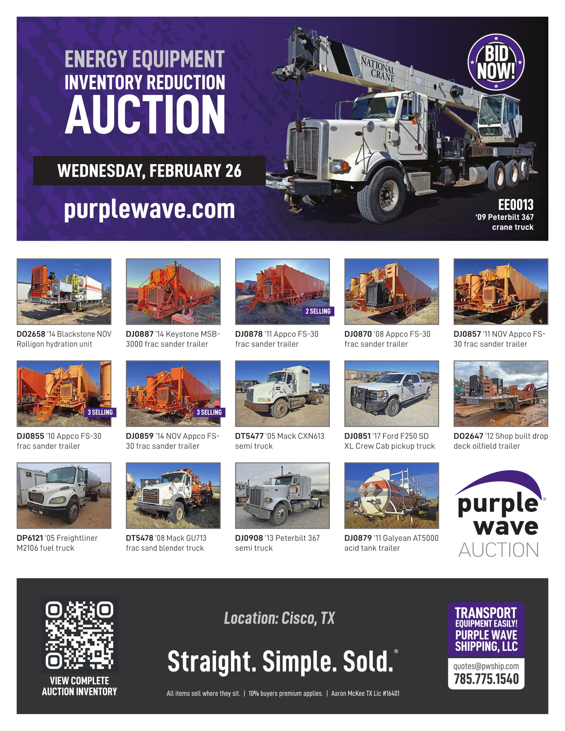 SOLD! February 26 Energy Equipment Inventory Reduction Auction