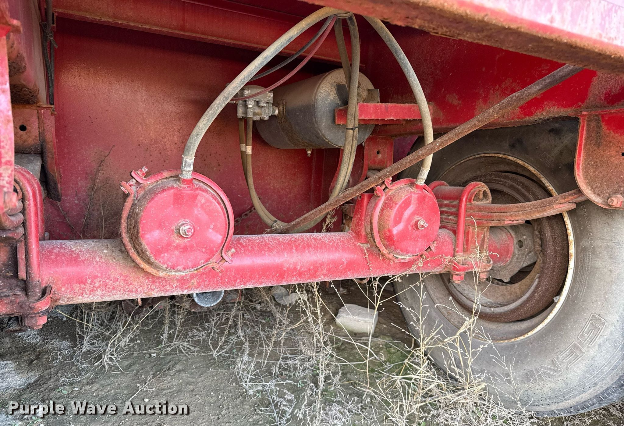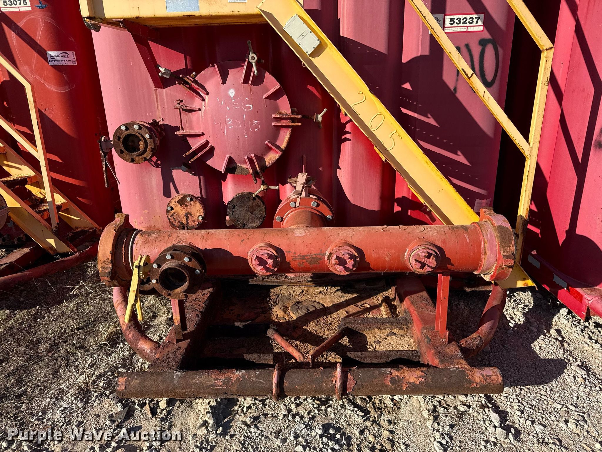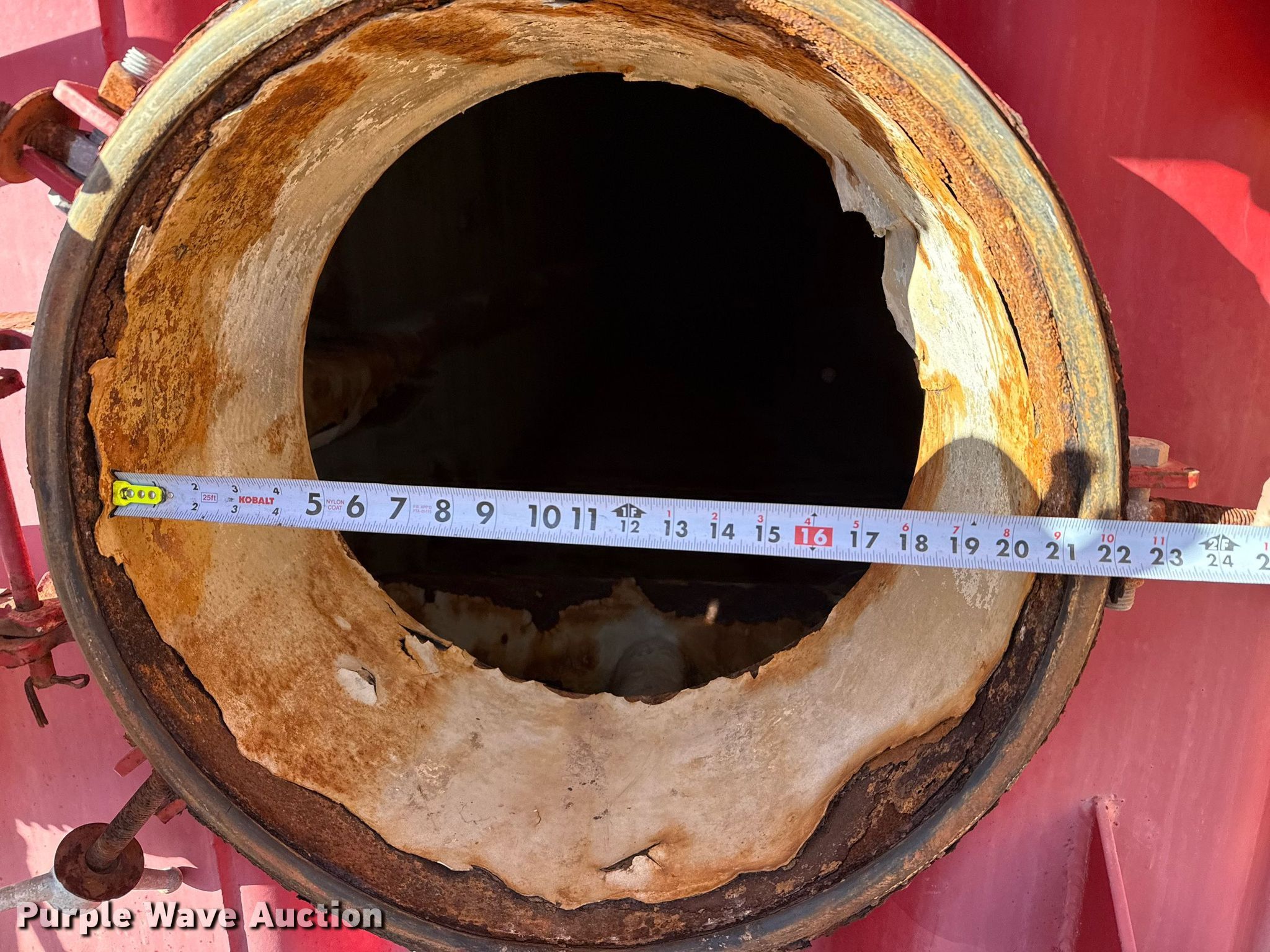Dragon Frac tank trailer. Unit #: 1538. Dimensions Overall: 46' x 102" W. Features Tank type: Steel, Tank coating, Compartments: 1, Outlet valves: 1 Size: 8", No. of manways/manholes: 1 Width: 20". Chassis Suspension: Spring, Brakes: Air. Tires Steel wheels, Size: 11R22.5. Notes Serial tag missing. Buyer is responsible for all aspects of loadout and removal. This is worksite support equipment and will not come with a title. Transfer of ownership documentation will be a bill of sale. Cisco, TX 76437