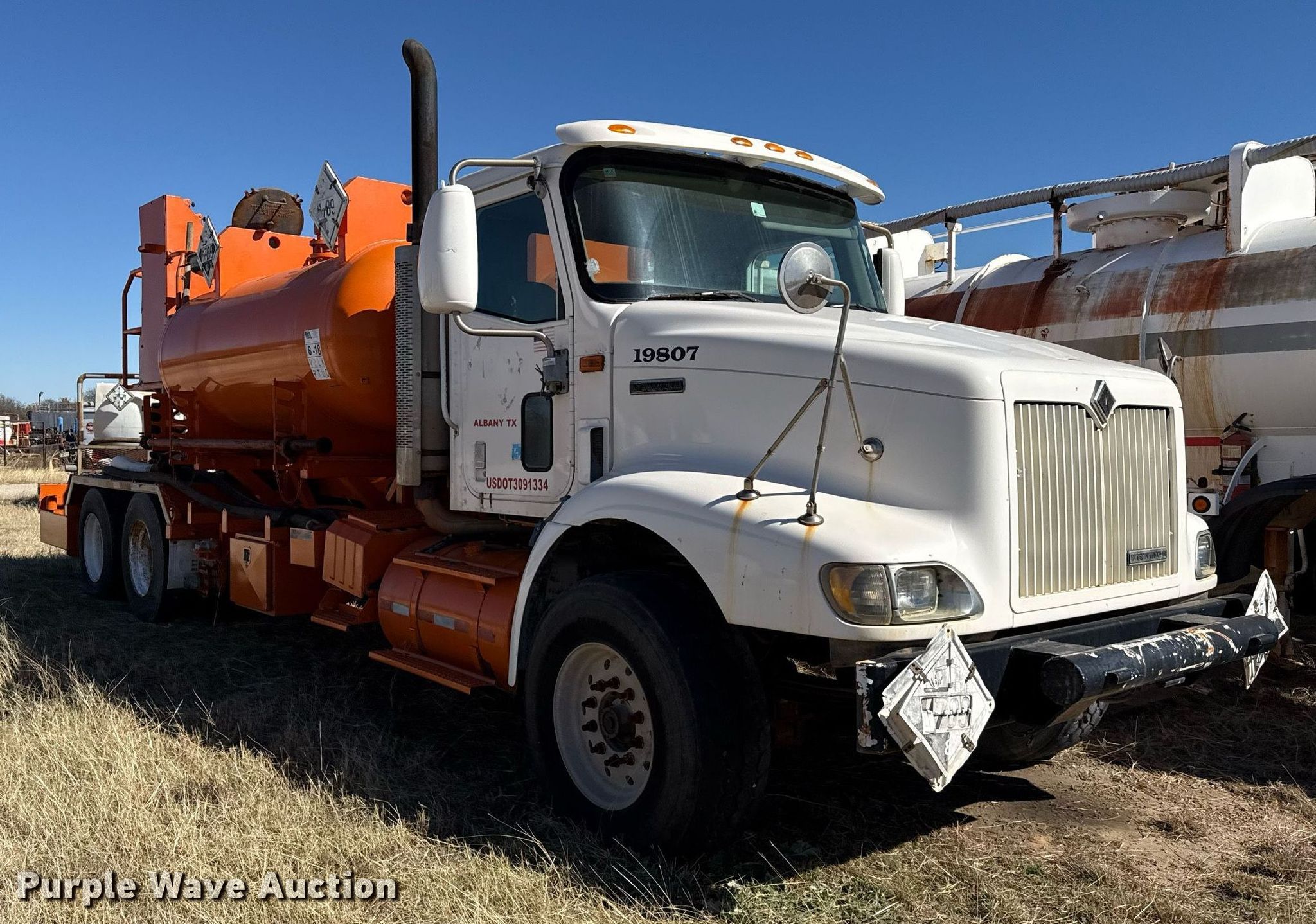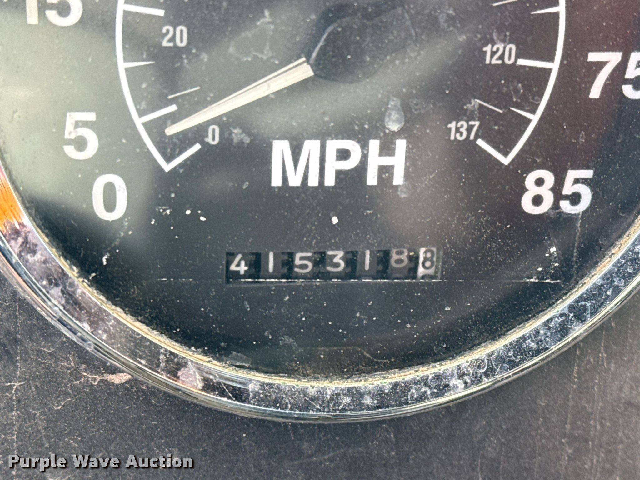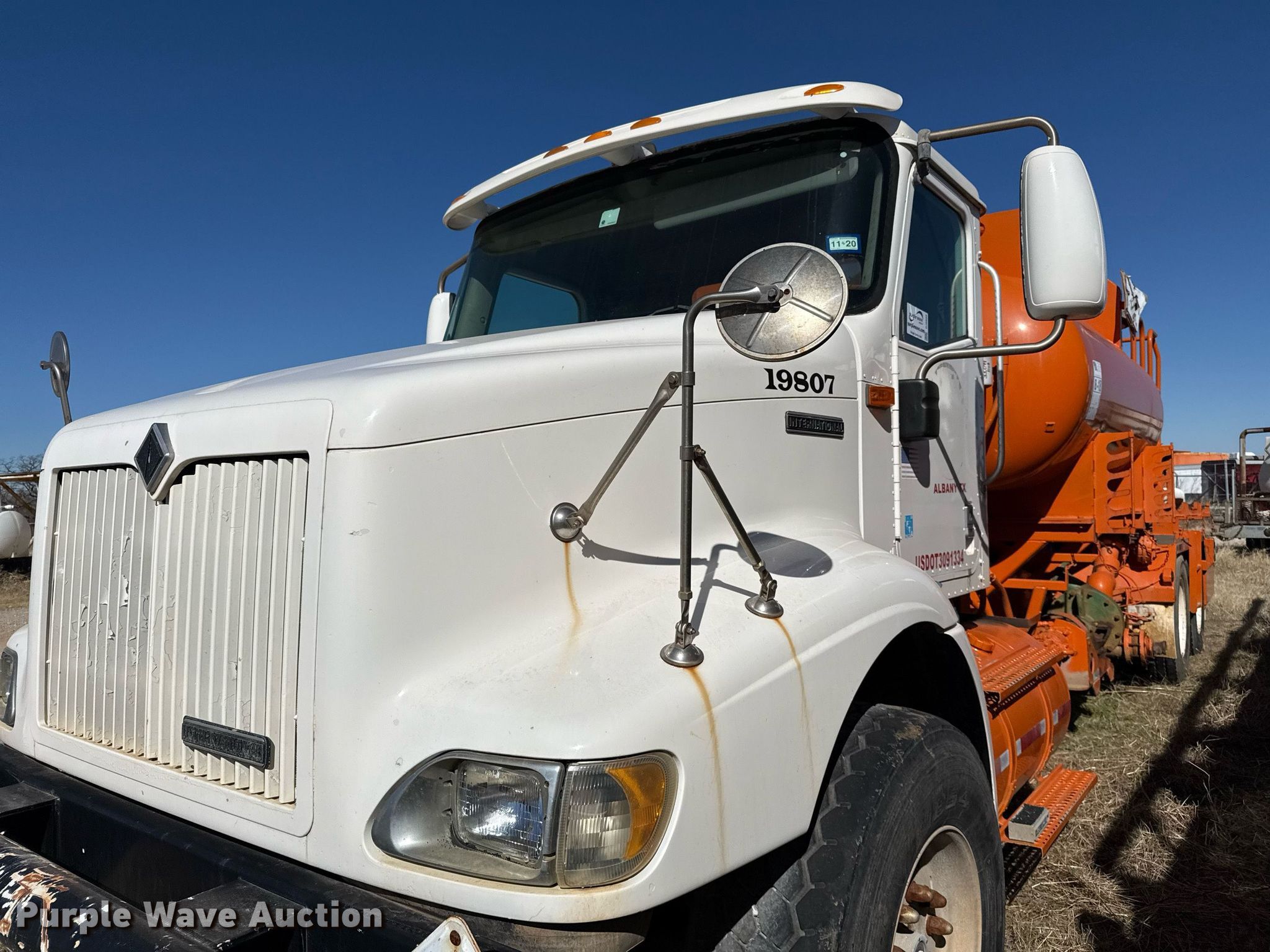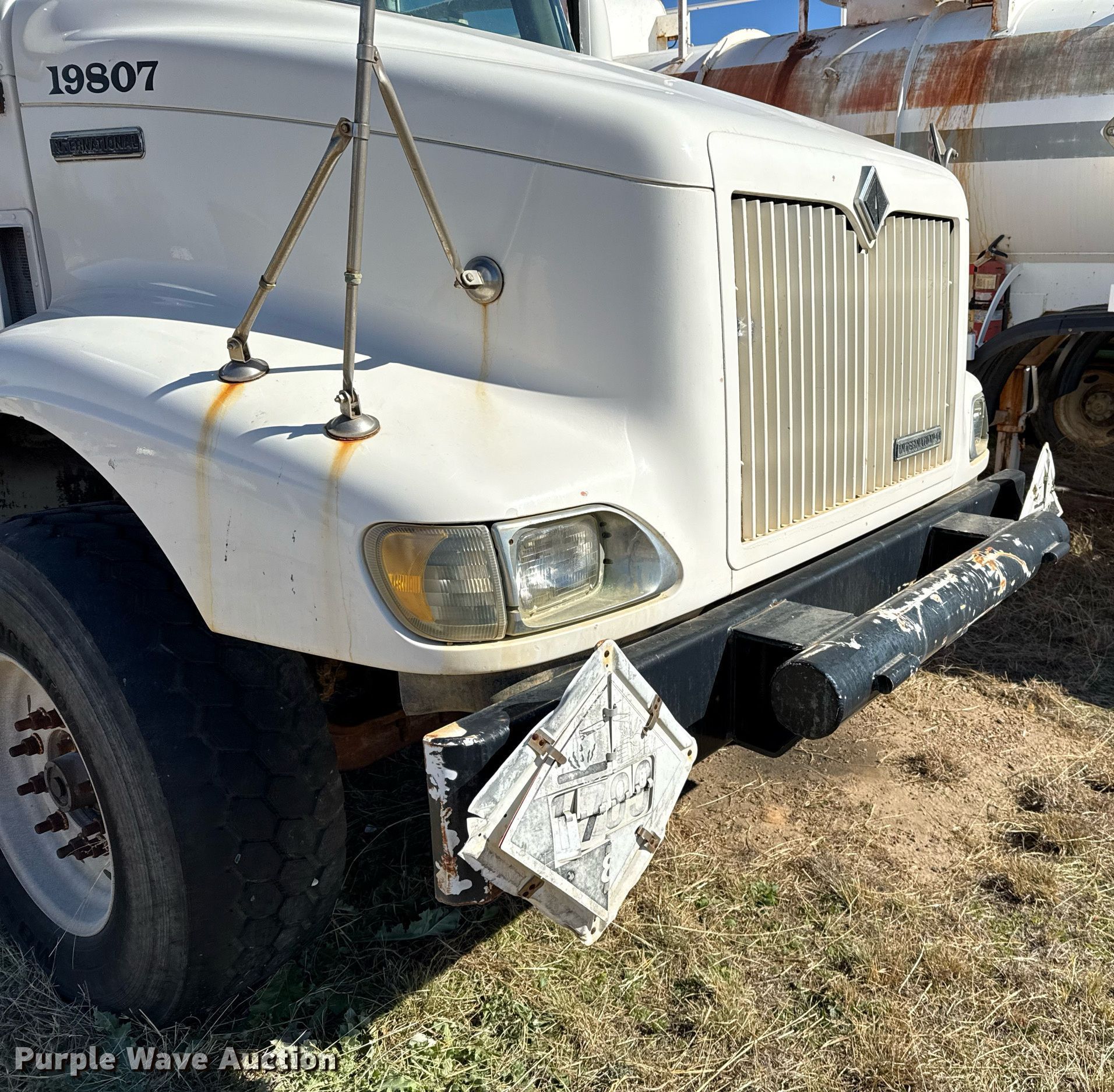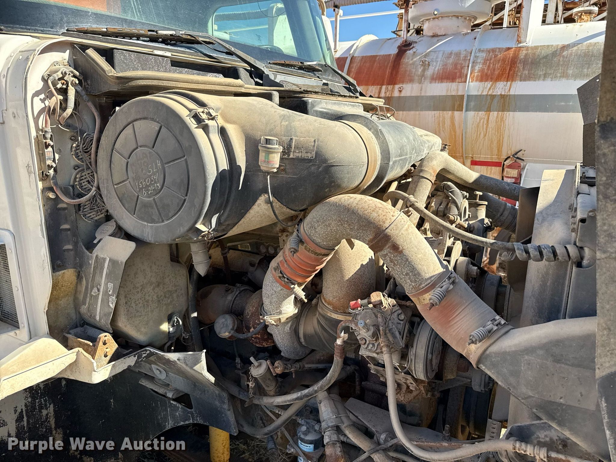 2000 International 9100i oilfield acidizing pump truck. Miles: 415,319 on odometer, VIN: 2HSCBAMR9YC088659, Unit #: 19807. Engine Detroit Diesel Series 60, Displacement: 12.7L, Cylinders: 6, Fuel type: Diesel. Transmission Automatic. Chassis Axles: Tandem, Differential lock: Inter-axle, Suspension: Air, Brakes: Air, PTO, GVWR: 52,000 lbs, Wheelbase: 165". Interior AC, Heat, Cruise control. Features (2) tanks Capacity: 750 gallons, Mission pump. Tires Front: 385/55R22.5, Rear: 11R22.5. Notes Ignition switch missing, Windshield chipped or cracked, Non-operational unit. Buyer is responsible for all aspects of loadout and removal. Texas title. Title has a lien that will be released following the close of the auction. Title distribution may be delayed up to 60 days from verification of funds. Cisco, TX 76437