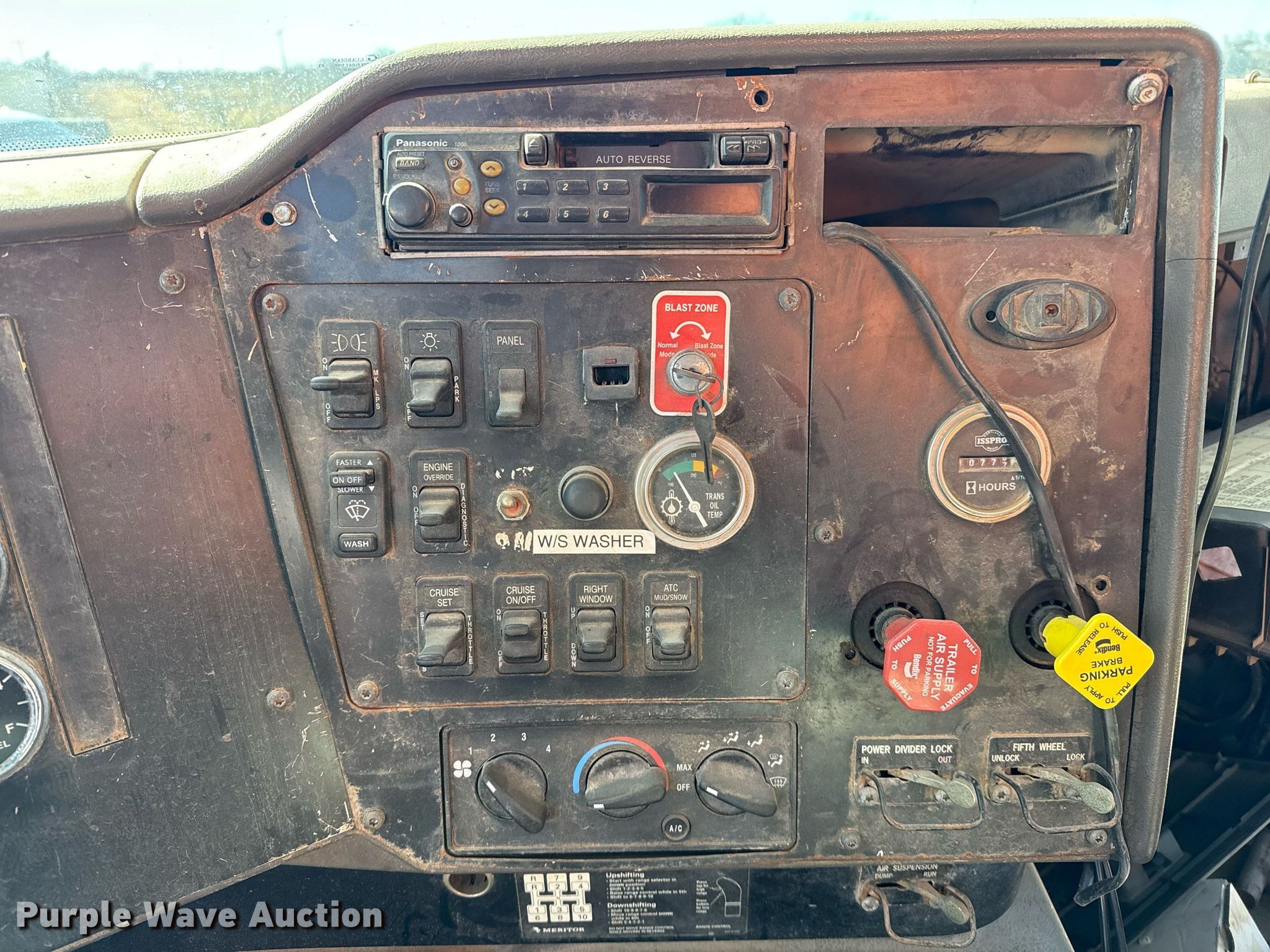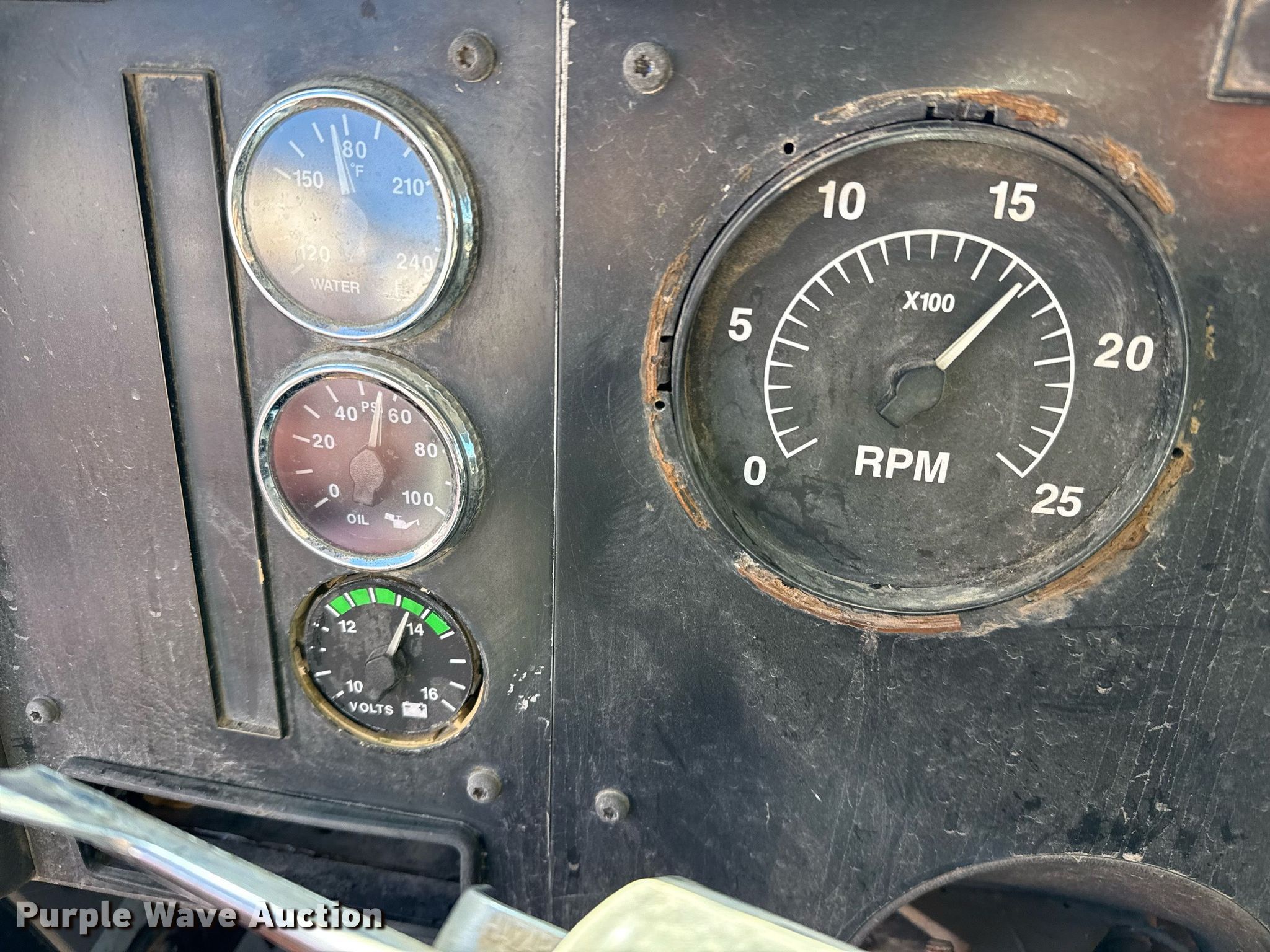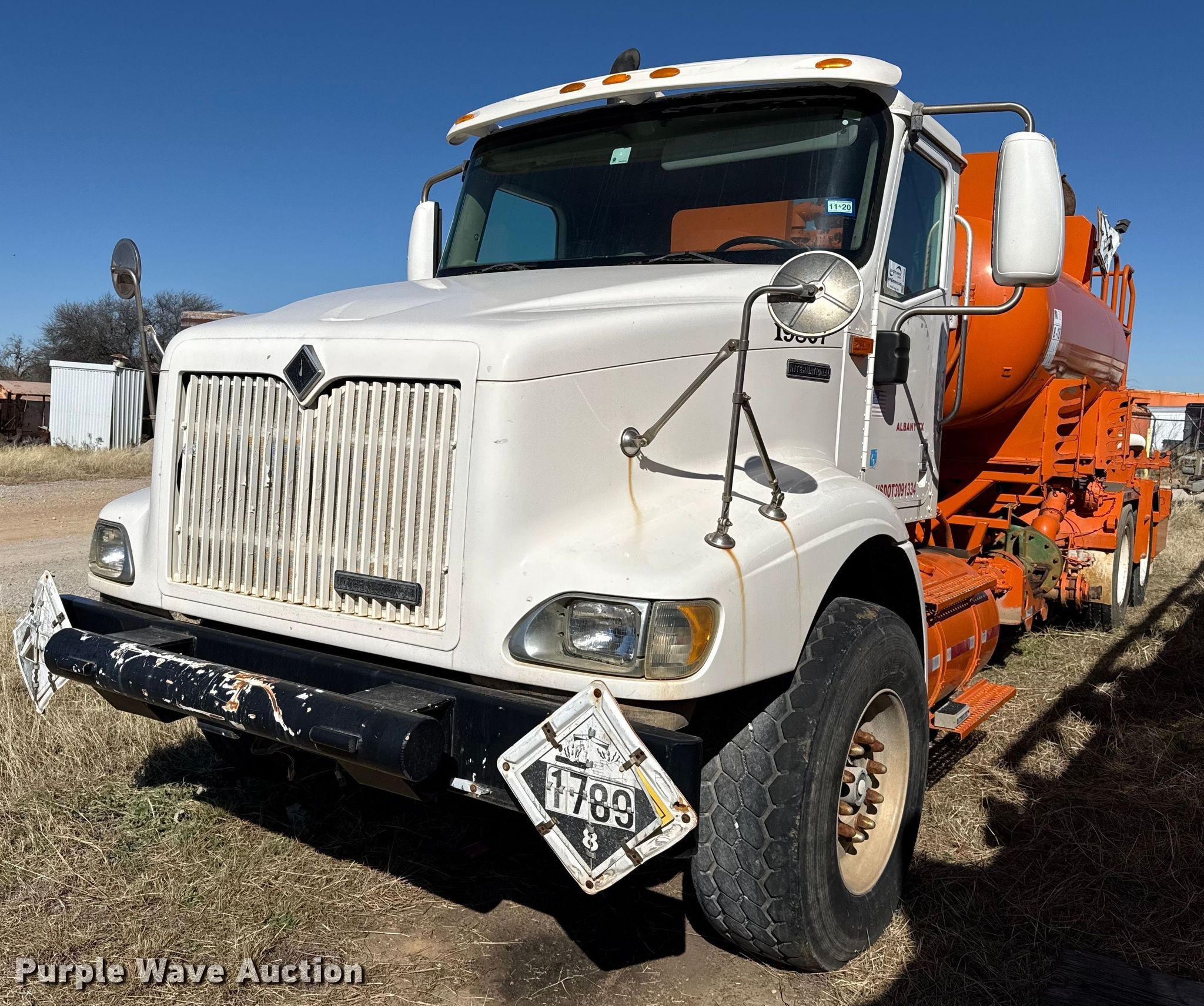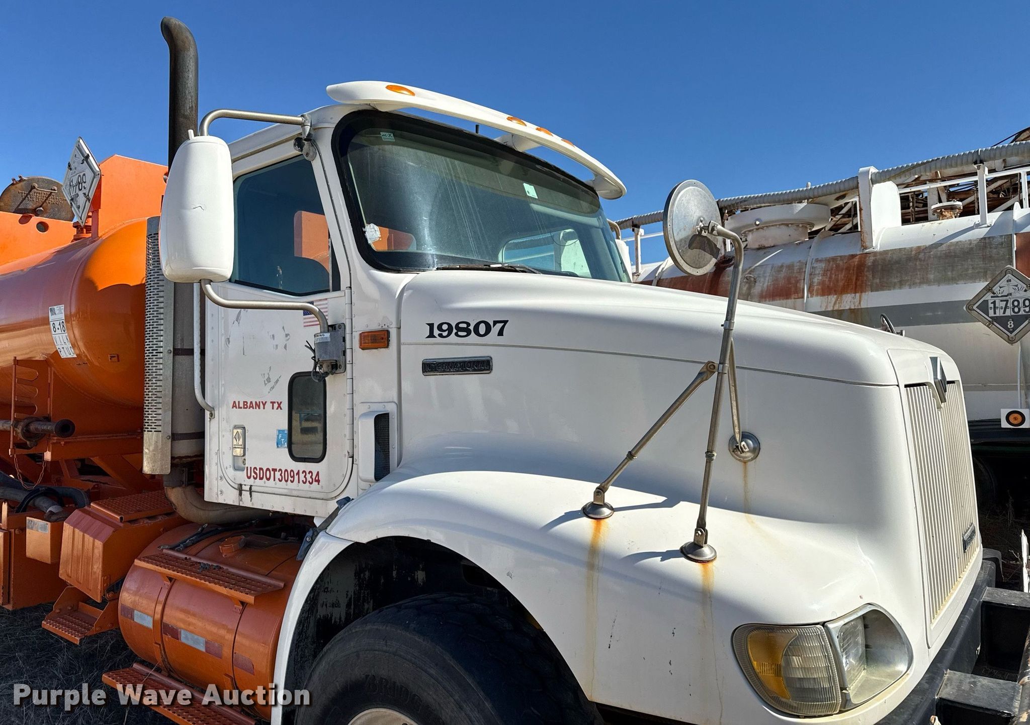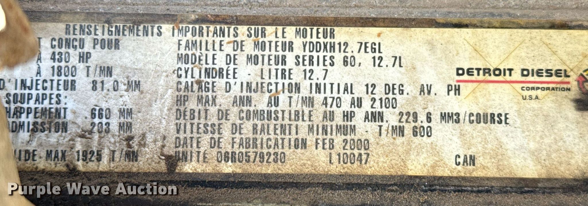 2000 International 9100i oilfield acidizing pump truck. Miles: 415,319 on odometer, VIN: 2HSCBAMR9YC088659, Unit #: 19807. Engine Detroit Diesel Series 60, Displacement: 12.7L, Cylinders: 6, Fuel type: Diesel. Transmission Automatic. Chassis Axles: Tandem, Differential lock: Inter-axle, Suspension: Air, Brakes: Air, PTO, GVWR: 52,000 lbs, Wheelbase: 165". Interior AC, Heat, Cruise control. Features (2) tanks Capacity: 750 gallons, Mission pump. Tires Front: 385/55R22.5, Rear: 11R22.5. Notes Ignition switch missing, Windshield chipped or cracked, Non-operational unit. Buyer is responsible for all aspects of loadout and removal. Texas title. Title has a lien that will be released following the close of the auction. Title distribution may be delayed up to 60 days from verification of funds. Cisco, TX 76437