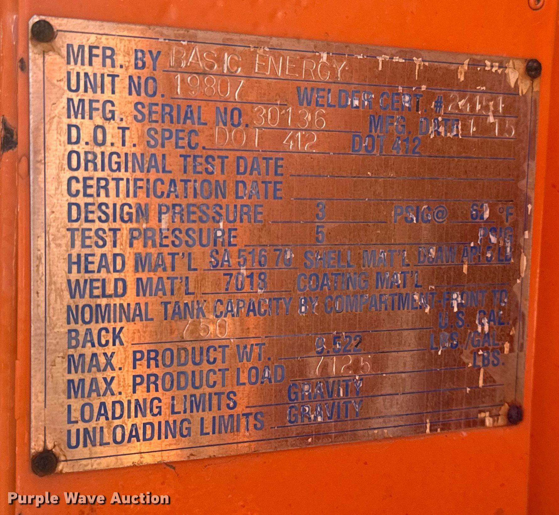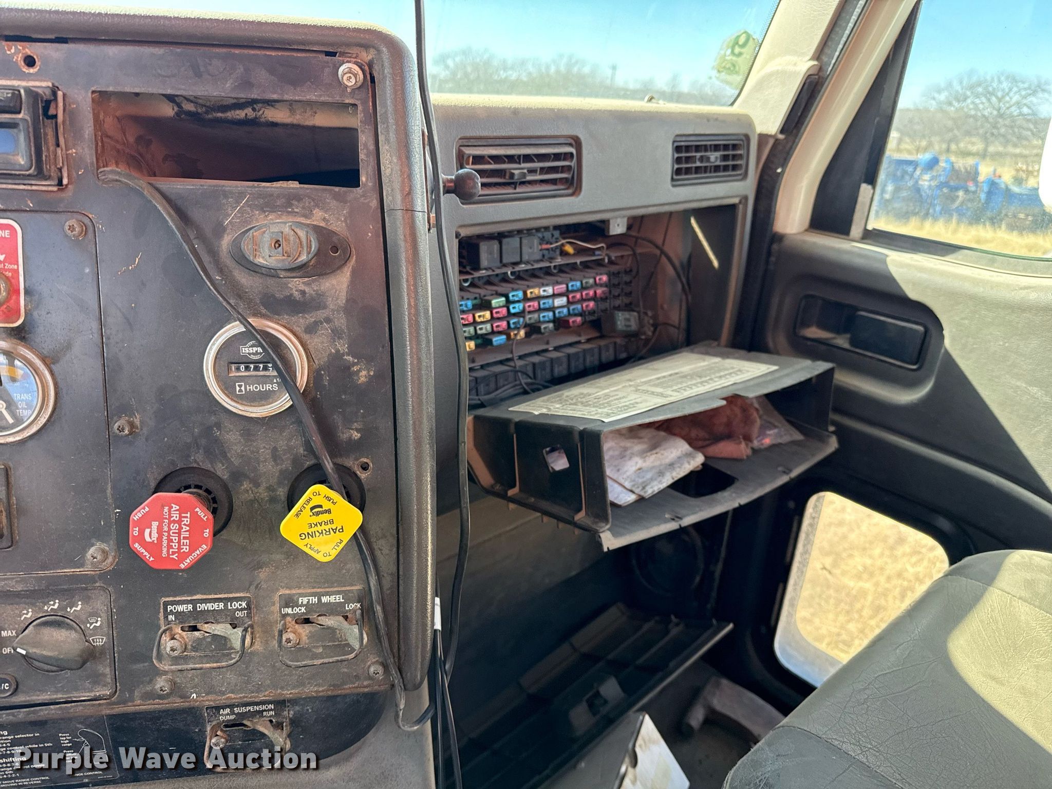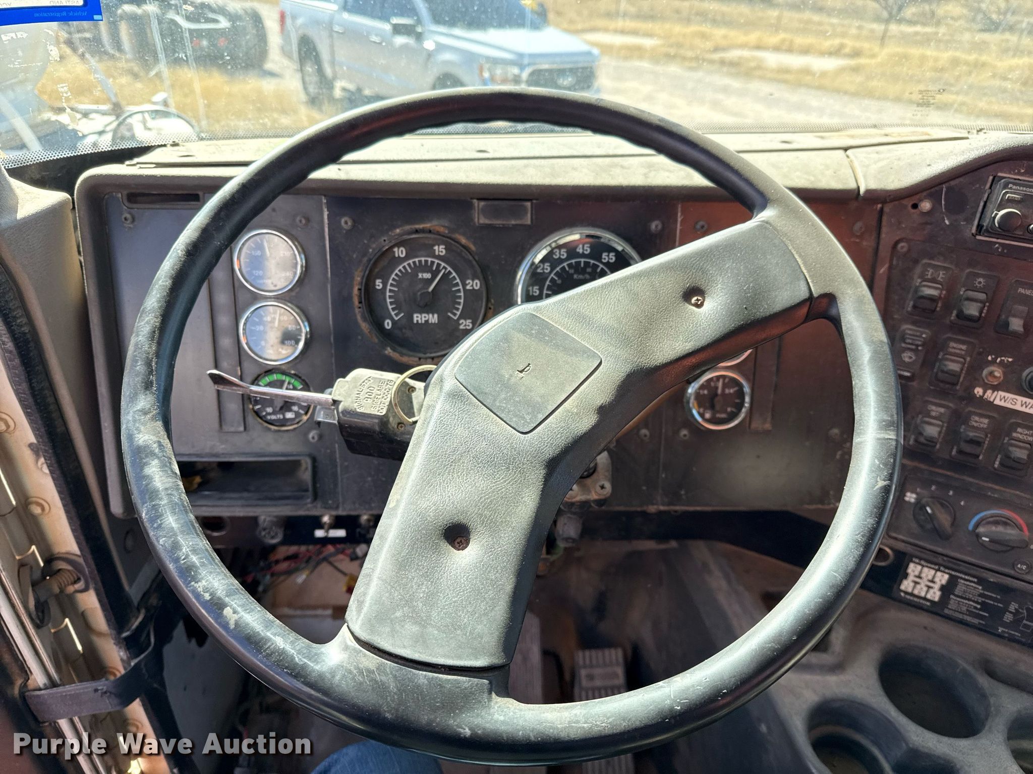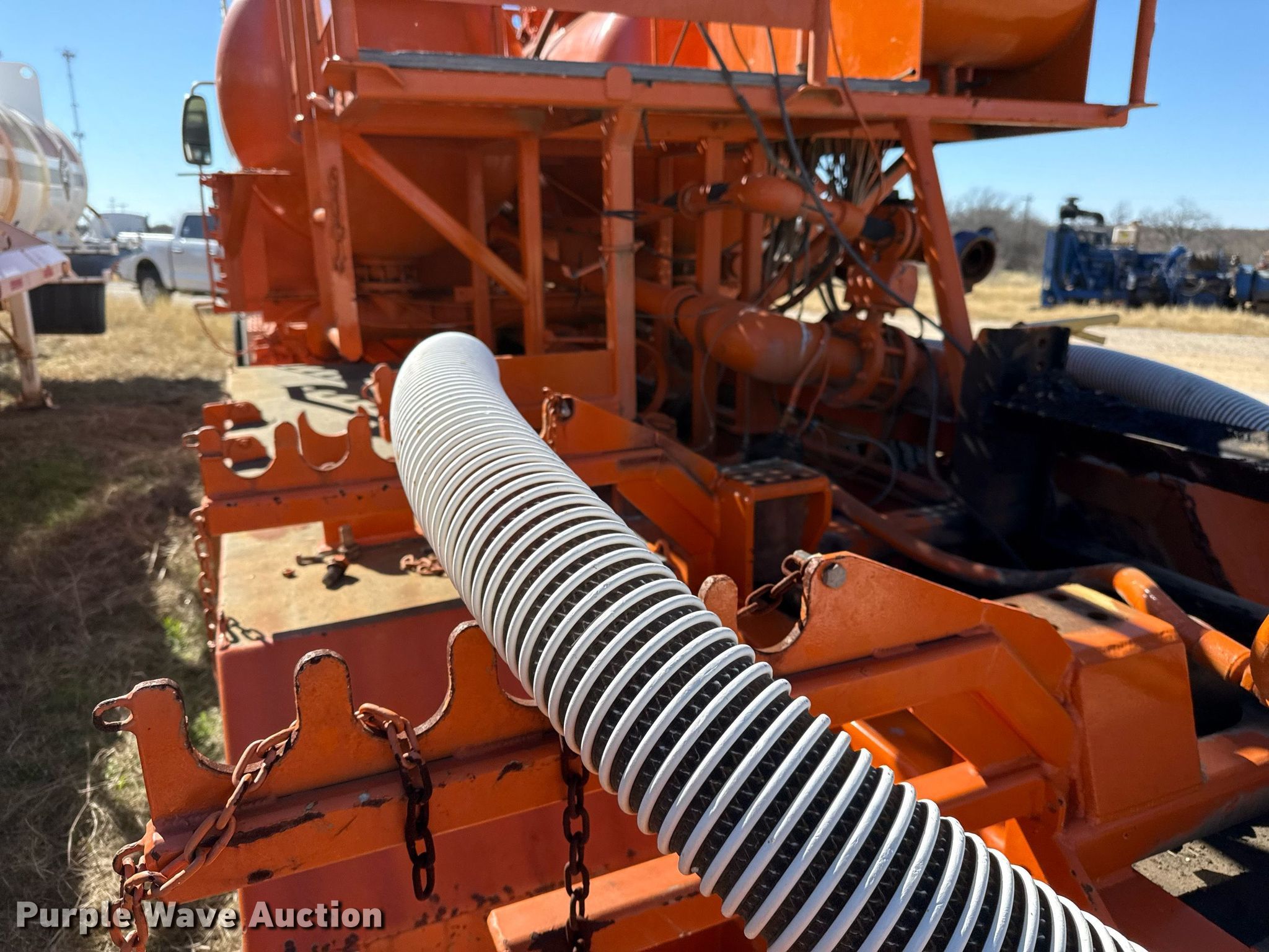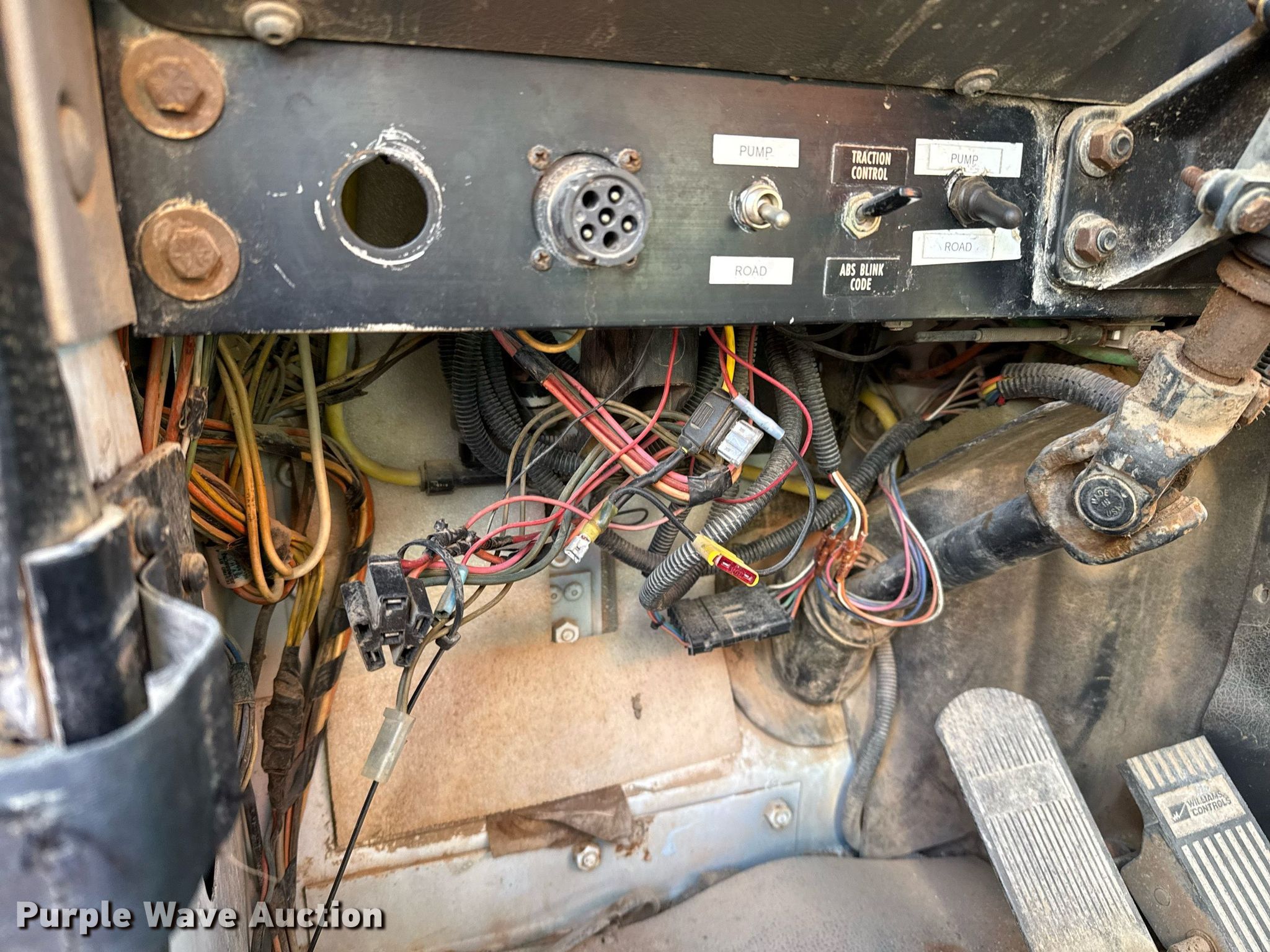 2000 International 9100i oilfield acidizing pump truck. Miles: 415,319 on odometer, VIN: 2HSCBAMR9YC088659, Unit #: 19807. Engine Detroit Diesel Series 60, Displacement: 12.7L, Cylinders: 6, Fuel type: Diesel. Transmission Automatic. Chassis Axles: Tandem, Differential lock: Inter-axle, Suspension: Air, Brakes: Air, PTO, GVWR: 52,000 lbs, Wheelbase: 165". Interior AC, Heat, Cruise control. Features (2) tanks Capacity: 750 gallons, Mission pump. Tires Front: 385/55R22.5, Rear: 11R22.5. Notes Ignition switch missing, Windshield chipped or cracked, Non-operational unit. Buyer is responsible for all aspects of loadout and removal. Texas title. Title has a lien that will be released following the close of the auction. Title distribution may be delayed up to 60 days from verification of funds. Cisco, TX 76437