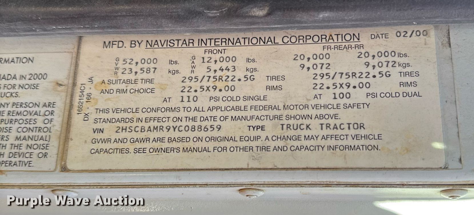 Purple Wave is selling a used Oilfield Truck in Texas. This item is a 2000 International 9100i oilfield acidizing pump truck with the following: Miles: 415,319 on odometer, VIN: 2HSCBAMR9YC088659, Unit #: 19807