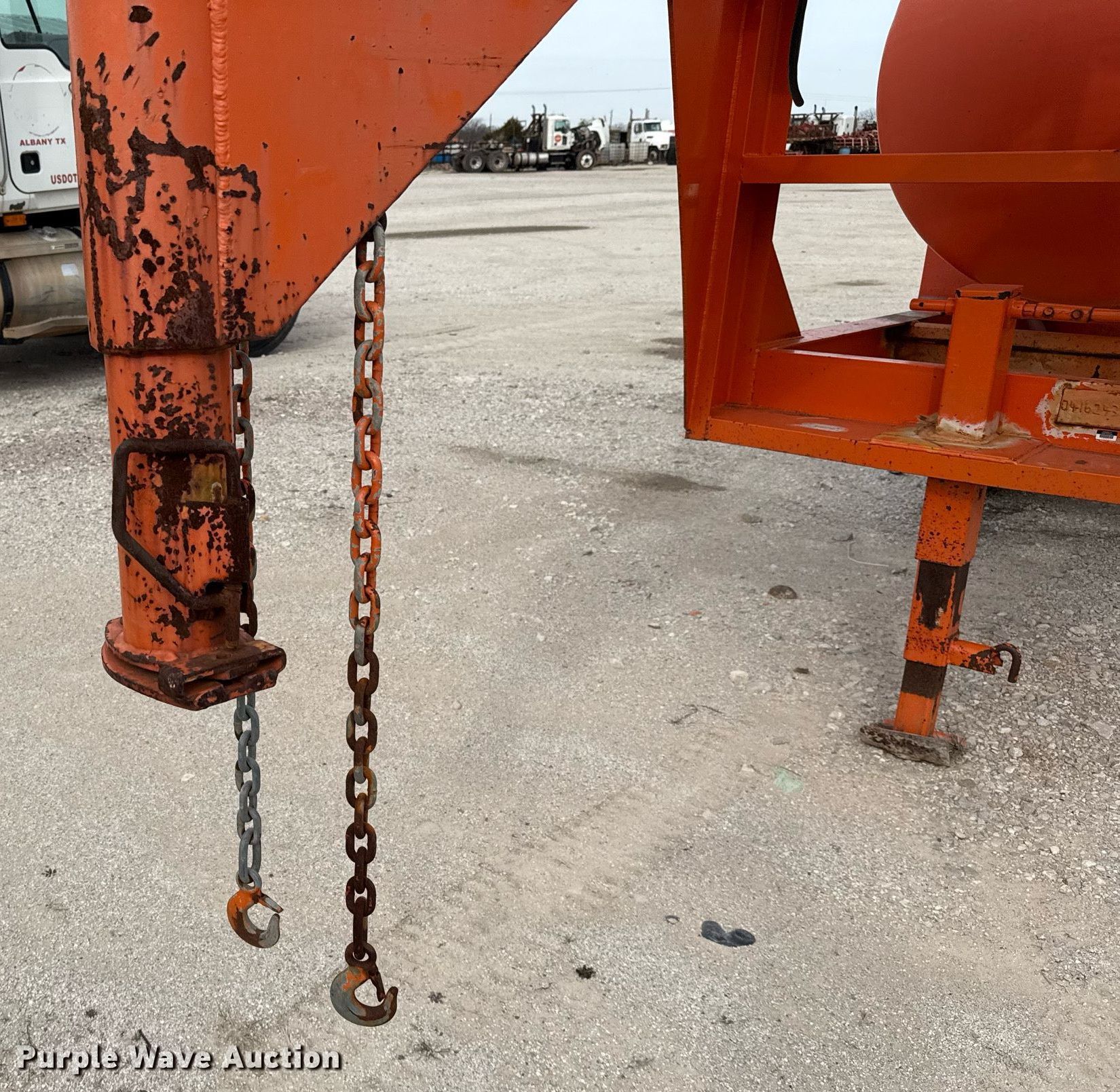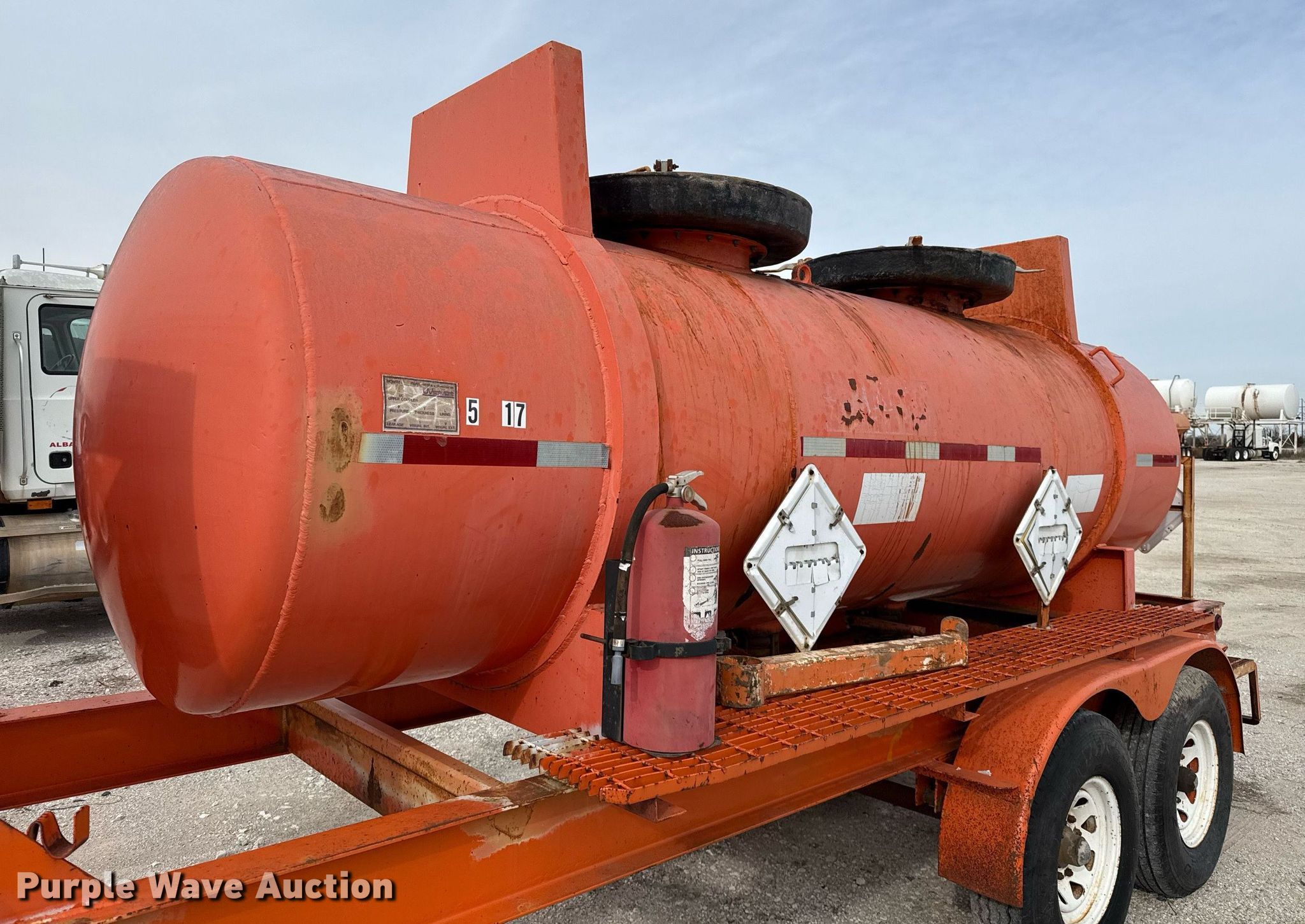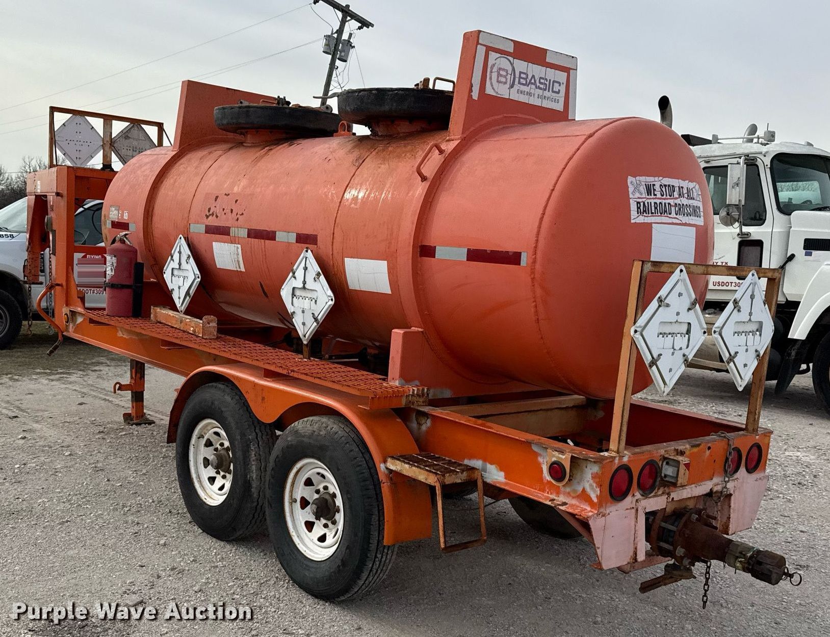 2004 Shop built acid tank trailer. VIN: 041624302B, Unit #: PT-19548. Dimensions Overall: 24' L x 70" W. Features Tank type: Steel Capacity: 1,000 gallons, Compartments: 2, Outlet valves: 1 Size: 4", No. of manways/manholes: 2 Width: 16". Chassis Hitch: Gooseneck, Landing gear: Single, Suspension: Spring, Axles: Tandem. Tires Steel wheels, Size: 7.50R16. Notes Manway/manhole issues, will not open. Buyer is responsible for all aspects of loadout and removal. Texas title. Title has a lien that will be released following the close of the auction. Title distribution may be delayed up to 45 days from verification of funds. Gainesville, TX 76240