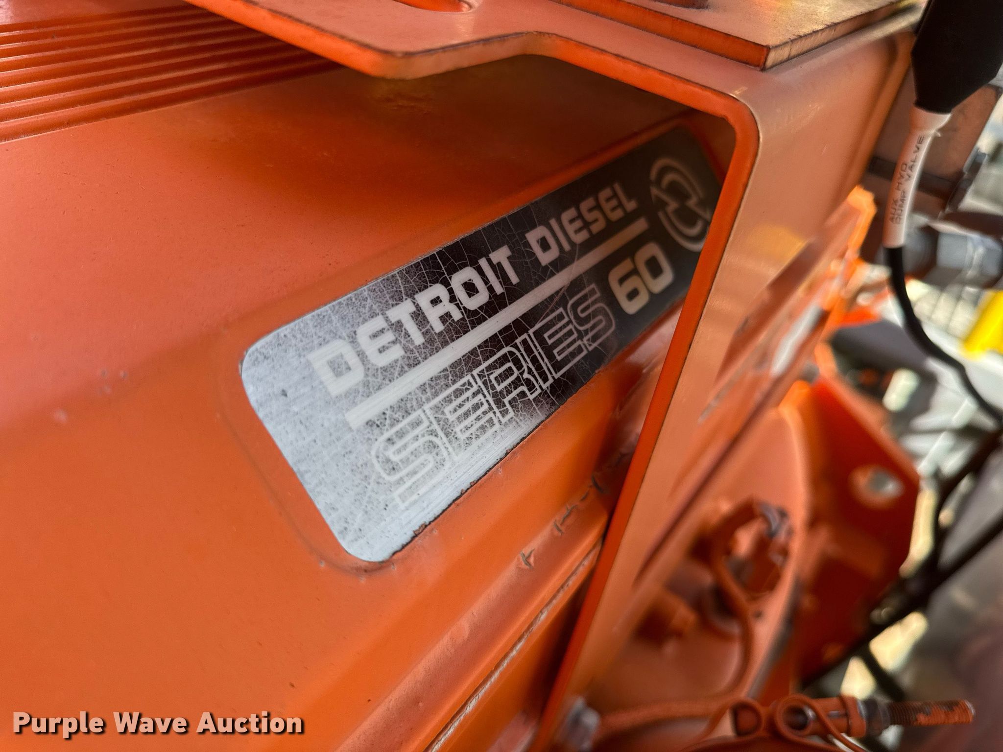 2014 Blackstone NOV Rolligon hydration unit. VIN: 1B9B6LV33FF946005, Unit #: HY-84590. Dimensions Overall: 49' L x 101' W. Features Tank type: Steel, Full length walkway, Centrifugal pump Outlet size: 8", Detroit Series 60 engine Cylinders: 6, Fuel type: Diesel. Chassis Landing gear: Dual, Suspension: Air, Brakes: Air, Axles: Tandem, GVWR: 89,000 lbs, GAWR: 25,000 lbs. Tires Steel wheels, Size: 11R22.5. Notes Fire damage, Parts missing, Unknown operating condition of engine, Non-operational unit. Buyer is responsible for all aspects of loadout and removal. Texas title. Title has a lien that will be released following the close of the auction. Title distribution may be delayed up to 45 days from verification of funds. Cisco, TX 76437