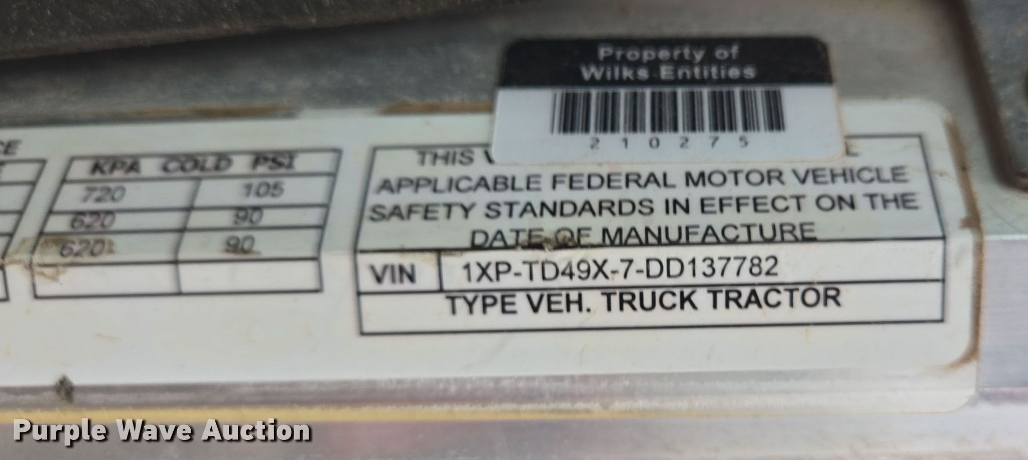 - VIN: 1XPTD49X7DD137782