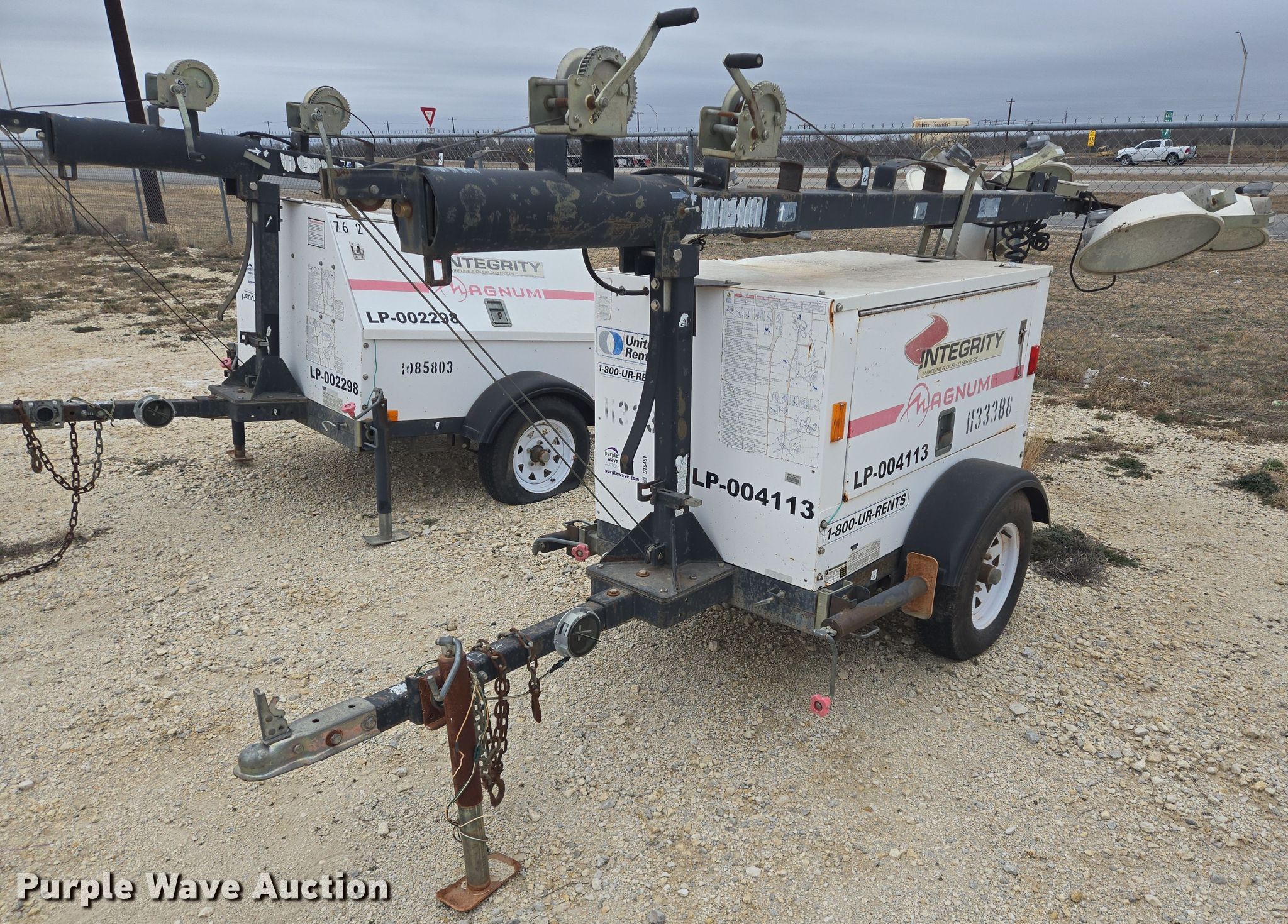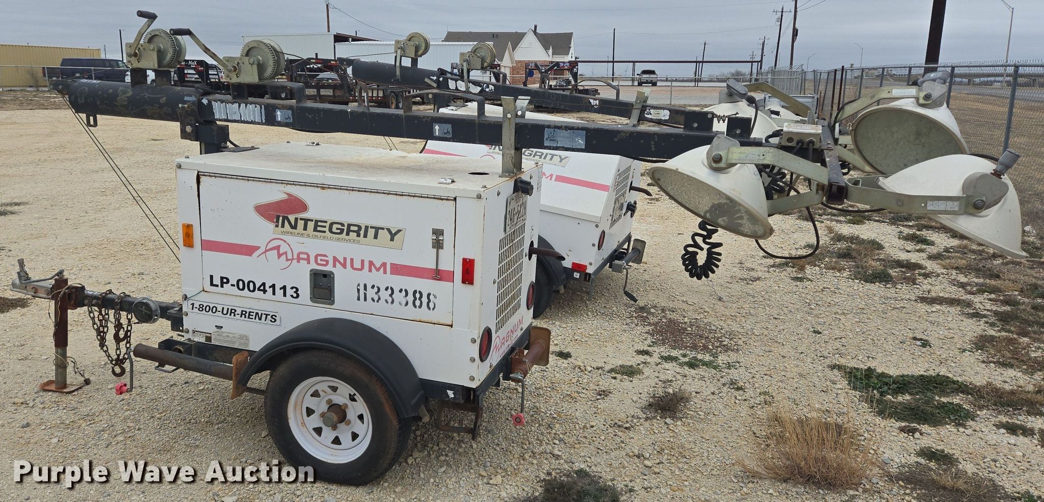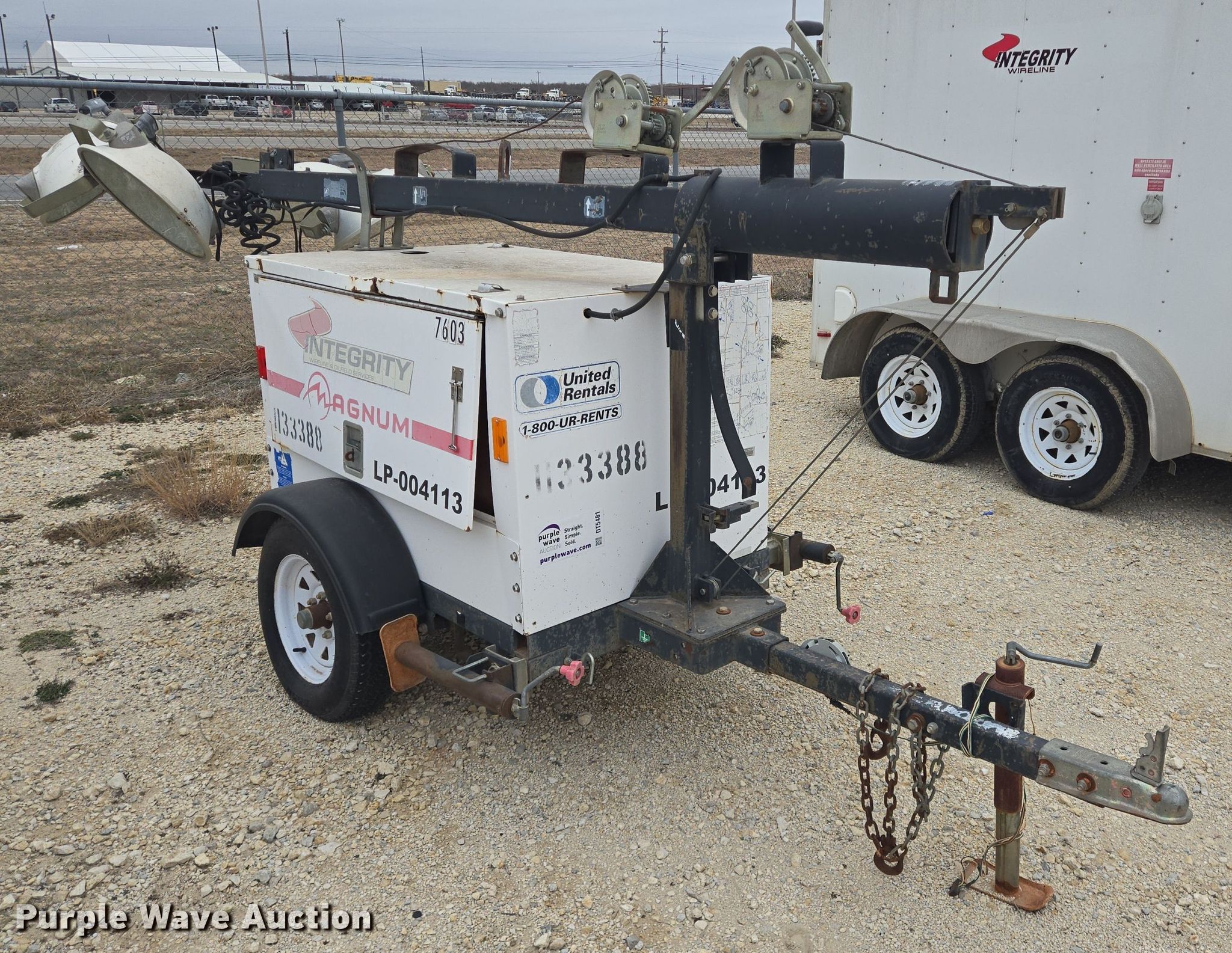 Magnum MLT3060M light plant. Hours: 3,971 on meter, Serial: 0904113. Engine Mitsubishi L3E, Displacement: 1.0L, Cylinders: 3, Fuel type: Diesel. Features Generator Pancake 201CSA5411, kVA: 6, kW: 6, Phase: Single, Fuel tank, Light plant Bulbs: 3, Tower height: 13', Hoist: Manual, Stabilizers. Trailer 15' L x 72" W, Ball hitch size: 2", Suspension: Spring, Axles: Single, Tire size: ST175/80D13, GVWR: 1,870 lbs, GAWR: 2,200 lbs. Notes Dead battery, Bulb missing, Possible engine issues, turns over but will not start , Unknown operating condition. Buyer is responsible for all aspects of loadout and removal. This is worksite support equipment and will not come with a title. Transfer of ownership documentation will be a bill of sale. Abilene, TX 79601