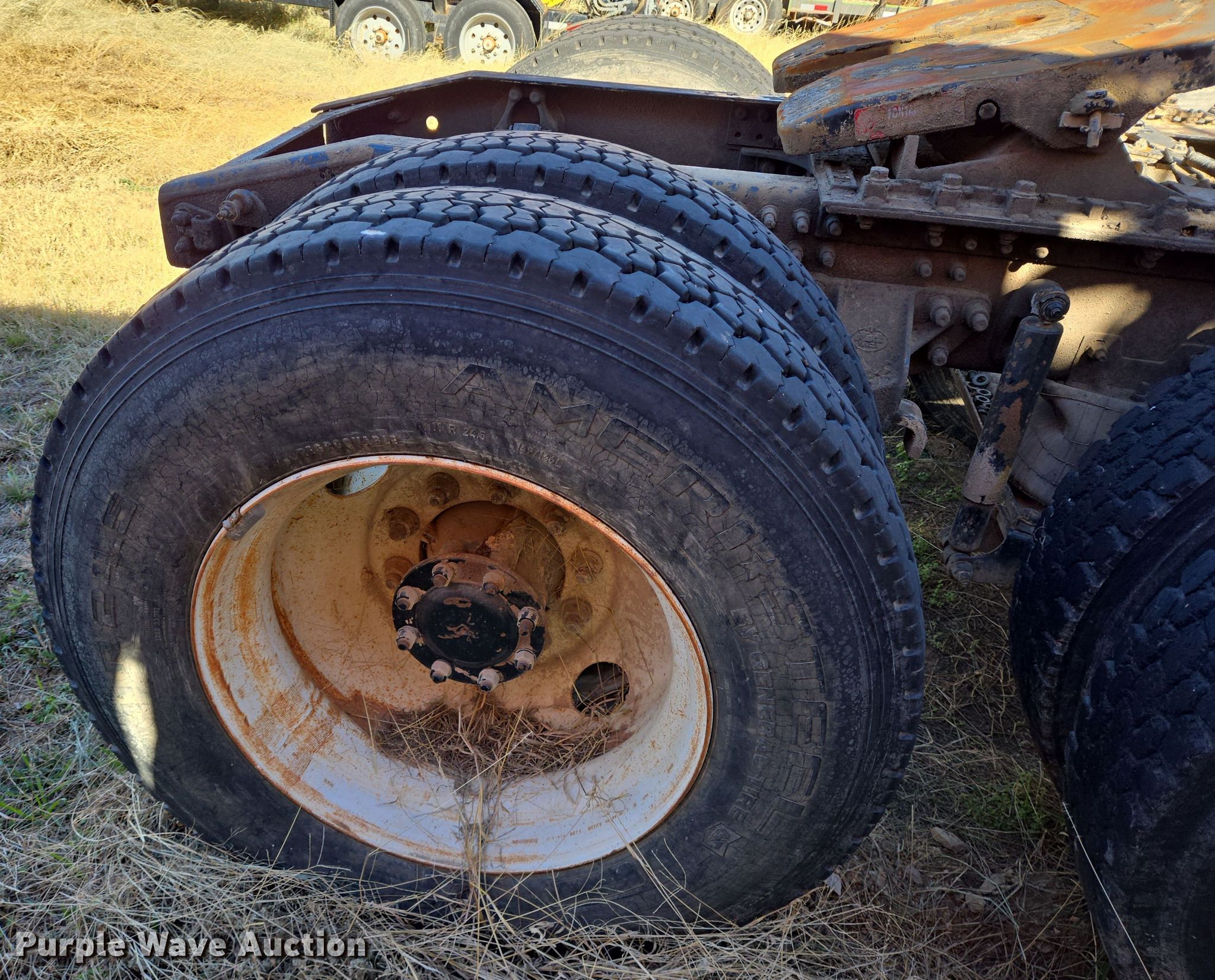 2009 Mack CHU613 semi truck. Miles: Unknown, VIN: 1M1AN09Y19N004380, Unit #: 30266. Engine Mack MP8, Serial: 917301, Displacement: 12.7 L, Cylinders: 6, Fuel type: Diesel, HP: 338, Engine brake. Transmission Eaton Fuller, Manual, Speed: 13. Chassis Axles: Tandem, Differential lock: Inter-axle, Suspension: Air Dump valves, Brakes: Air, PTO, Wet kit, GVWR: 50,000 lbs FAWR: 12,000 lbs, IAWR: 19,000 lbs, RAWR: 19,000 lbs, Wheelbase: 220". Interior AC, Heat, Heated mirrors, Cruise control, Air ride cab. Features Deck plate: Steel, Fifth wheel type: Air operated, Sliding, Fuel tank: Dual. Tires Size: 11R24.5. Notes Axle housing disassembled Parts may be missing, Non-operational unit Unit must be towed or hauled. Buyer is responsible for all aspects of loadout and removal. Texas title. Mileage has not been verified. Odometer discrepancy will be marked on the title. Title has a lien that will be released following the close of the auction. Title distribution may be delayed up to 60 days from verification of funds. Cisco, TX 76437