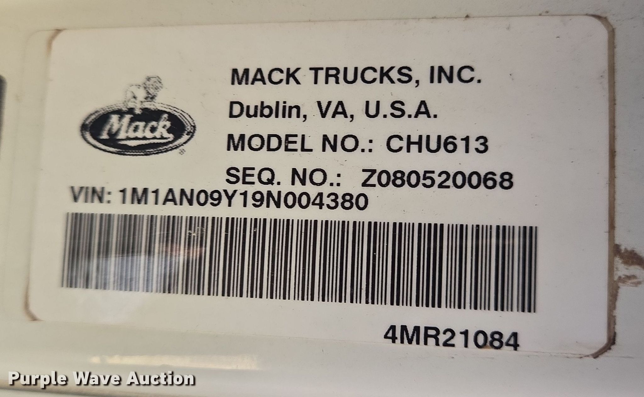 Purple Wave is selling a used Truck Tractor in Texas. This item is a 2009 Mack CHU613 semi truck with the following: Miles: Unknown, VIN: 1M1AN09Y19N004380, Unit #: 30266