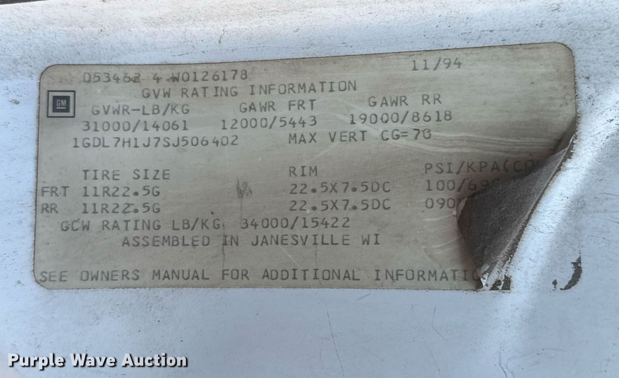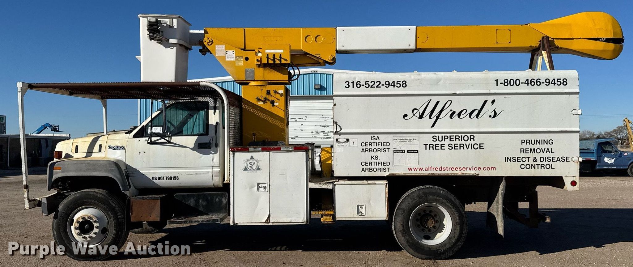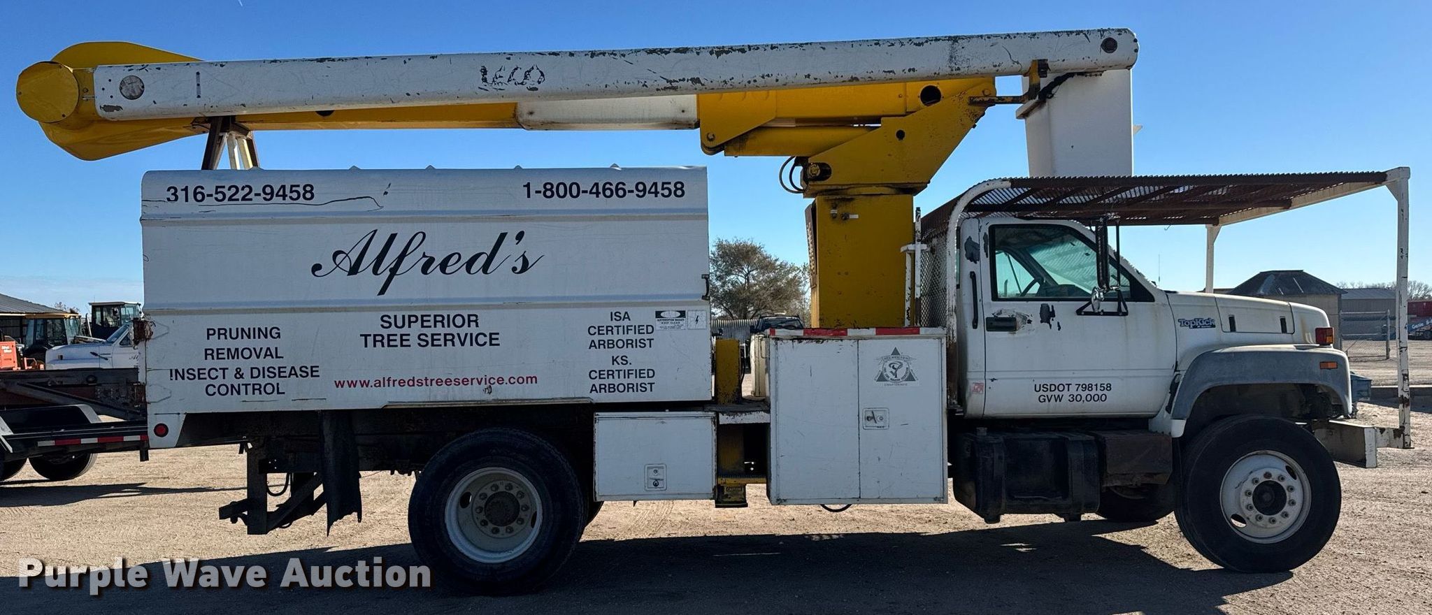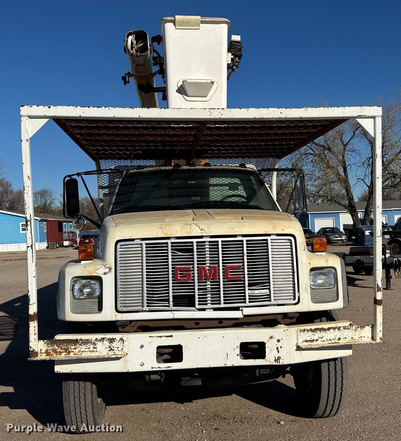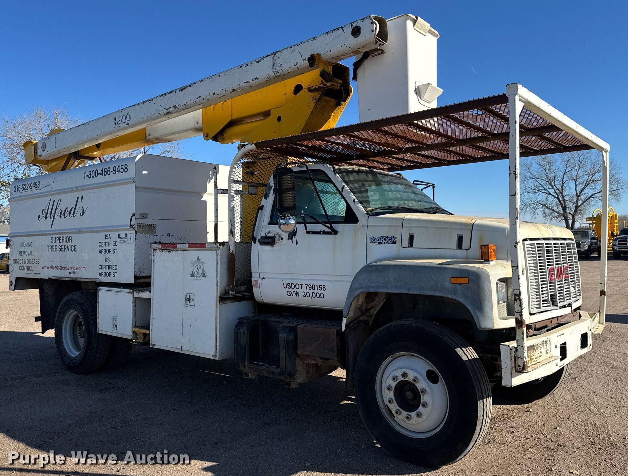 Purple Wave is selling a used Bucket Truck in Kansas. This item is a 1995 GMC TopKick C6500 forestry bucket truck with the following: Miles: 94,569 on odometer, Hours: 212 on meter, Actual hours unknown, Miles: Unknown, VIN: 1GDL7H1J7SJ506402