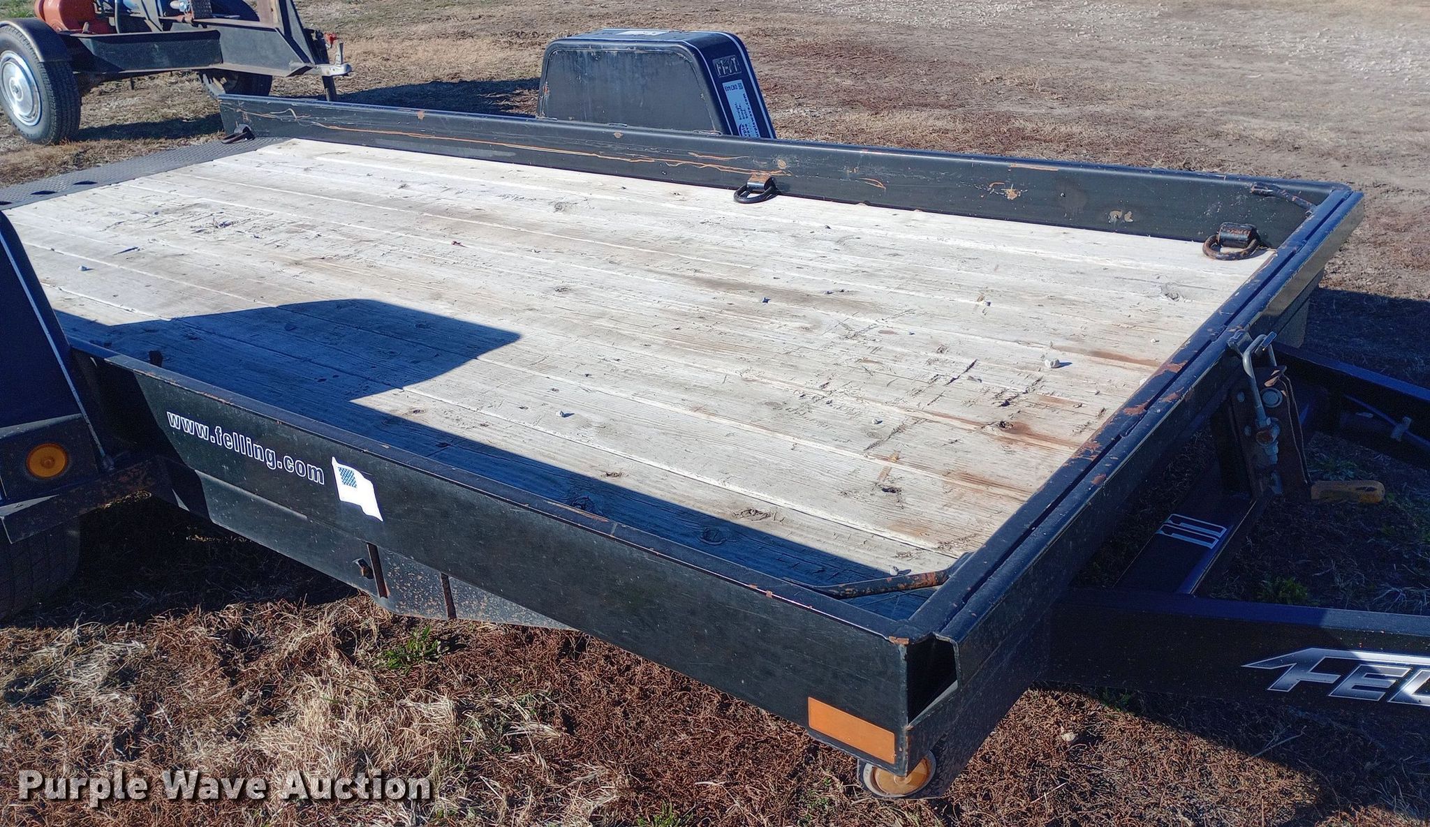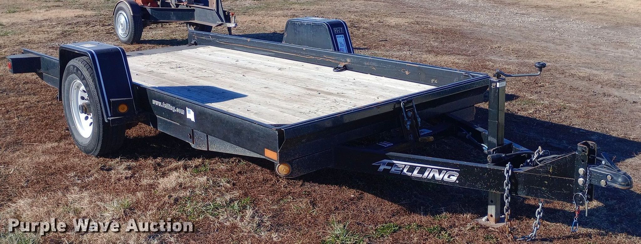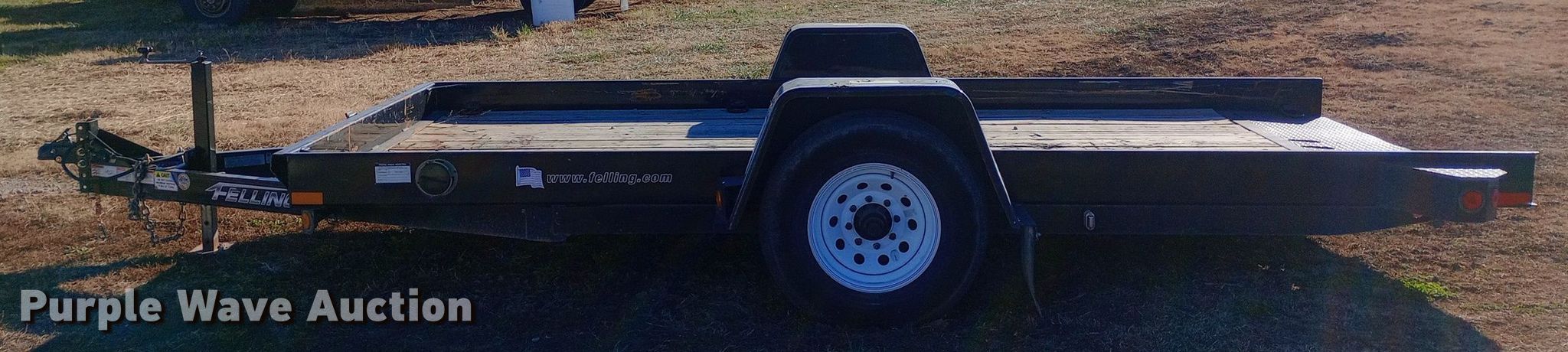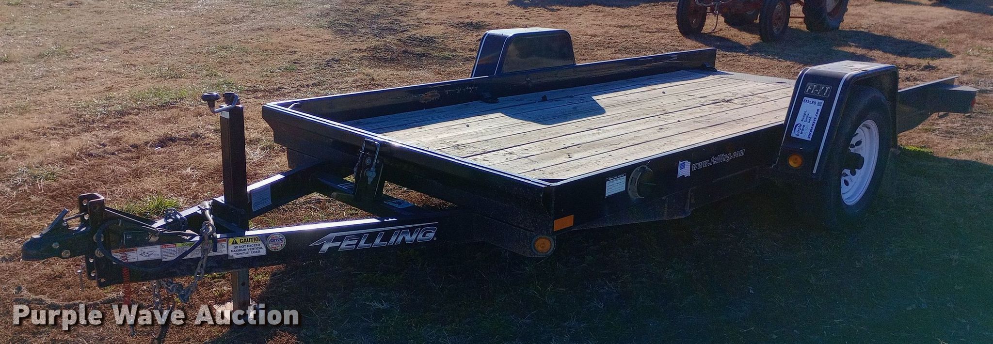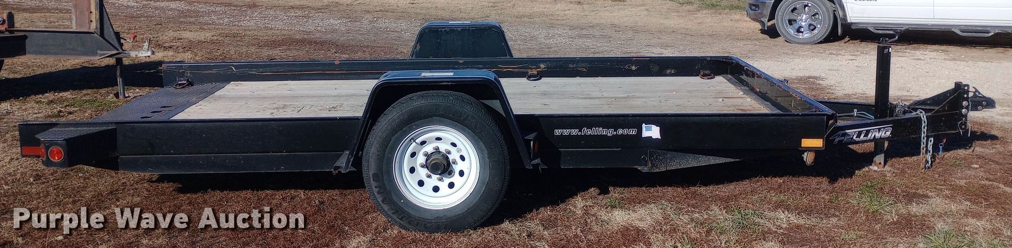 2017 Felling utility trailer. VIN: 5FTBE1916H1003833. Dimensions Overall: 19' L x 96" W, Deck: 14' 3" L x 74" W. Features Deck type: Wood. Chassis Ball hitch: 2", Landing gear: Single, Suspension: Spring, Brakes: Electric, GVWR: 8,200 lbs. Tires Steel wheels, Size: 235/80R16. Kansas title. Title distribution may be delayed up to 30 days from verification of funds. Alfred's Superior Tree Service / Charles Edwardson Estate - Open inspection February 24, 2025. Rose Hill, KS 67133