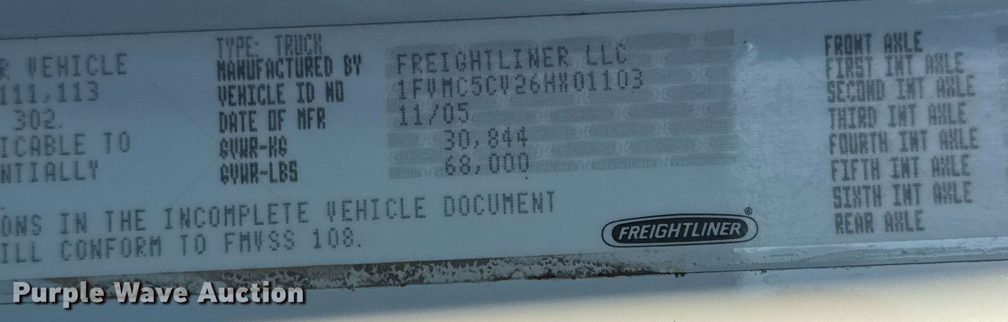 Purple Wave is selling a used Construction Dump Truck in Arkansas. This item is a 2006 Freightliner Business Class M2 dump truck with the following: Miles: 528,392 on odometer, Engine hours: 23,847 on meter, Miles or hours may vary, unit still in use, VIN: 1FVMC5CV26HX01103