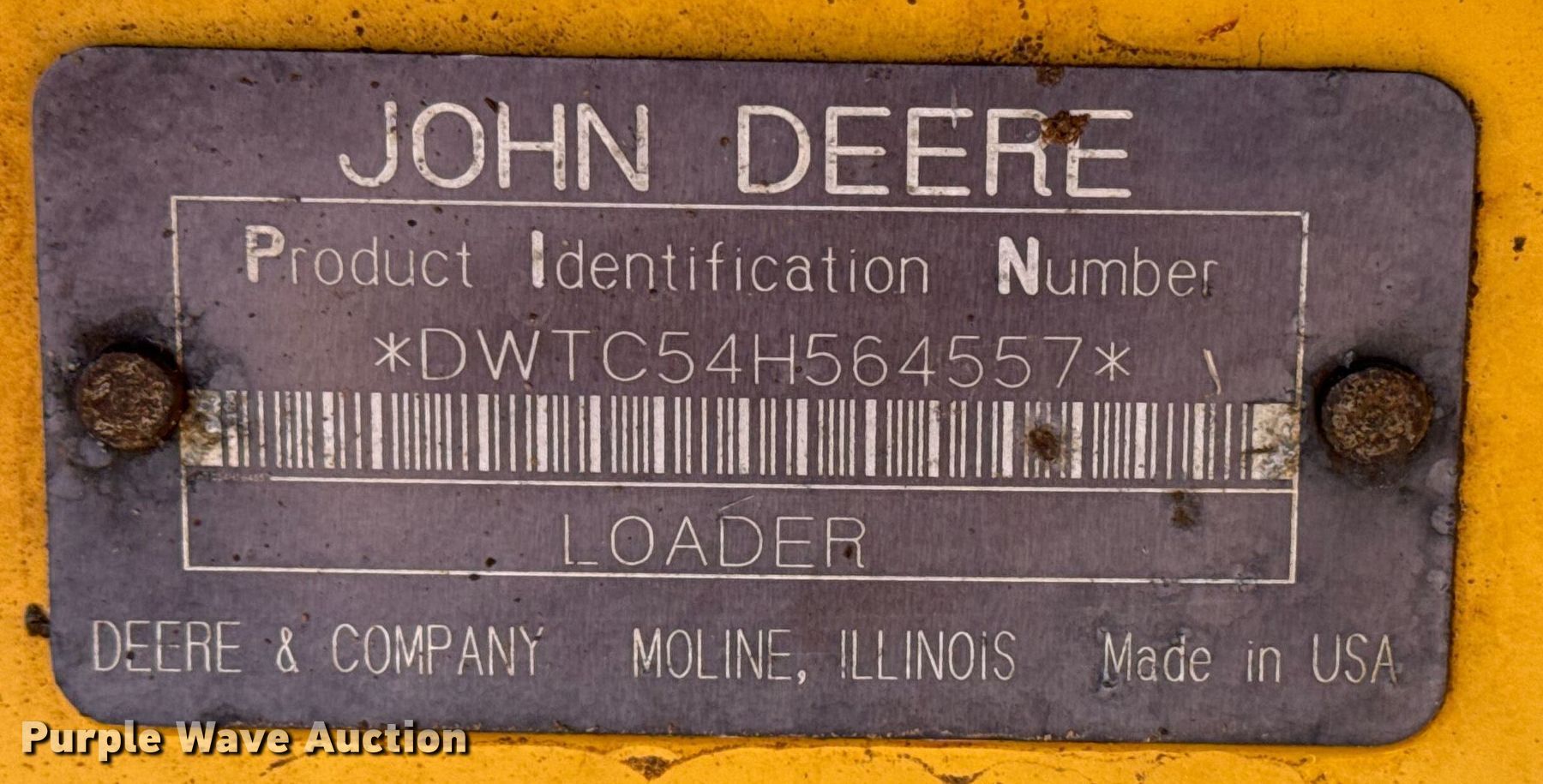 Purple Wave is selling a used Wheel Loader in Oklahoma. This item is a 1998 John Deere TC54H wheel loader with the following: Hours: 23,021 on meter, Serial: DWTC54H564557