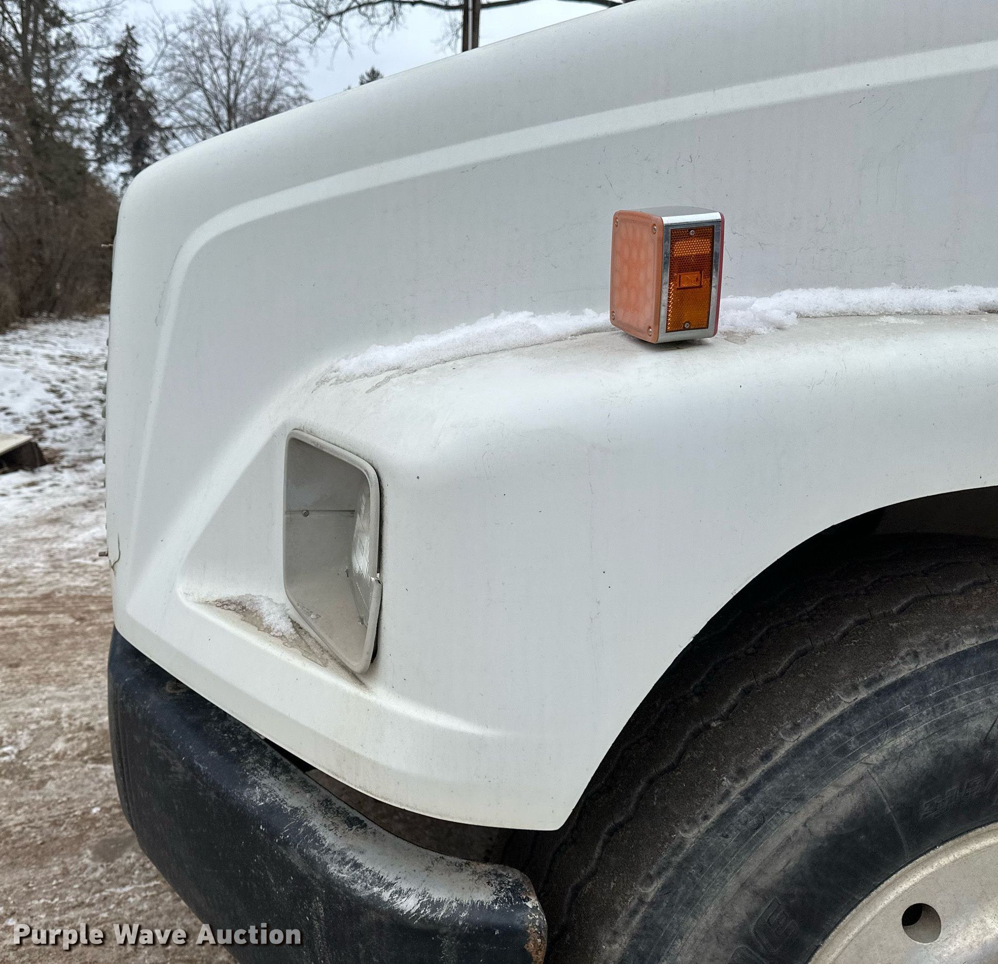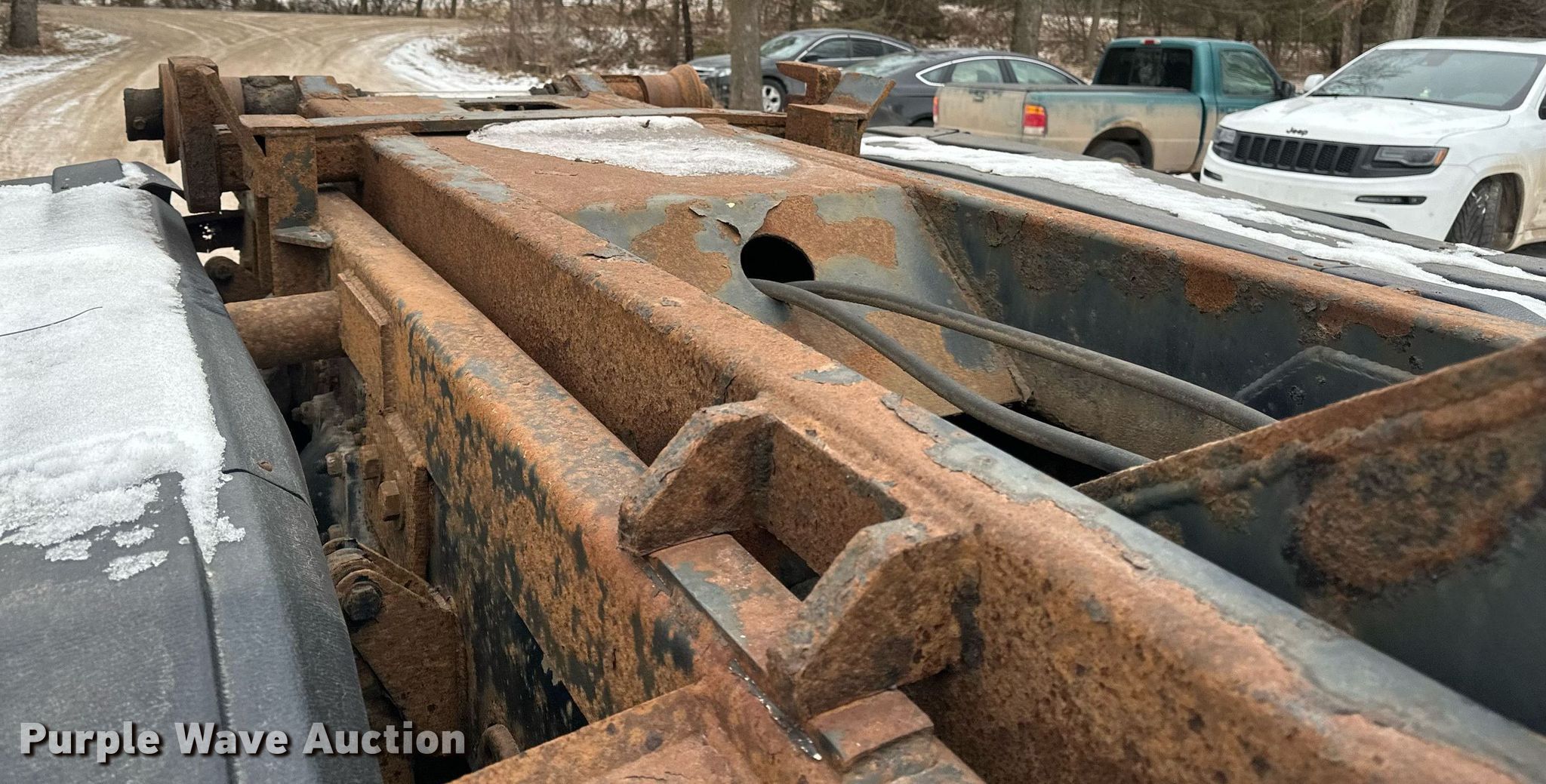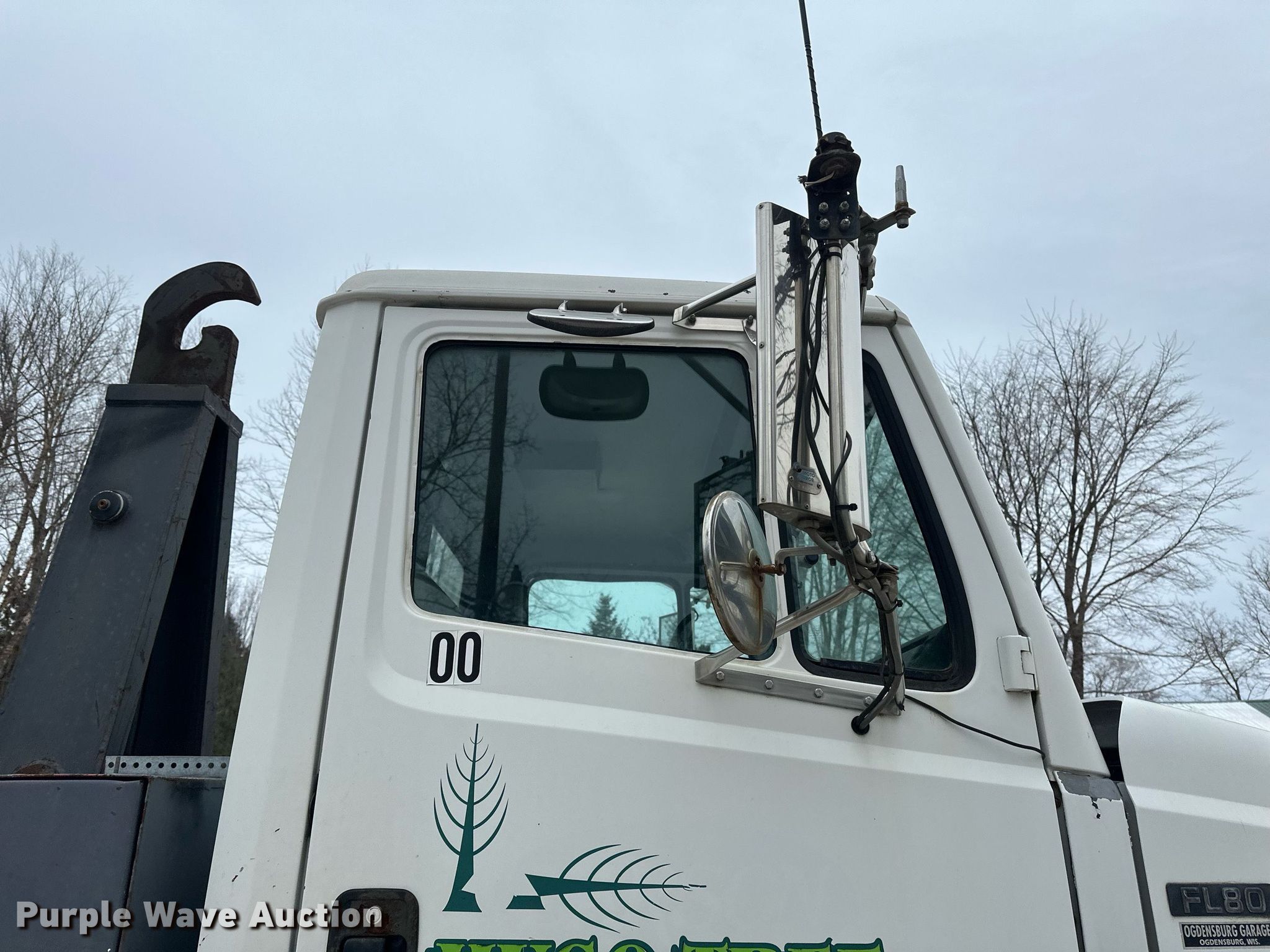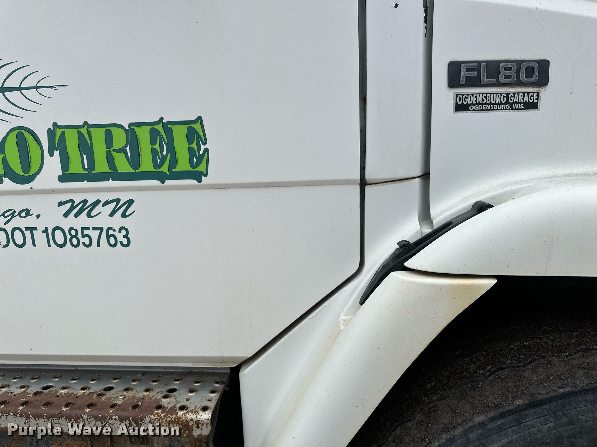 2000 Freightliner FL80 hook lift truck. Miles: 371,797 on odometer, VIN: 1FVXJJBB4YHF66585. Engine Caterpillar 3126, Displacement: 7.2L, Cylinders: 6, Fuel type: Diesel, HP: 275, kW: 205. Transmission Eaton Fuller, Manual, Speed: 9. Chassis Axles: Tandem, Suspension: Air, Brakes: Air, PTO, GVWR: 53,200 lbs. Interior AC, Heat, Heated mirrors, Cruise control, Brake controller. Features Hook lift bed Stellar 199x24x52, Serial: AX00H135S, 19' 3" L, Ram: Single. Tires Front: 315/80R22.5, Rear: 11R22.5. Notes Air pump issues, weak, Contents in toolbox not included. Minnesota title. Title distribution may be delayed up to 14 days from verification of funds. Hugo Tree. Hugo, MN 55038