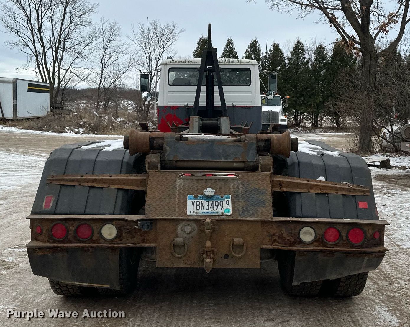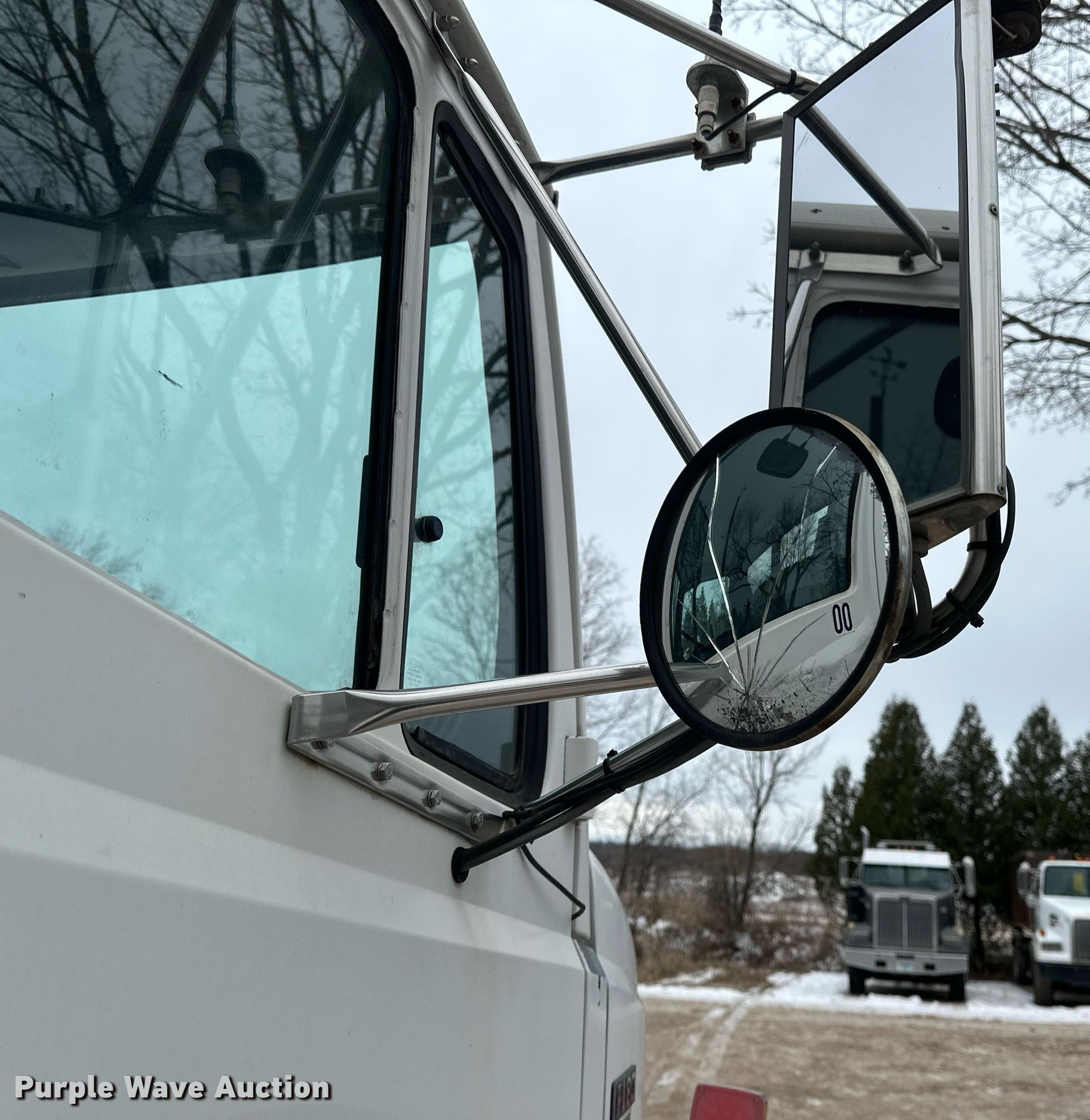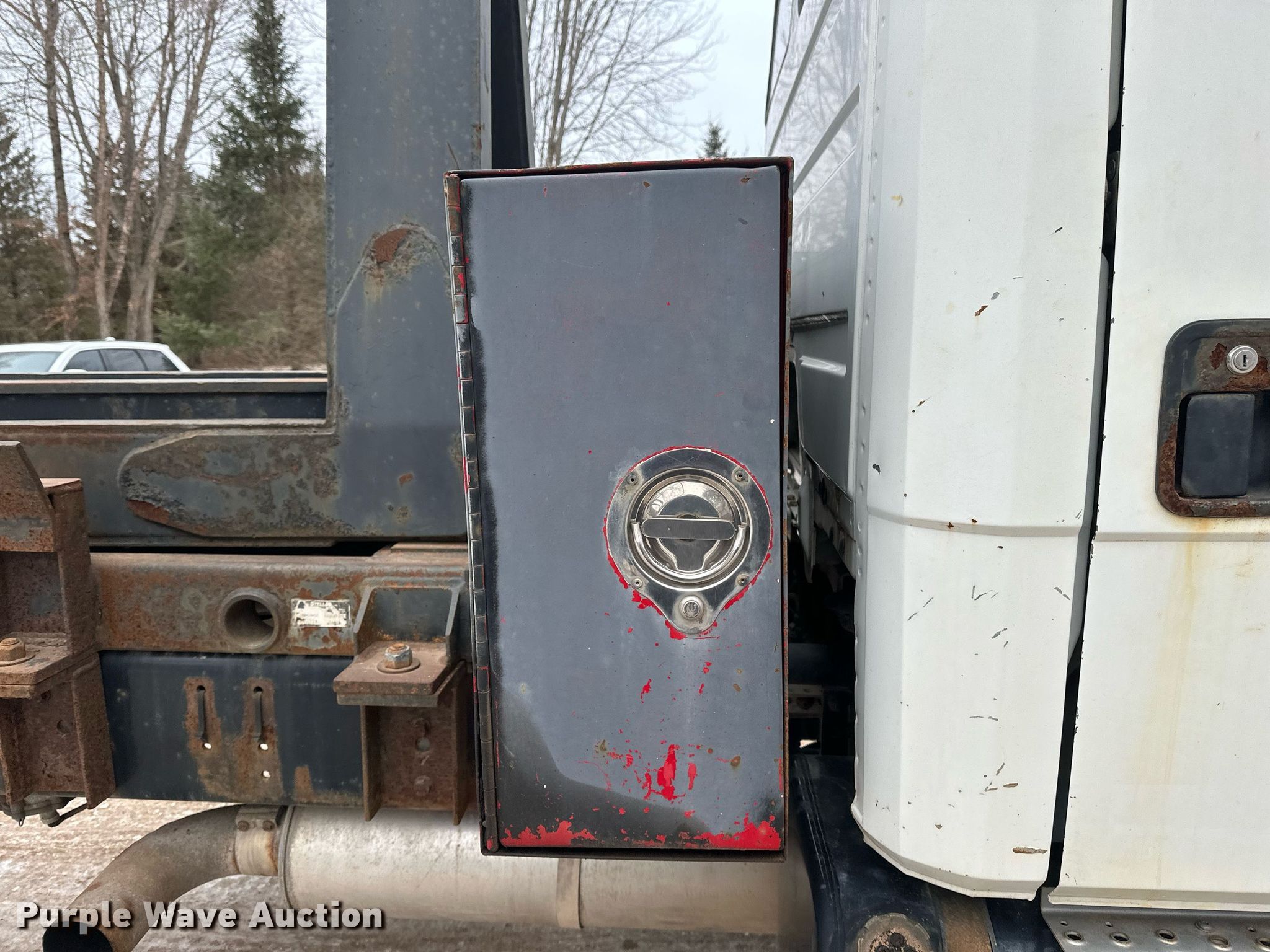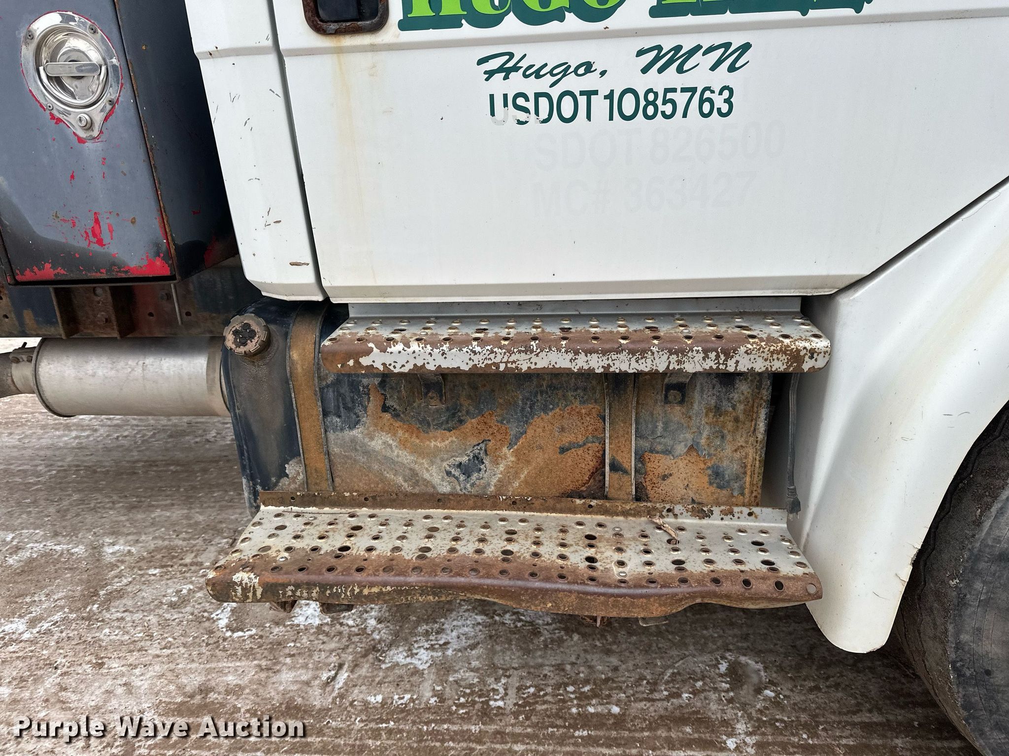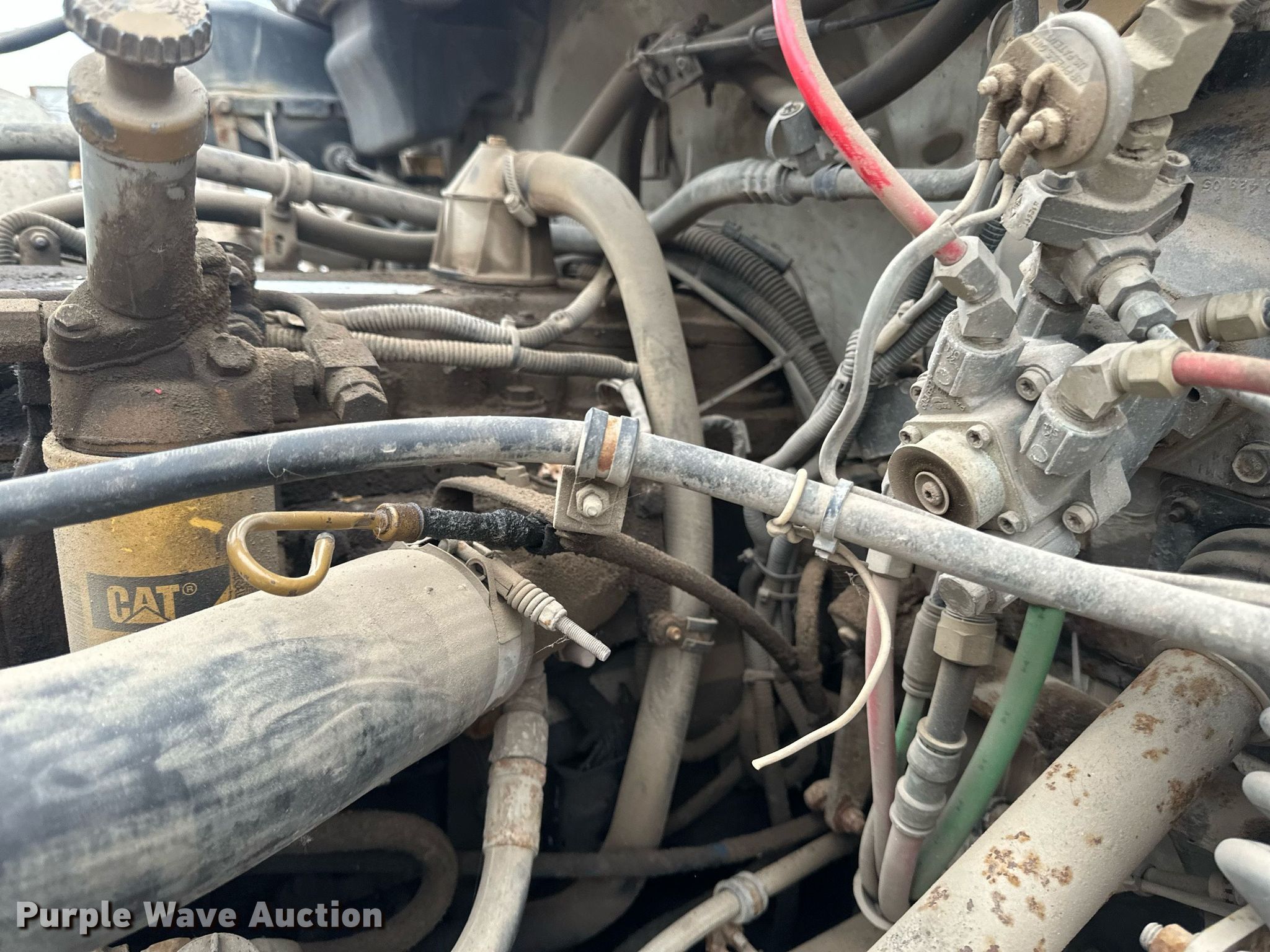 2000 Freightliner FL80 hook lift truck. Miles: 371,797 on odometer, VIN: 1FVXJJBB4YHF66585. Engine Caterpillar 3126, Displacement: 7.2L, Cylinders: 6, Fuel type: Diesel, HP: 275, kW: 205. Transmission Eaton Fuller, Manual, Speed: 9. Chassis Axles: Tandem, Suspension: Air, Brakes: Air, PTO, GVWR: 53,200 lbs. Interior AC, Heat, Heated mirrors, Cruise control, Brake controller. Features Hook lift bed Stellar 199x24x52, Serial: AX00H135S, 19' 3" L, Ram: Single. Tires Front: 315/80R22.5, Rear: 11R22.5. Notes Air pump issues, weak, Contents in toolbox not included. Minnesota title. Title distribution may be delayed up to 14 days from verification of funds. Hugo Tree. Hugo, MN 55038