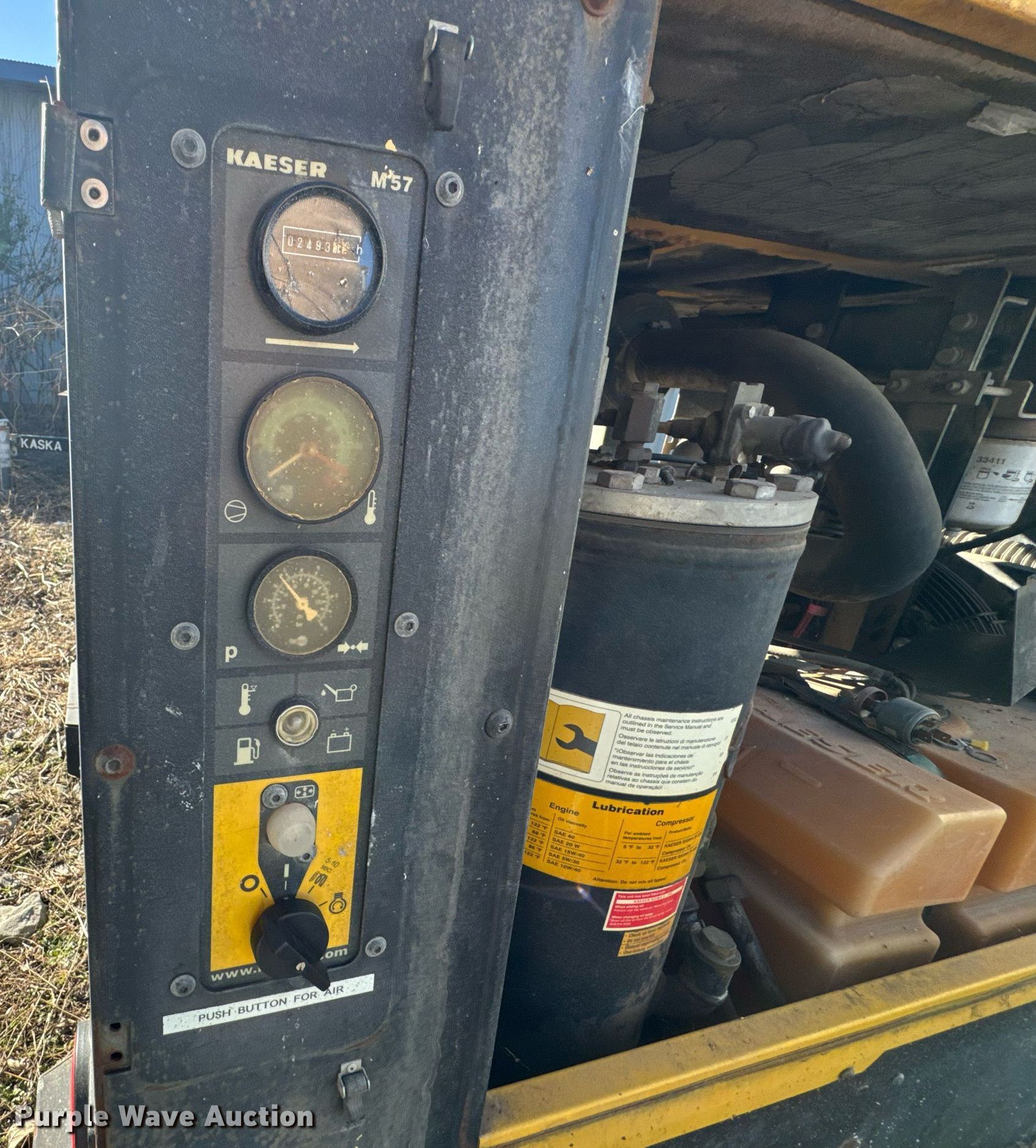 Kaeser M57 air compressor. Hours: 2,493 on meter, Serial #: 235404. Engine Kubota V2403-M-ES, Displacement: 2.4L, Cylinders: 4, Fuel type: Diesel, kW: 35.4. Features Air compressor CFM: 210, PSI: 131. Pryor, OK 74361