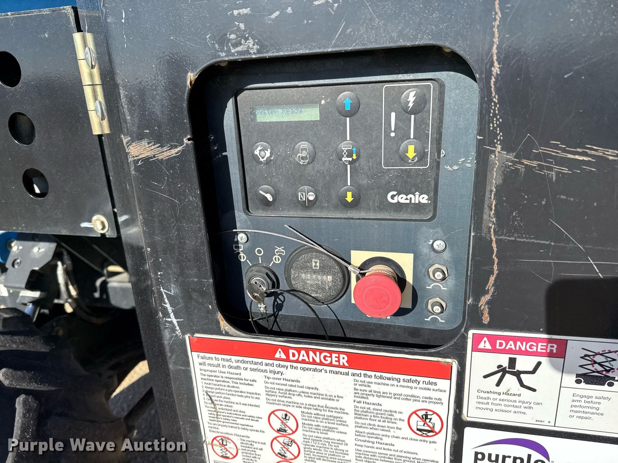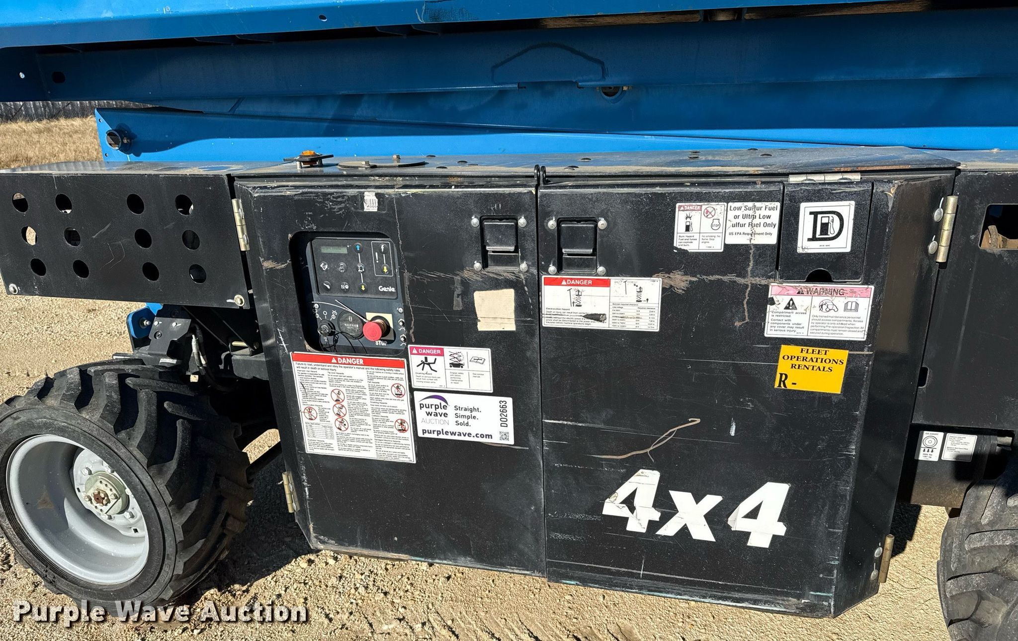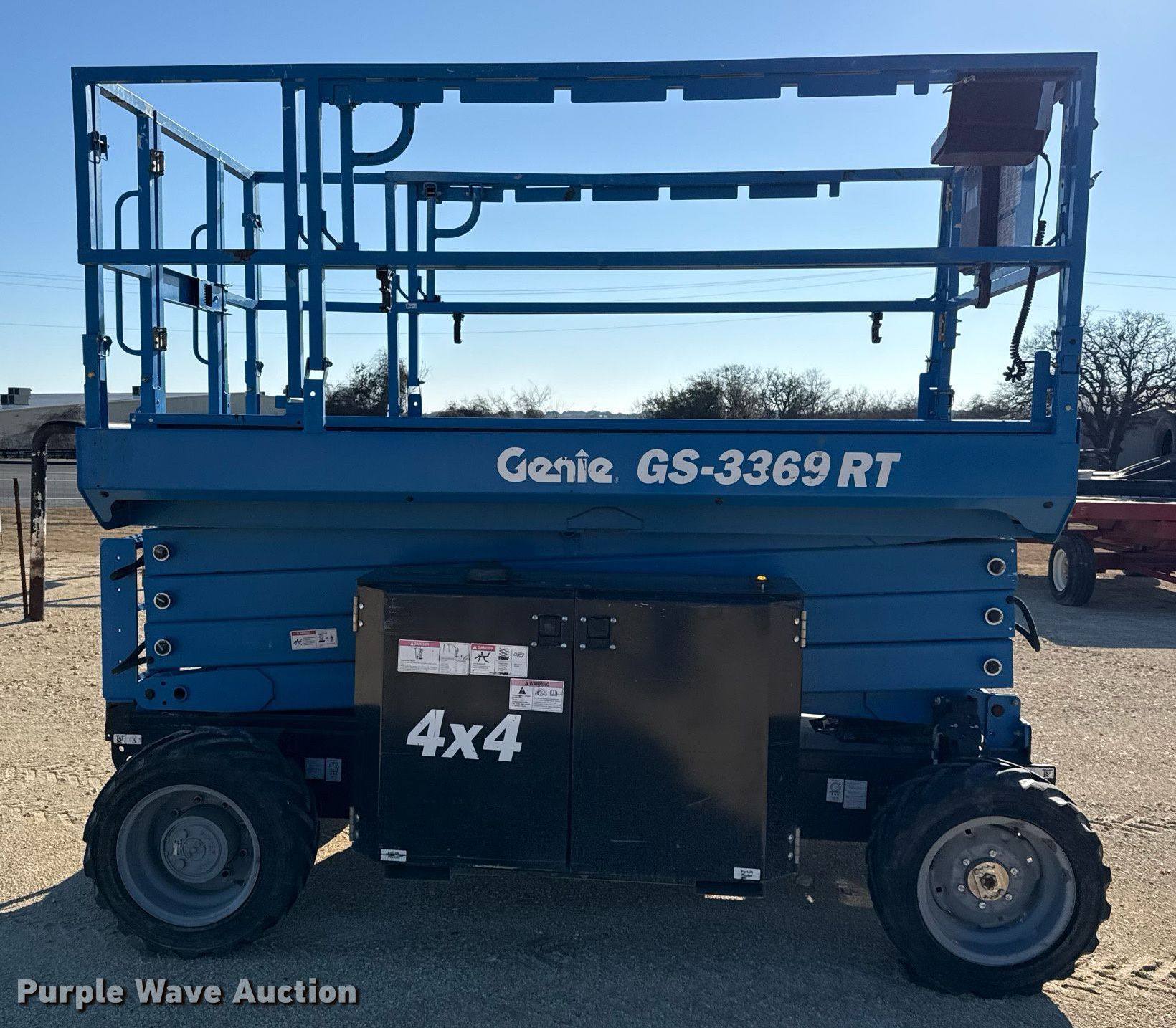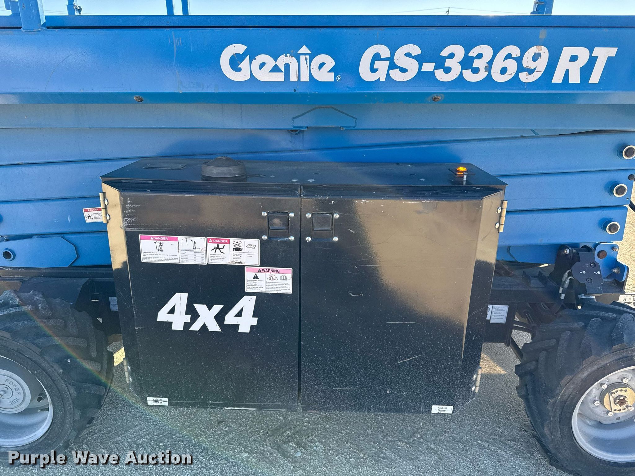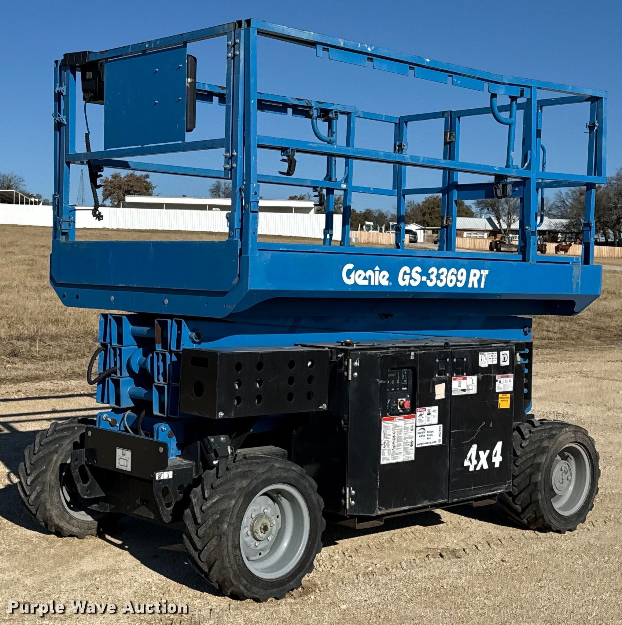 Purple Wave is selling a used Scissor or Vertical Lift in Texas. This item is a 2018 Genie GS3369 RT scissor lift with the following: Hours: 710 on meter, Serial: GS69F-14795