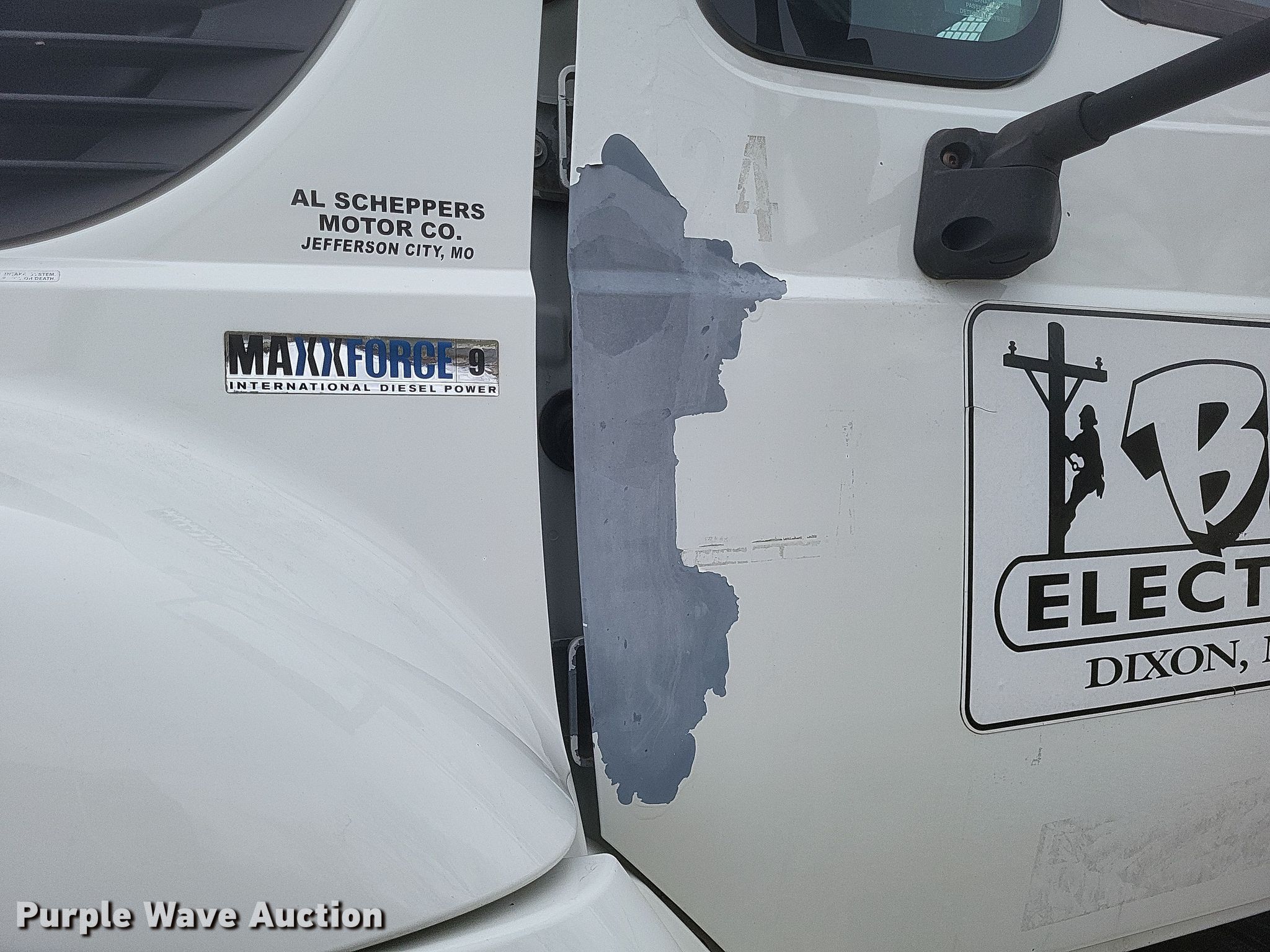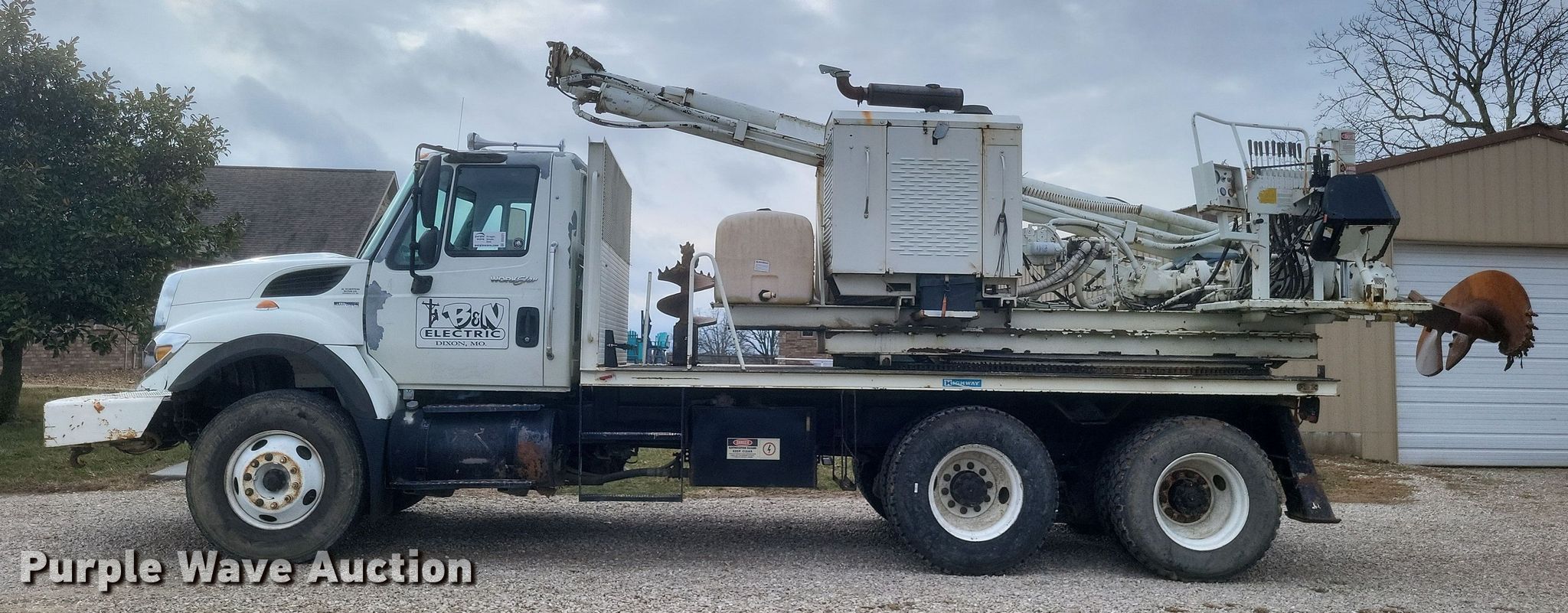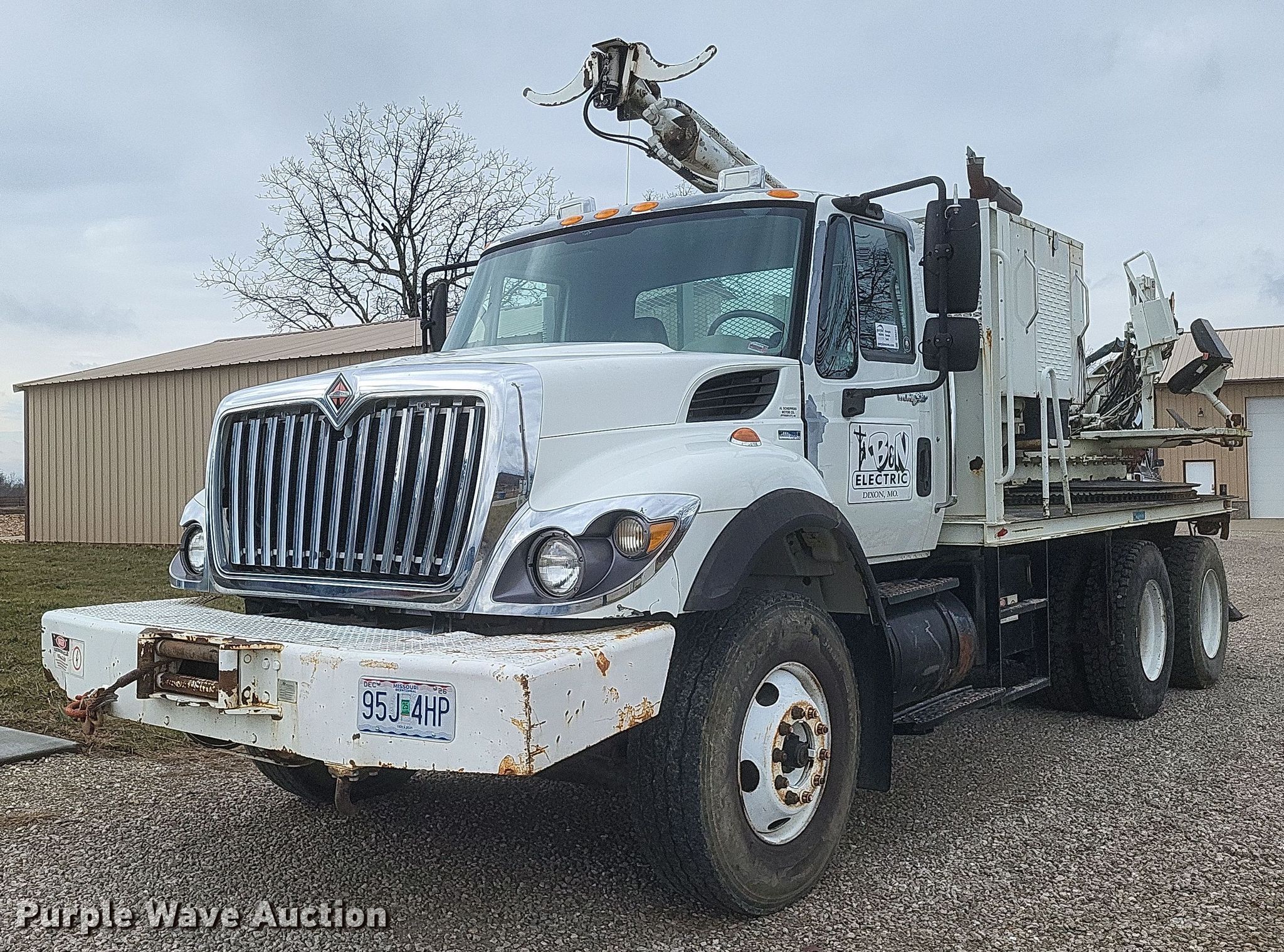 2010 International 7400 SBA pressure digger truck. Miles: 116,581 on odometer, Hours: 12,723 on meter, VIN: 1HTWGAZR6AJ224563. Engine International MaxxForce 9, Displacement: 9.3L, Cylinders: 6, Fuel type: Diesel. Transmission Allison, Automatic. Chassis Axles: Single, Suspension: Spring, Brakes: Air, PTO, GVWR: 54,000 lbs. Interior AC, Heat, Cruise control, Auxiliary controls, Brake controller. Features Bed 15' 6" L x 8' W, Chip bed Engine Cylinders: 4, Fuel: Diesel, Boom Boom controls Ground, Pressure digger, Pole guide, Auger Diameter: 38", Length: 18".. Tires Front: 315/80R22.5, Rear: 11R22.5. Missouri title. Title distribution may be delayed up to 14 days from verification of funds. B&N Tree Service and Debris Removal. Dixon, MO 65459