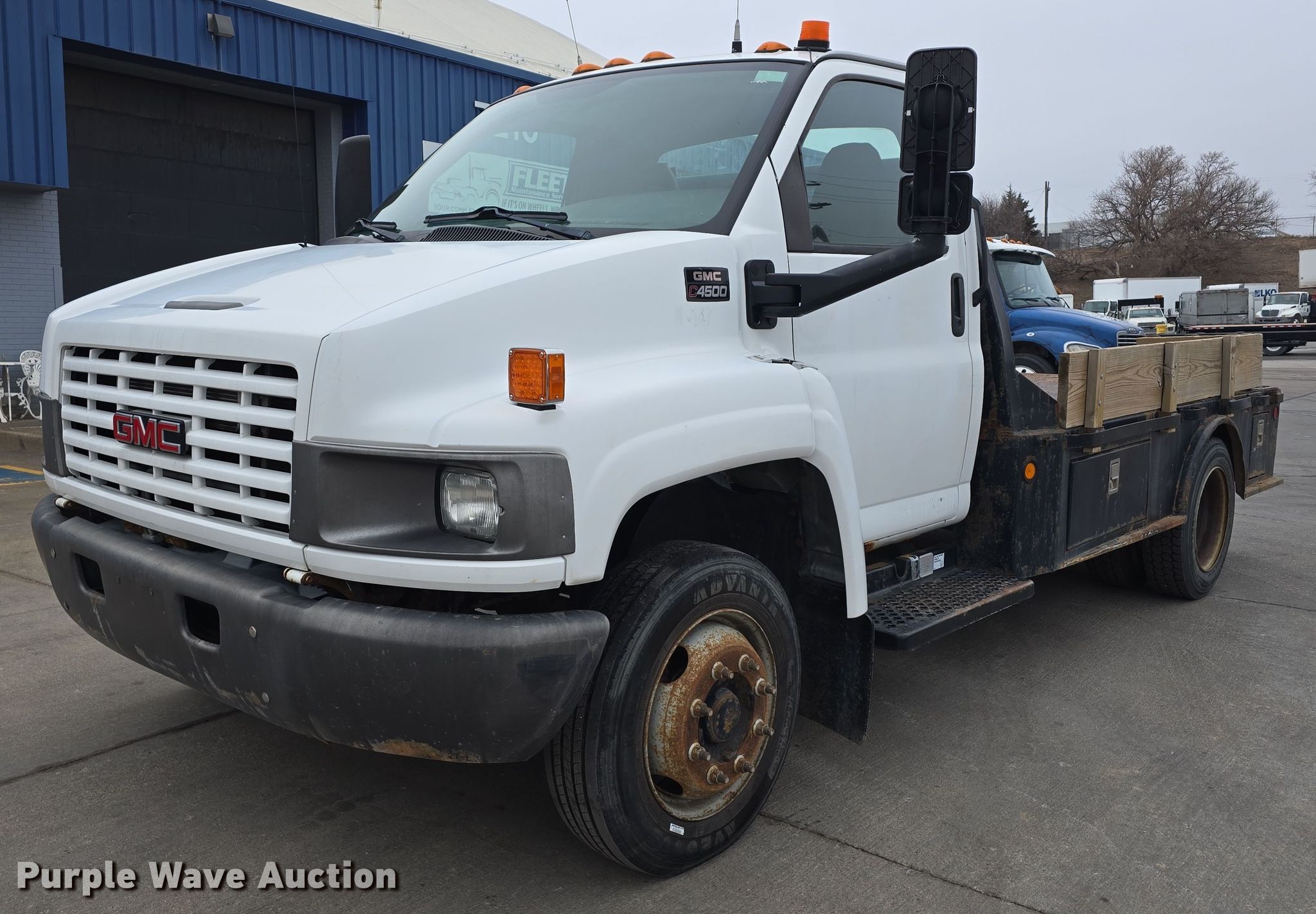 This 2008 GMC C4500 flatbed truck will sell to the highest bidder regardless of price.