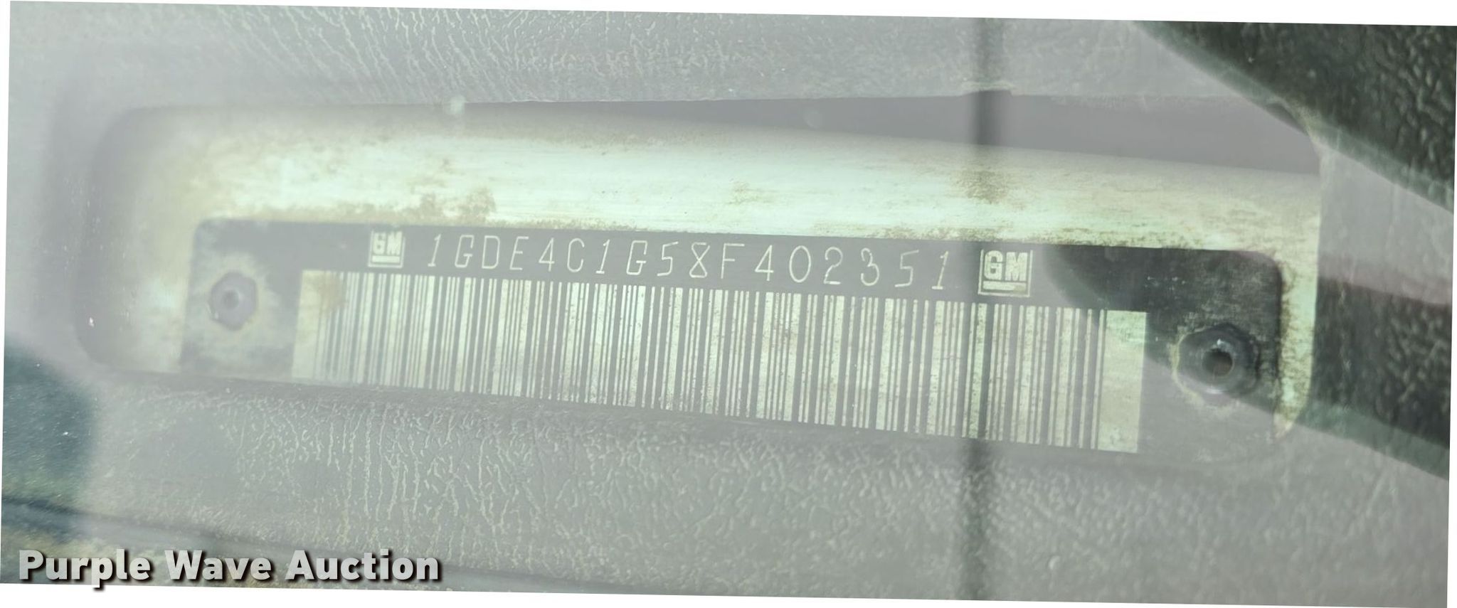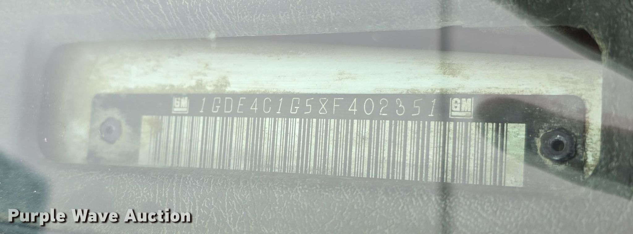 2008 GMC C4500 flatbed truck. Miles: 82,264 on odometer, VIN: 1GDE4C1G58F402351. Engine Displacement: 8.1L, Cylinders: 8, Fuel type: Gas. Transmission Automatic. Chassis Axles: Single, Suspension: Spring, Brakes: Hydraulic, GVWR: 16,500 lbs, Wheelbase: 152". Interior Heat, Cruise control, Brake controller. Features Flatbed CM, 11' 6" L x 94" W, Removable sides, Gooseneck. Tires Size: 225/70R19.5. Notes Dash warning indicator: ABS, Brake, Fuel cap missing, Non-operational exterior passenger side door handle. Nebraska title. Title distribution may be delayed up to 14 days from verification of funds. Hatcher Mobile Service. Omaha, NE 68127