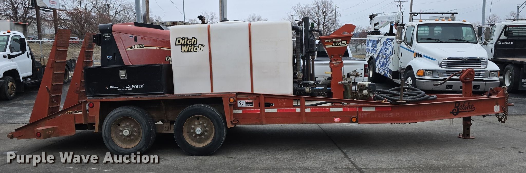 2011 Ditch Witch JT922 directional boring unit. Hours: 920 on meter, Serial: CMWJT922HB0000523. Engine Deutz D 2011 L 04 I, Serial: 10895631, Displacement: 3.619L, Cylinders: 4, Fuel type: Diesel, HP: 55. Features Water pump Bean Pump A0413GI, GPM: 9, Drill bit width: 3.25", Drill stems On drill: 35, Drill stem length: 6' Diameter: 1.5", Hydraulic stake down, Fluid mix system Ditch Witch FM5, Mix system capacity: 300 gallons, Engine Honda GX160.. Tracks Width: 9", Rubber. Trailer 2011 Belshe Industries BF9T, VIN: 16JF01627B1045822, Overall length: 26', Overall width: 102", Ramps: Manual Length: 67", Deck type: Wood, GVWR: 18,000 lbs, Hitch: Pintle, Axles: Tandem, Suspension: Spring, Brakes: Electric, Tire size: 215/75R17.. Nebraska title. Title distribution may be delayed up to 30 days from verification of funds. Hatcher Mobile Service. Omaha, NE 68127