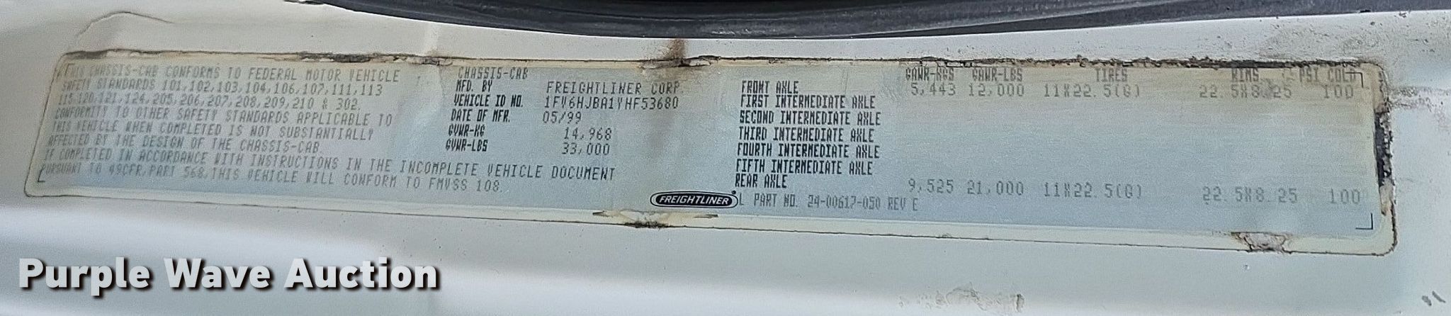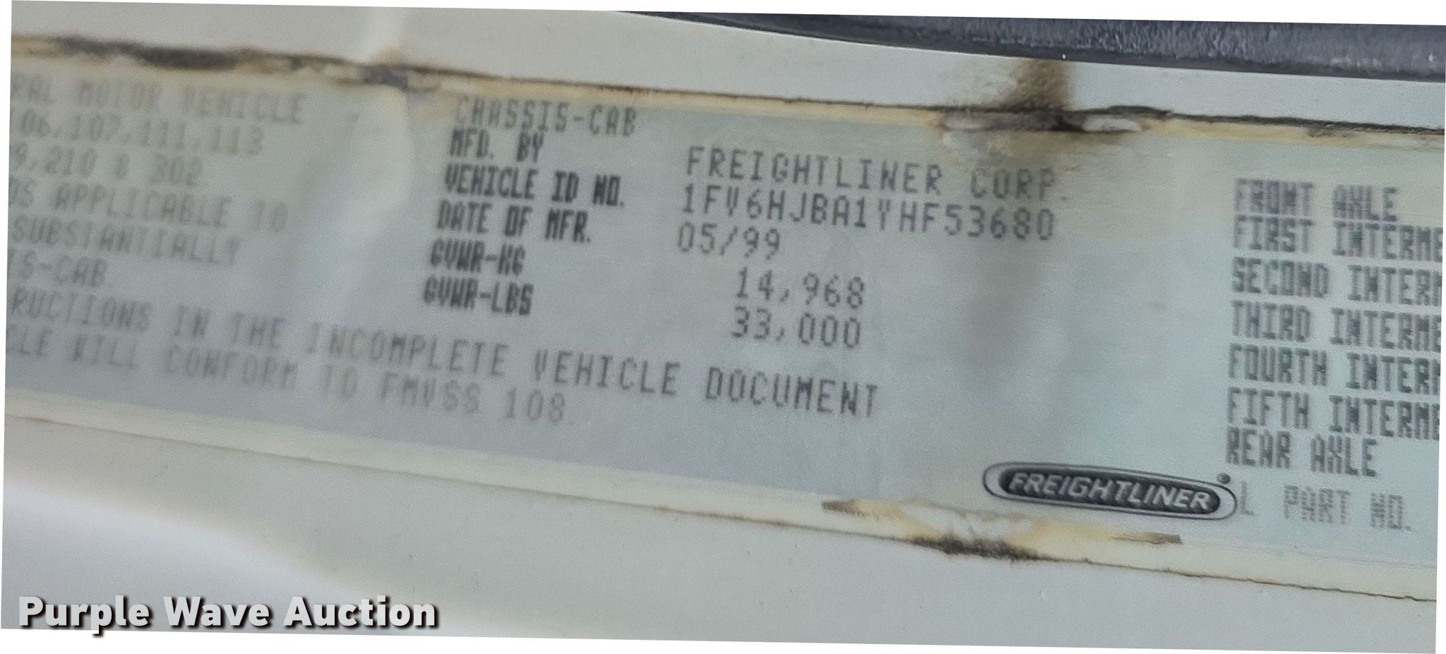 Purple Wave is selling a used Construction Dump Truck in Nebraska. This item is a 2000 Freightliner FL70 rock slinger truck with the following: Miles: 41,127 on odometer, VIN: 1FV6HJBA1YHF53680