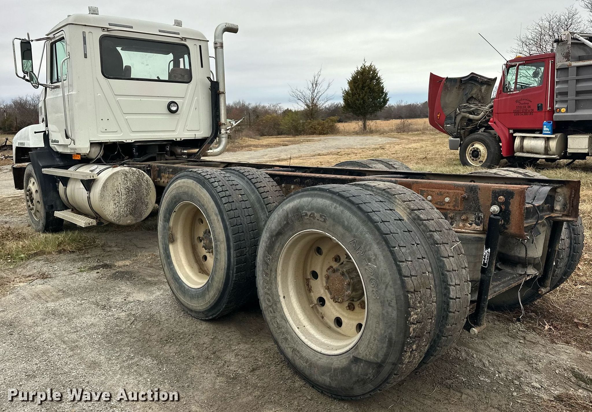 1998 Mack CH613 truck cab and chassis. Miles: 867,531 on odometer, Hours: 31,358 on meter, VIN: 1M1AA13Y3WW090548. Engine Mack E7, Serial: 8C3042, Displacement: 12.0L, Cylinders: 6, Fuel type: Diesel. Transmission MaxiTorque, Manual, Speed: 9. Chassis Axles: Tandem, Differential lock: Inter-axle, Suspension: Air Dump valves, Brakes: Air, PTO, Truck chassis: 16' 2". Interior AC, Heat, Heated mirrors, Cruise control, Air ride cab. Features Fuel tank: Dual. Tires Size: 11R24.5. Notes Windshield chipped or cracked, Dead battery, needs replaced Unit must be towed or hauled. Cherokee Nation title. Title has a lien that will be released following the close of the auction. Title distribution may be delayed up to 30 days from verification of funds. Richardson trucking inc. Stigler, OK 74462