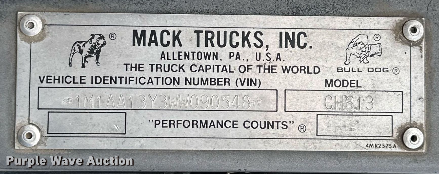 Purple Wave is selling a used Truck Chassis in Oklahoma. This item is a 1998 Mack CH613 truck cab and chassis with the following: Miles: 867,531 on odometer, Hours: 31,358 on meter, VIN: 1M1AA13Y3WW090548