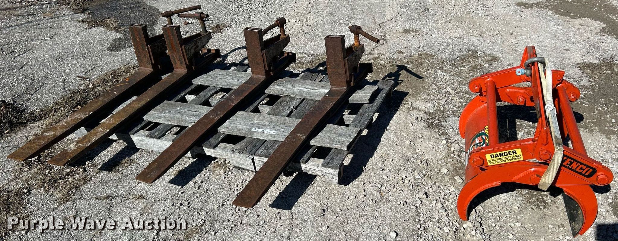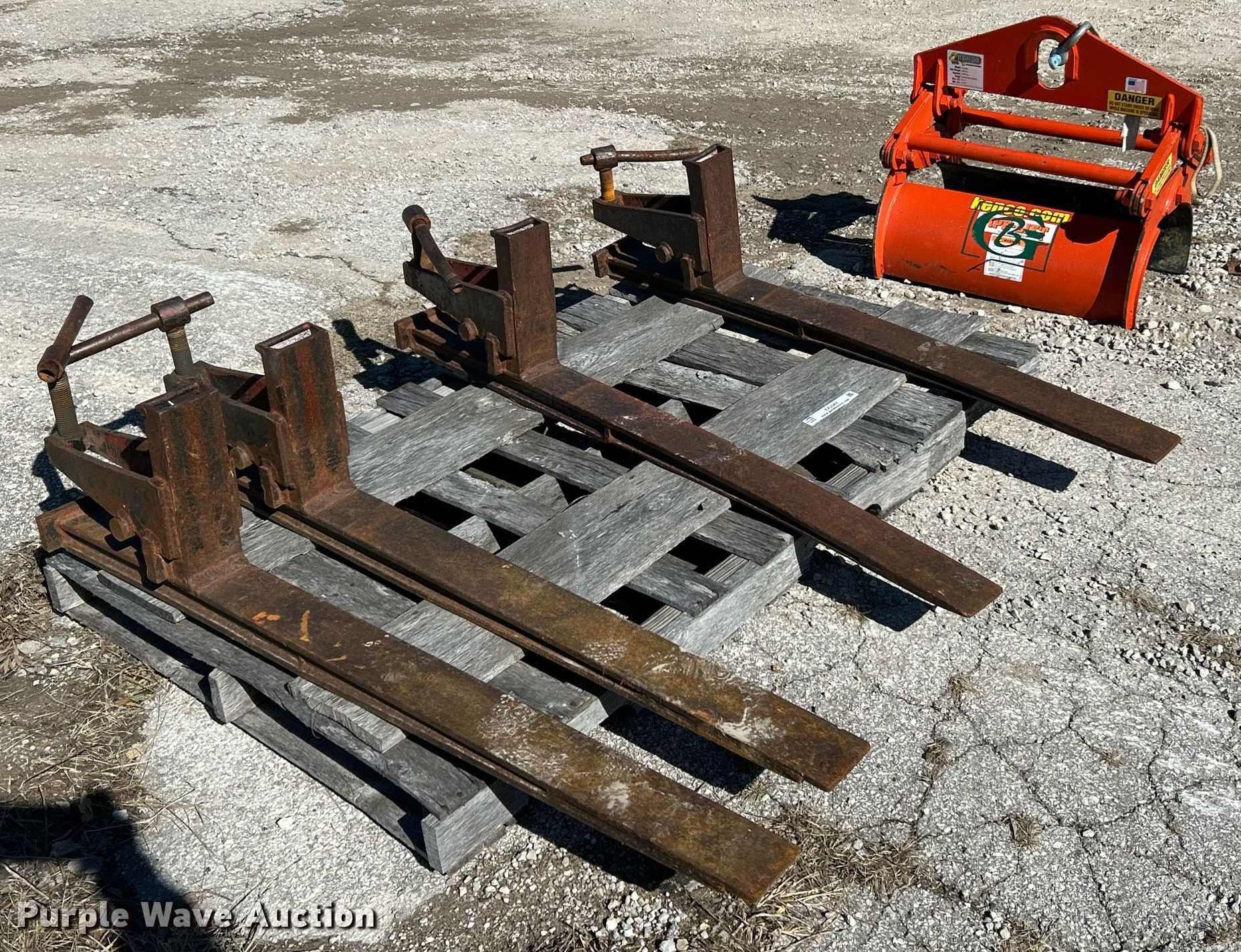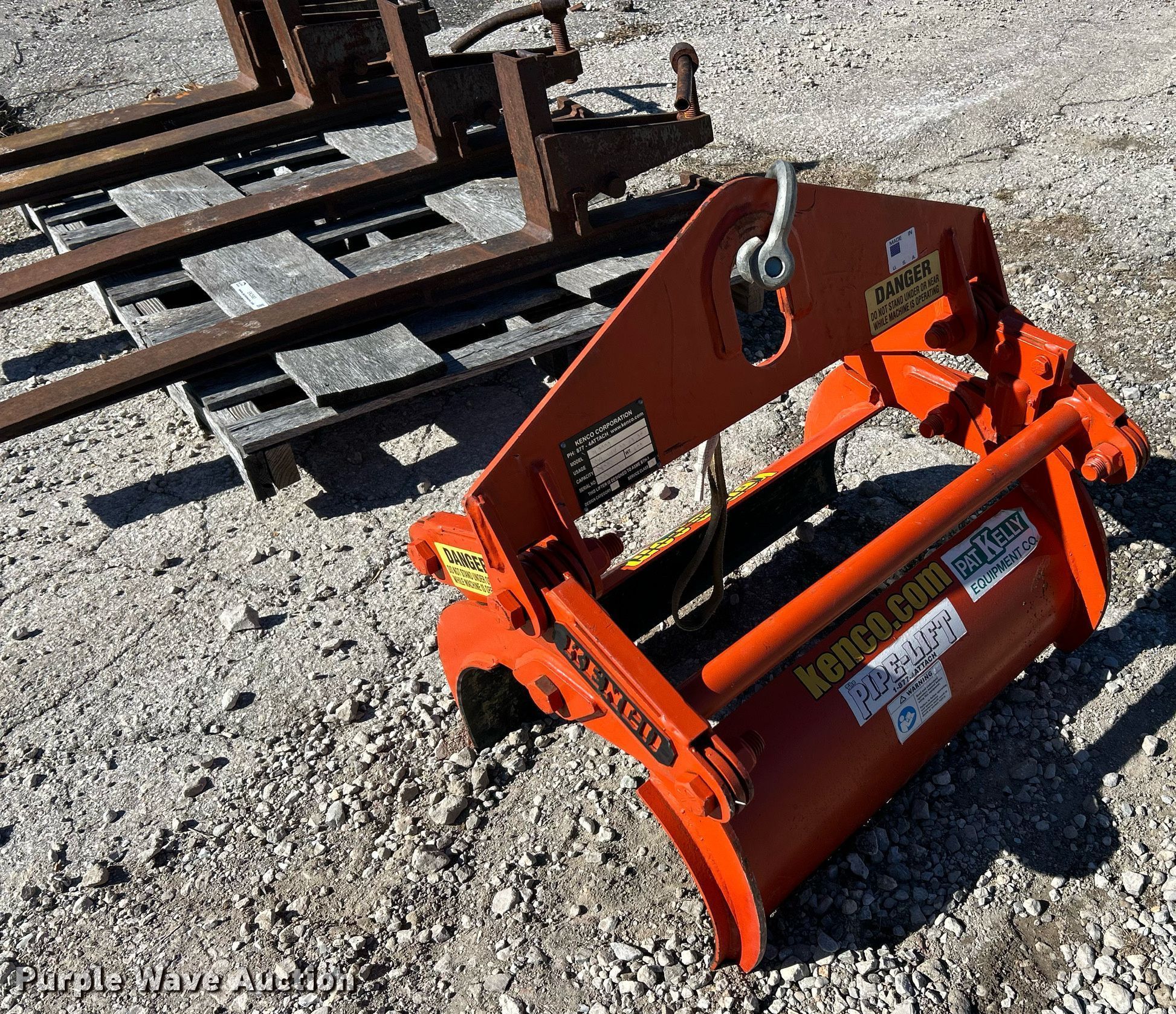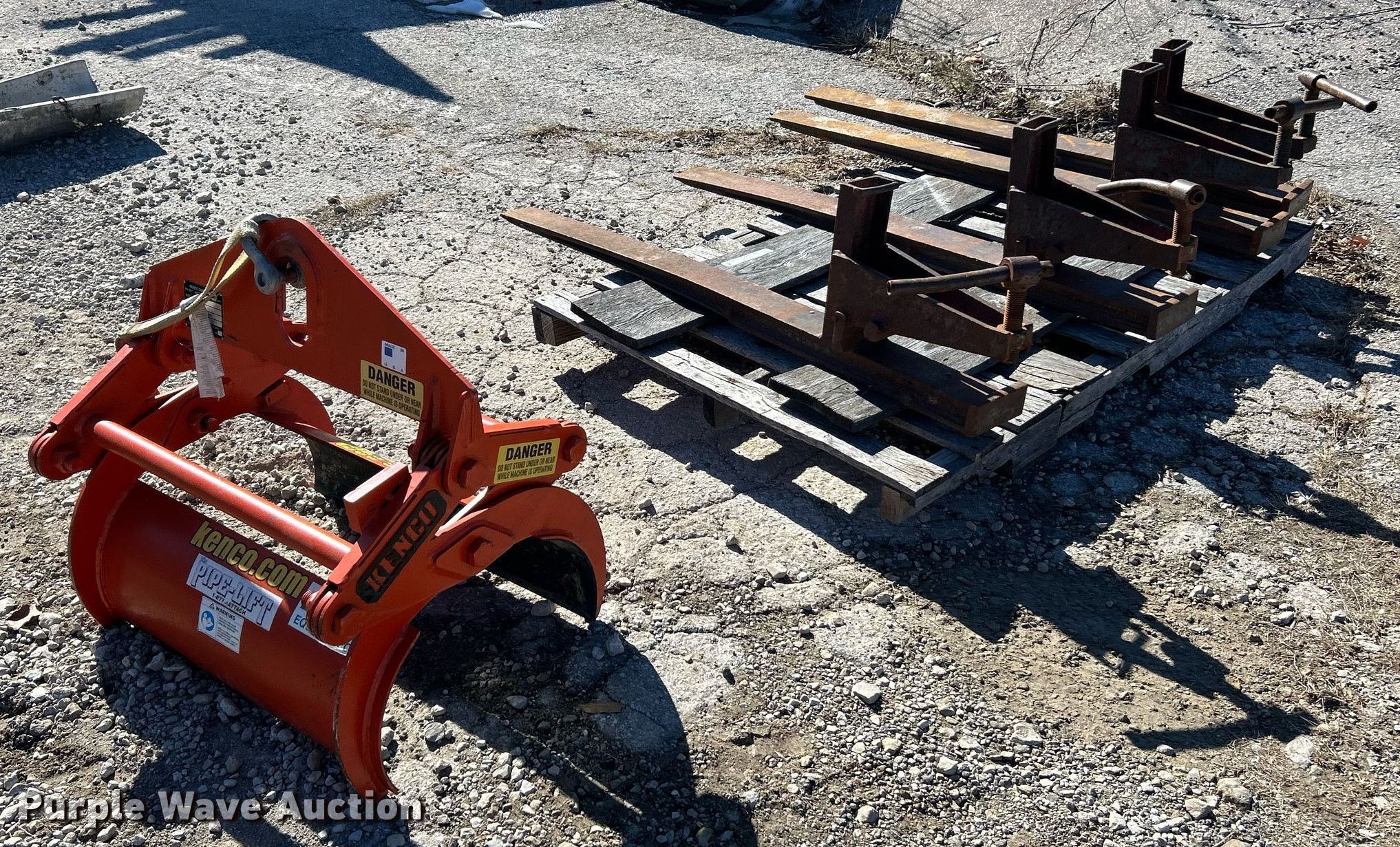 Purple Wave is selling a used Forklift Attach. in Missouri. This item is a Forklift attachments with the following: (2) 42" L forks, Keno PL2000 pipe lifter, Capacity: 2,000 lbs, Maximum diameter: 13.2"