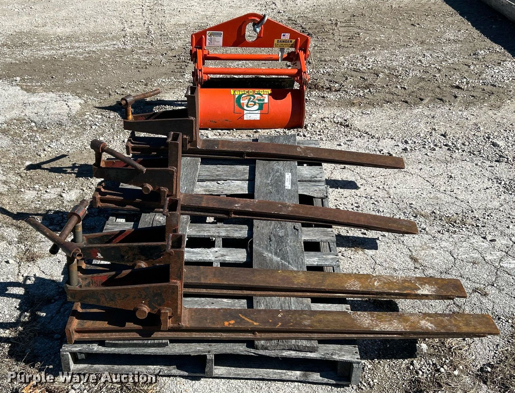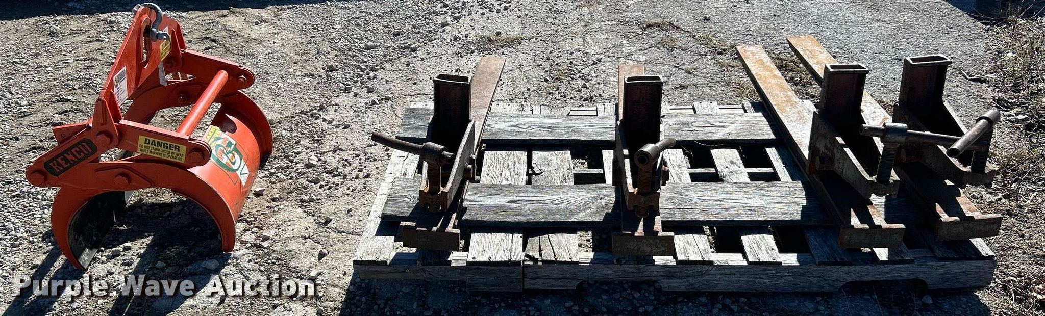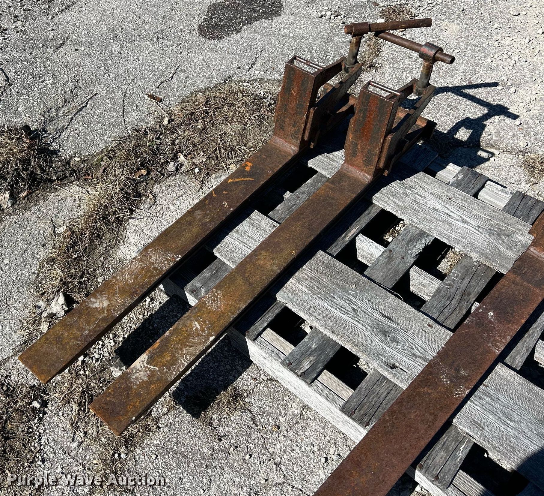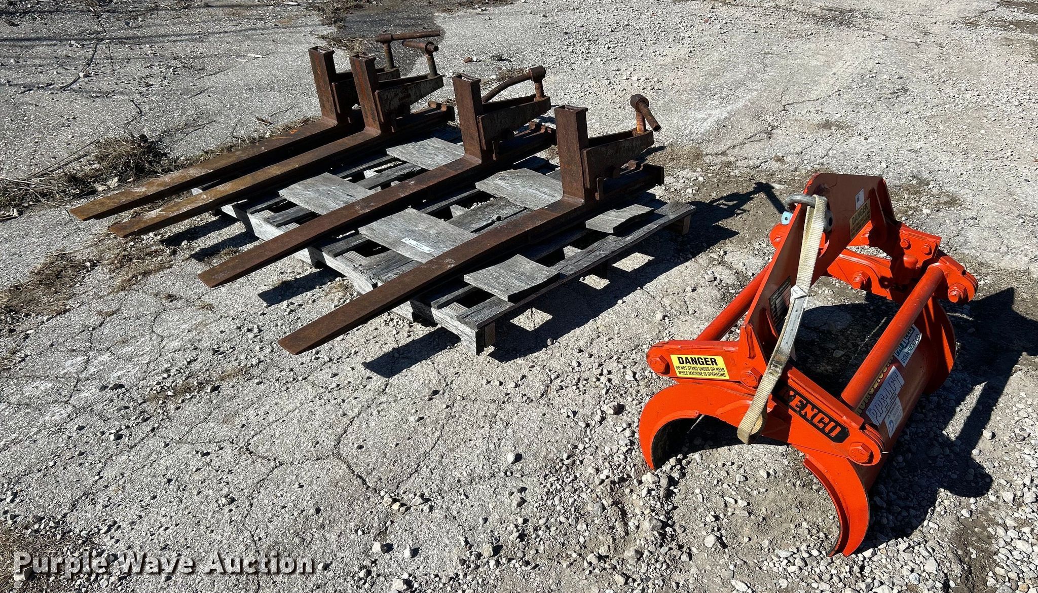 Purple Wave is selling a used Forklift Attach. in Missouri. This item is a Forklift attachments with the following: (2) 42" L forks, Keno PL2000 pipe lifter, Capacity: 2,000 lbs, Maximum diameter: 13.2"