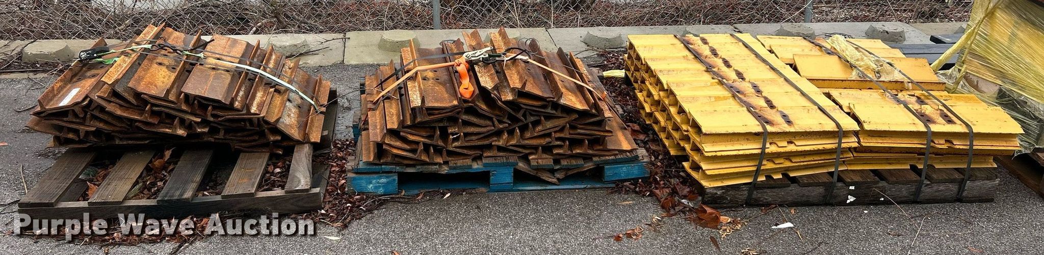 Purple Wave is selling a used Industrial Tires or Tracks in Missouri. This item is a Caterpillar grouser pads with the following: (2) Single grouser pad pallet, Width: 25", Fits Caterpillar D3K, (1) Single grouser pad pallet, Width: 25", Fits Caterpillar D1