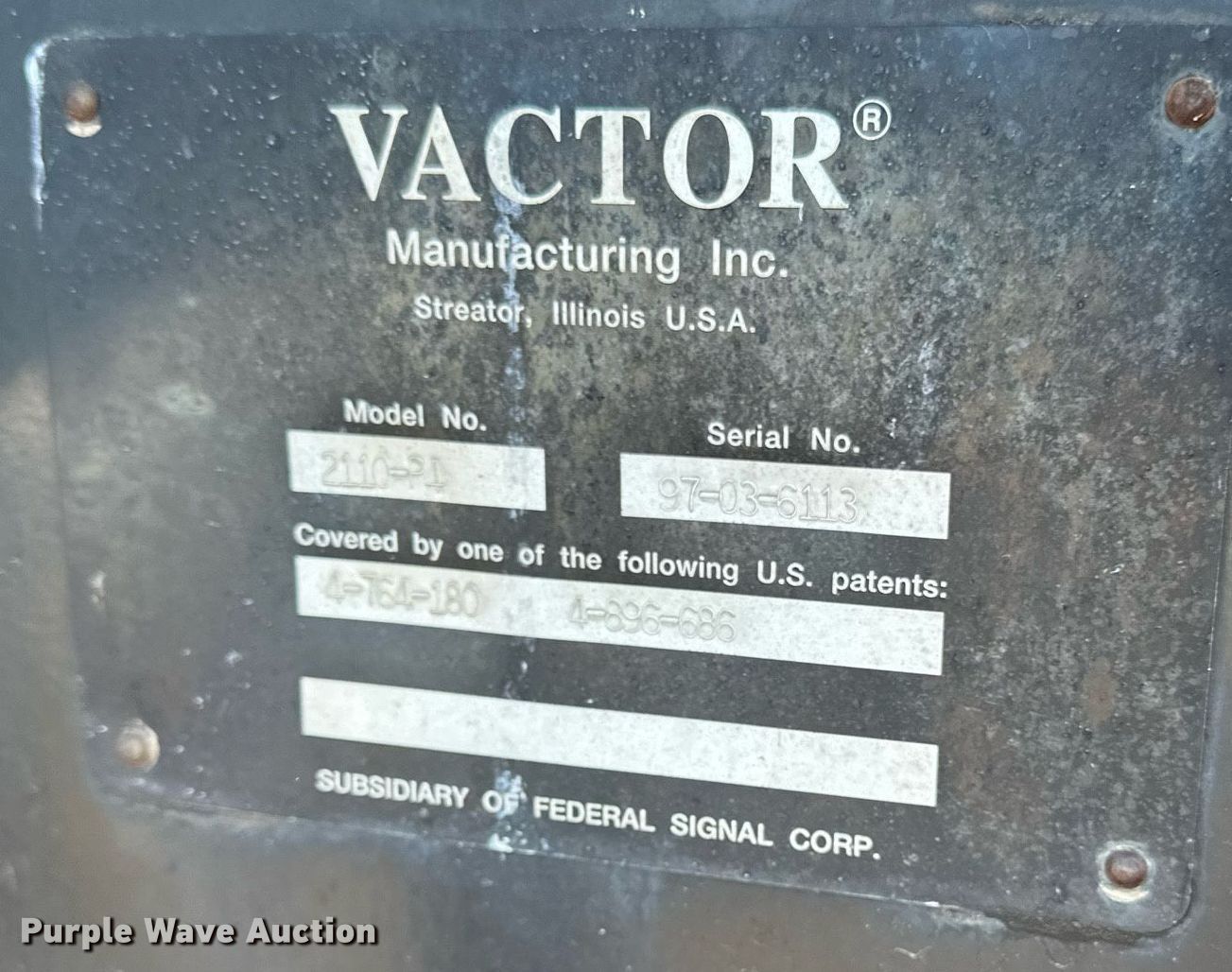 1997 Ford Louisville sewer jetter truck. Miles: 38,162 on odometer, Hours: 6,026 on meter, VIN: 1FDYN80E6VVA34898. Engine Cummins, Displacement: 8.3L, Cylinders: 6, Fuel type: Diesel. Transmission Allison, Automatic. Chassis Axles: Single, Suspension: Spring, Brakes: Air, PTO, GVWR: 41,000 lbs. Interior Heat. Features Tank bed Vactor 2110-P1, Serial: 97-03-6113, Capacity: 1,000 gallons, Rear manway, Rear outlet: 6", Engine Cylinders: 4, Fuel type: Diesel, Hours: 2,861, Water pump PSI: 700, Hose reel Front, Hydraulic, Diameter: 1", Length: 600', Telescopic boom Length: 16'.. Tires Front: 385/65R22.5, Rear: 11R22.5. North Dakota title. Title distribution may be delayed up to 30 days from verification of funds. L2 Contracting. Fargo, ND 58102