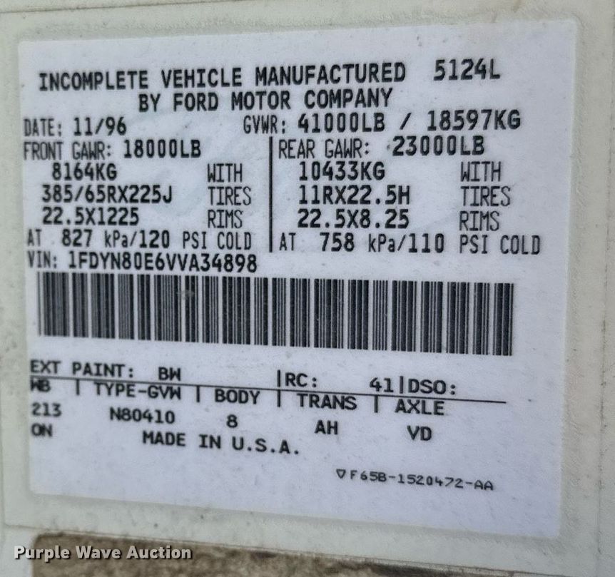 Purple Wave is selling a used Vacuum Truck in North Dakota. This item is a 1997 Ford Louisville sewer jetter truck with the following: Miles: 38,162 on odometer, Hours: 6,026 on meter, VIN: 1FDYN80E6VVA34898