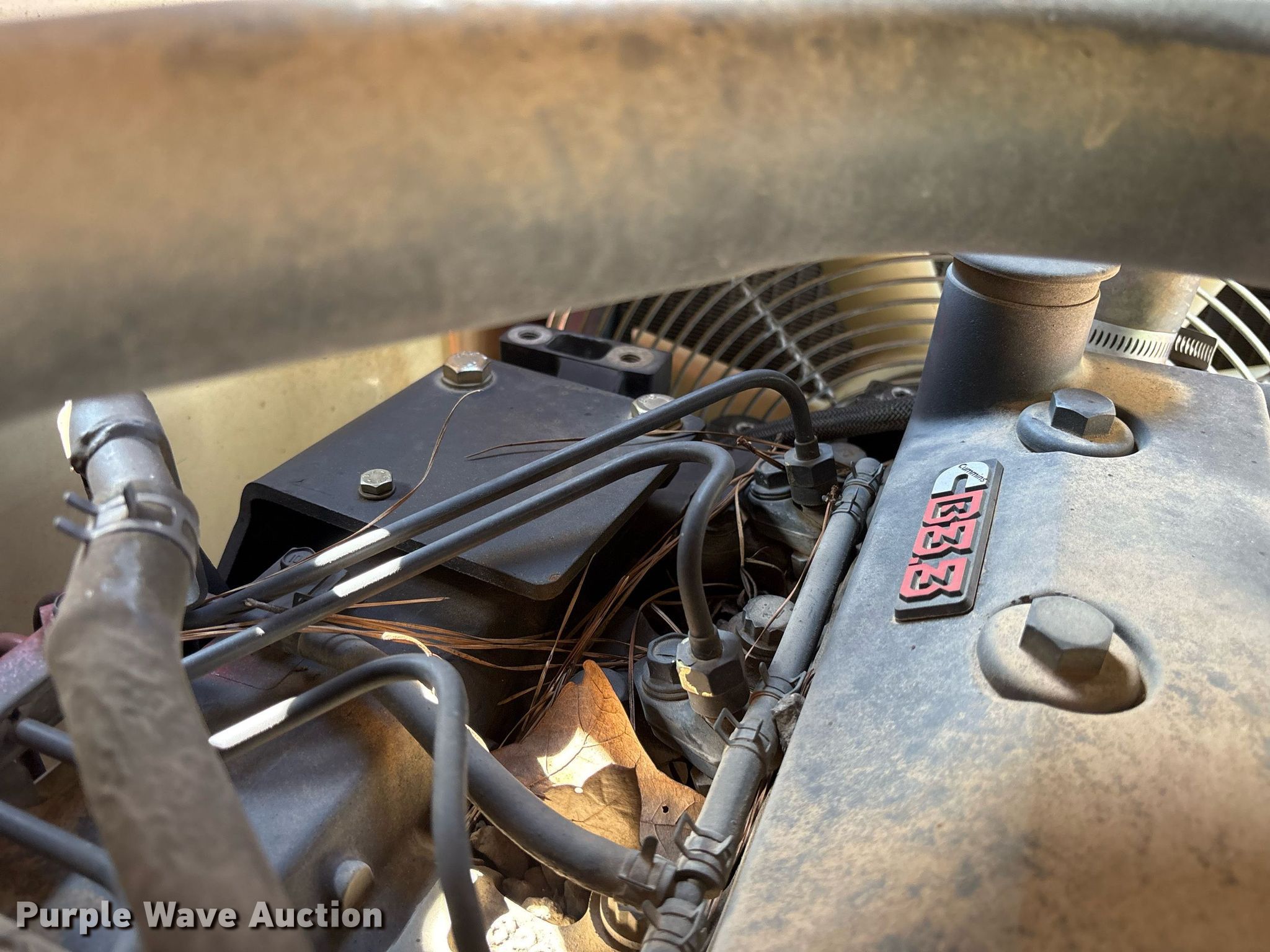 2002 Ingersoll Rand PT-125R pneumatic roller. Hours: 1,361 on meter, Serial: 172124. Engine Cummins B3.3, Displacement: 3.3L, Cylinders: 4, Fuel type: Diesel. Transmission Hydrostatic, Two speed travel. Features Drum scrapers: Front, Rear, Water spray applicator: Front, Rear. Tires Size: 7.50-15 NHS, Quantity: 9. Cardinal Pavement Services. Tyler, TX 75711