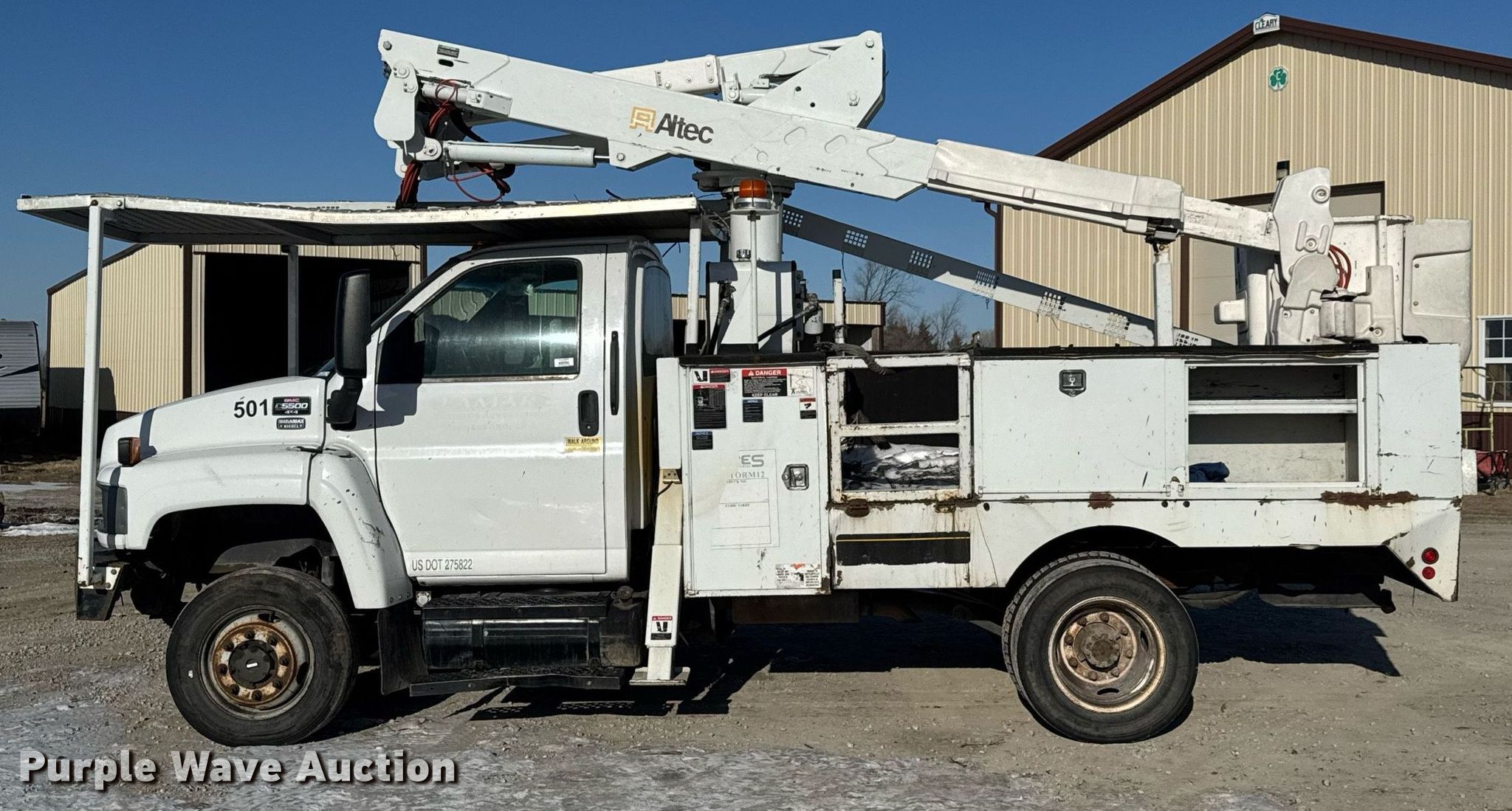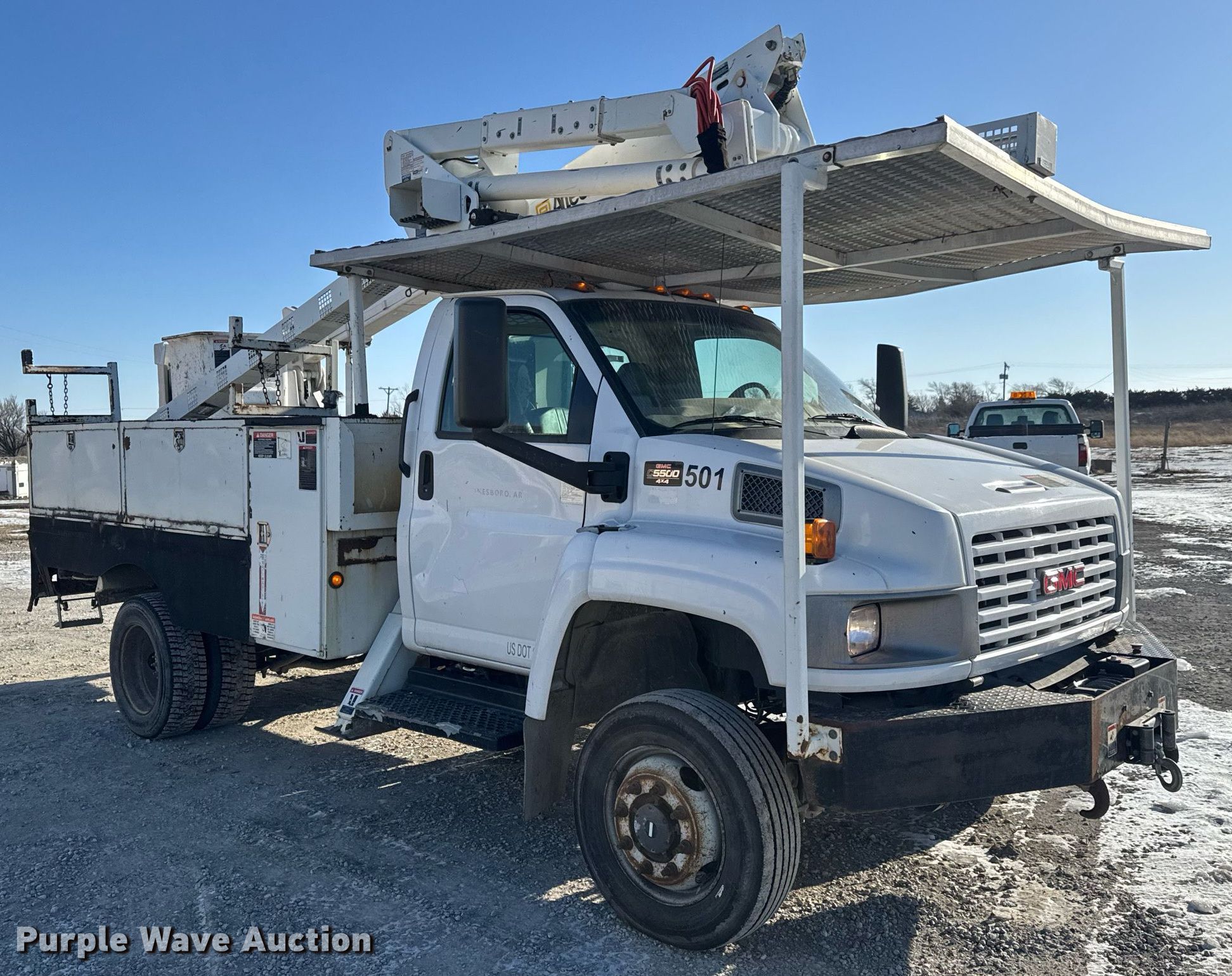 Purple Wave is selling a used Bucket Truck in Kansas. This item is a 2007 GMC C5500 bucket truck with the following: Miles: 196,288 on odometer, VIN: 1GDE5C32X7F417036