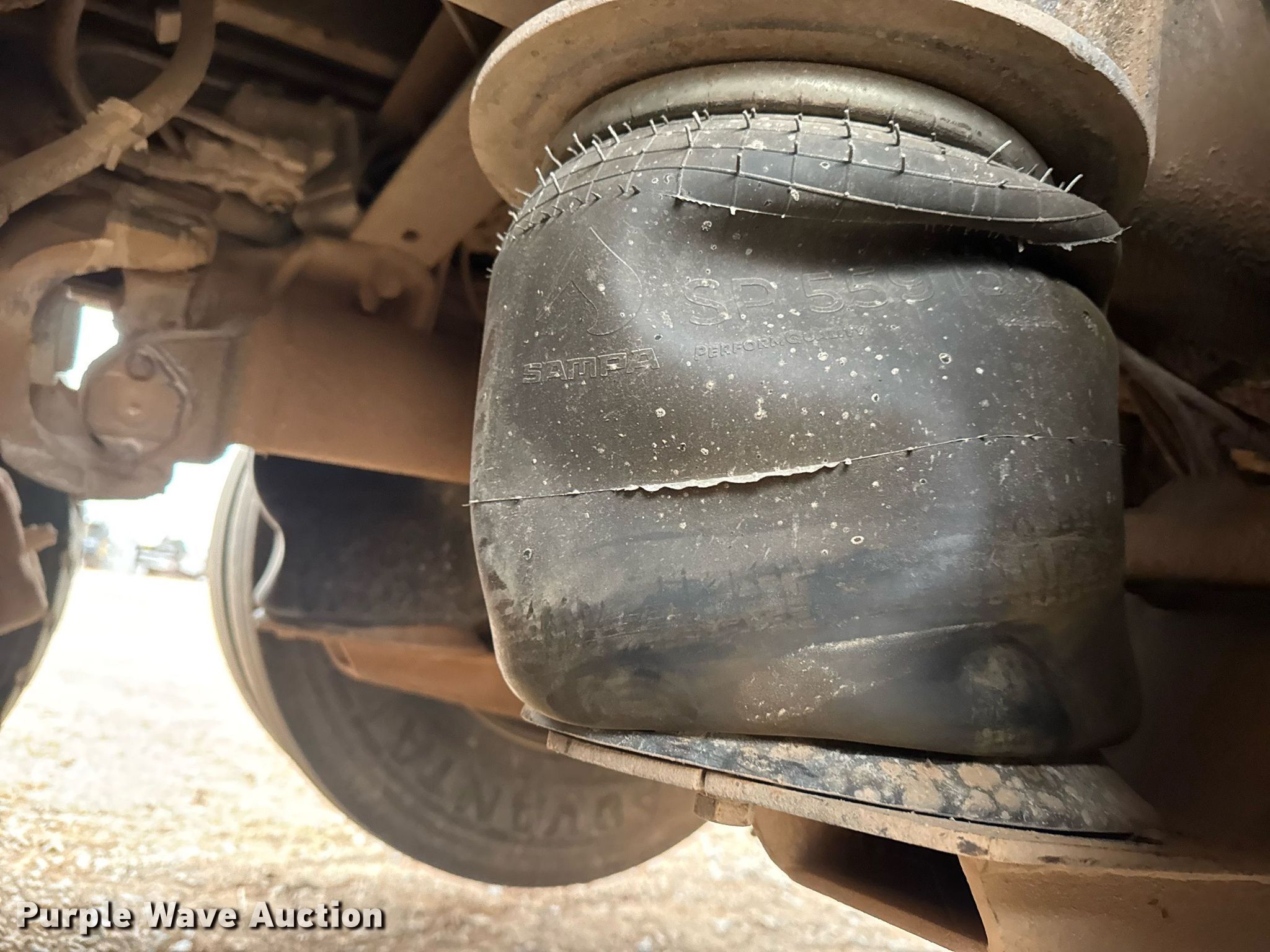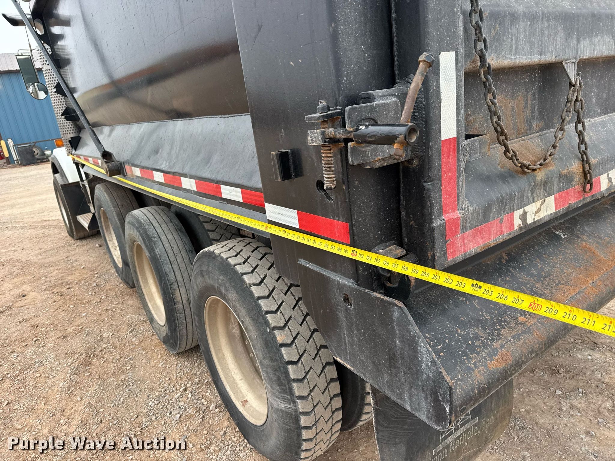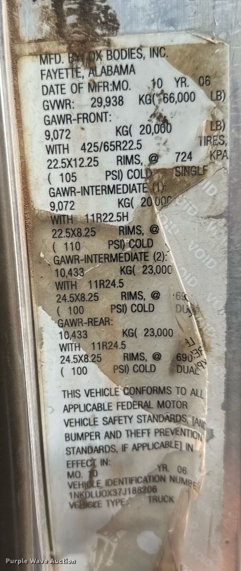 2007 Kenworth T800 dump truck. Miles: 409,443 on odometer, Hours: 17,252 on meter, VIN: 1NKDLUOX37J188206. Engine Caterpillar C13 Acert, Displacement: 12.0L, Cylinders: 6, Fuel type: Diesel, Engine brake. Transmission Manual, Speed: 10. Chassis Double frame, Axles: Triple, Pusher axle, Gear ratio: 4.30, Differential lock: Inter-axle, Suspension: Spring over walking beam, Brakes: Air, PTO, GVWR: 66,000 lbs. Interior AC, Heat, Heated mirrors, Cruise control. Features Dump bed 16' L x 100" W, Side height: 66", Bed type: Steel, Roll tarp, Ram: Single, End gate: Air operated. Tires Front: 385/65R22.5, Rear: 11R24.5, Lift axle: 11R22.5. Oklahoma title. Title distribution may be delayed up to 30 days from verification of funds. Okie Construction & Welding. Clinton, OK 73601