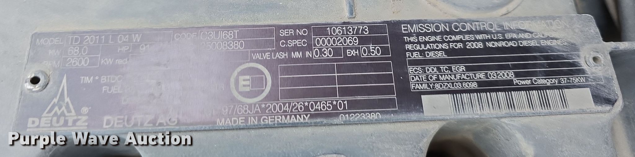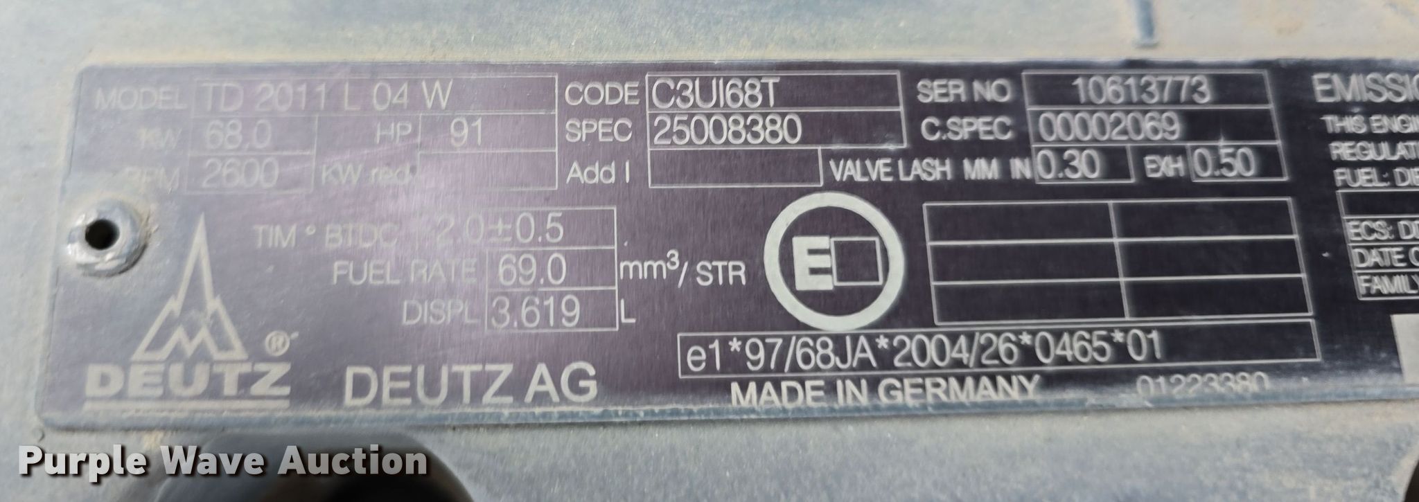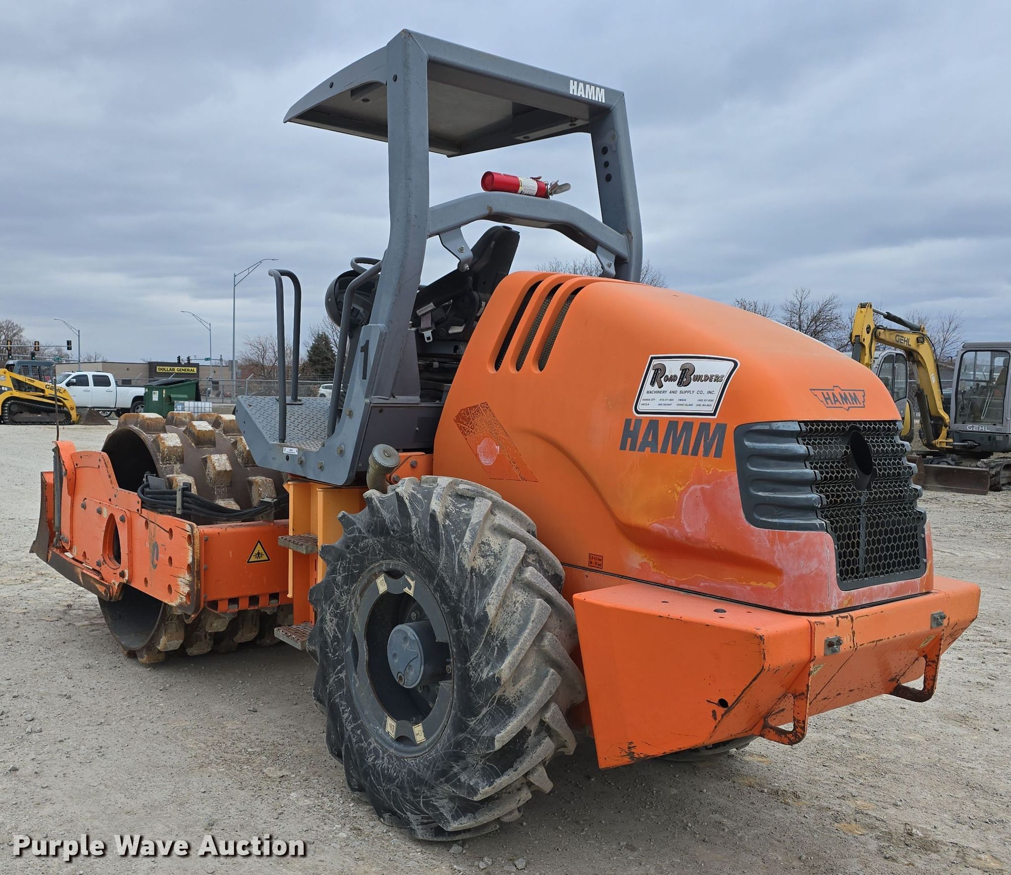 Hamm 3307P single drum roller. Hours: 28 on meter Actual hours unknown, Serial: H1890054. Engine Deutz TD 2011 L 04 W, Serial: 10613773, Displacement: 3.6L, Cylinders: 4, Fuel type: Diesel, HP: 91. Transmission Hydrostatic. Operators station OROPS. Features Drum: Padfoot, Vibratory system: Single, Front drum Width: 66", Diameter: 47", Drum scrapers: Front, Front blade width: 74". Tires Size: 14.9-24. Notes Hour meter replaced at 304 hours. Vincentini Plumbing. Omaha, NE 68110