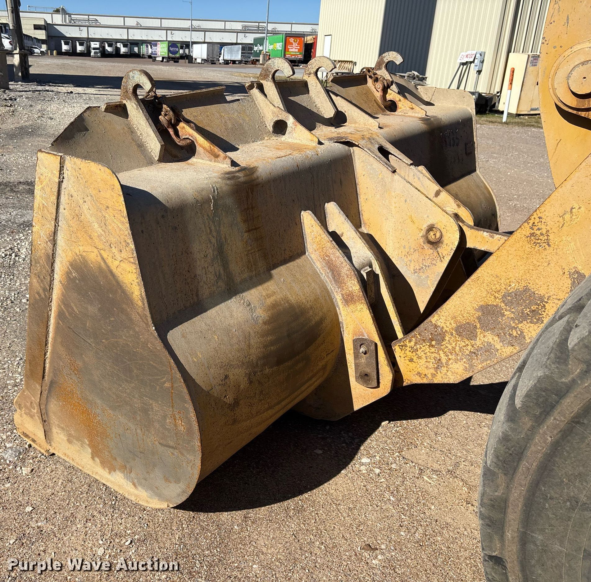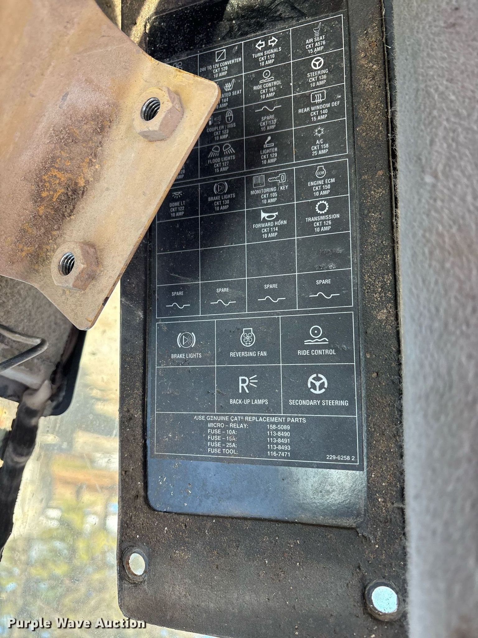 2005 Caterpillar 924GZ wheel loader. Hours: 950 on meter, Serial: CAT924GLRTA00451. Engine Caterpillar 3056E, Serial: CPT15568, Displacement: 6L, Cylinders: 6, Fuel type: Diesel. Transmission Powershift, 4F - 4R. Operators station Enclosed cab, AC, Heat, Bucket controls: Joystick. Features Counter weights, Bucket Caterpillar 733635, Width: 99", Cutting edge: Bolt-on. Tires Size: 550/65R25. Notes Glass cracked. Gilgal Stones Consulting. Tyler, TX 75701