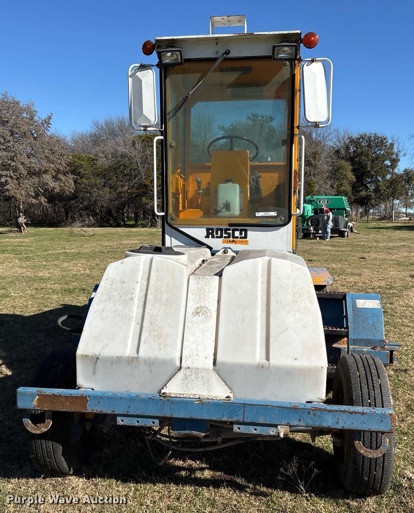 2003 Rosco RB-48 broom. Hours: 2,247 on meter, Serial: 38699. Engine Cummins, Cylinders: 4, Fuel type: Diesel. Transmission Automatic. Chassis Suspension: Spring, Brakes: Hydraulic. Operators station Enclosed cab, AC, Heat. Features Broom Width: 92", Water spray system Capacity: 150 gallons. Tires Size: 225/75R15. Gilgal Stones Consulting. Waco, TX 76708