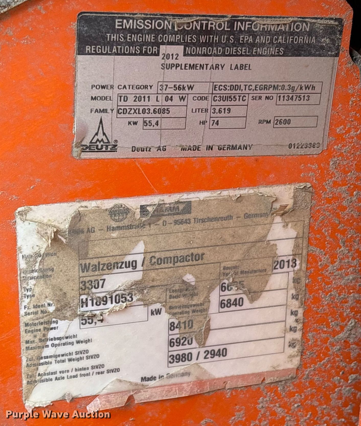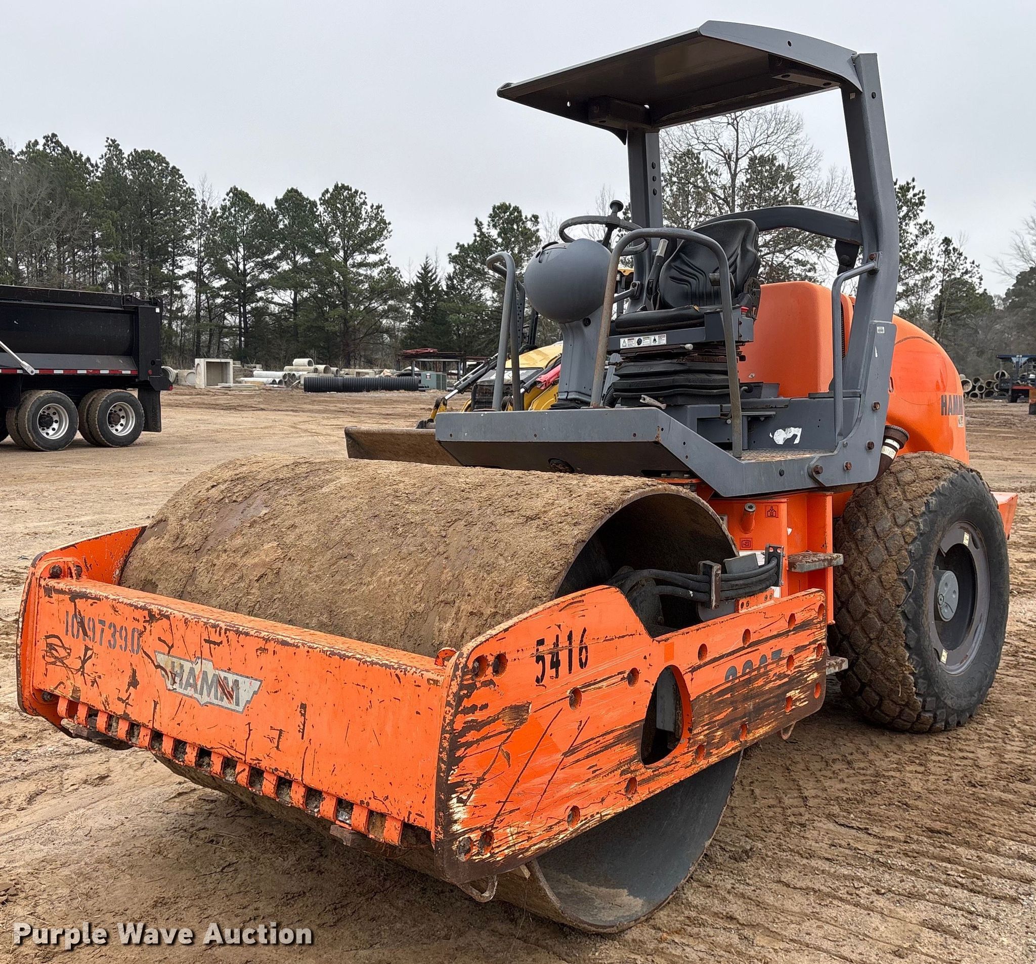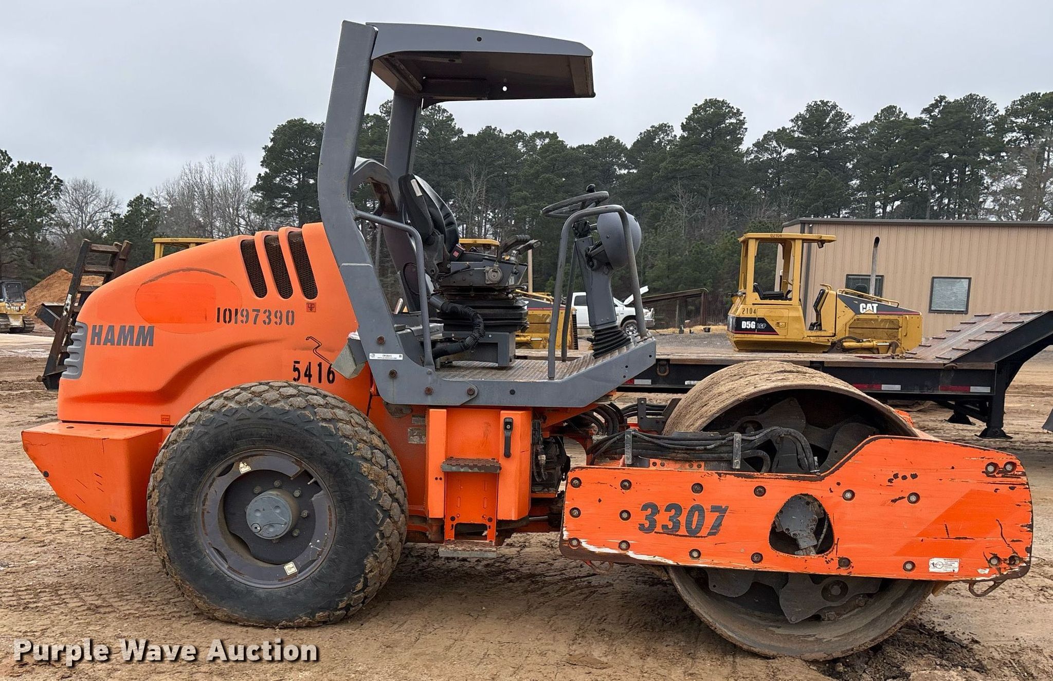 Purple Wave is selling a used Single Drum Roller Compactor in Texas. This item is a 2013 Hamm 3307 single drum vibratory roller with the following: Hours: 2,125 on meter, Serial: H1091053, Unit #: 5416