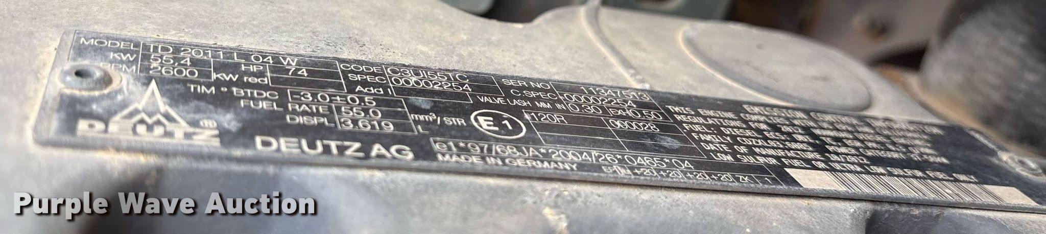 2013 Hamm 3307 single drum vibratory roller. Hours: 2,125 on meter, Serial: H1091053, Unit #: 5416. Engine Deutz, Cylinders: 4, Fuel type: Diesel. Transmission Hydrostatic, Two speed travel. Operators station OROPS. Features Drum: Smooth, Vibratory system: Single, Front drum Width: 66", Diameter: 48", Drum scrapers: Front, Rear. Tires Size: 14.9-24. Notes Non-operational vibratory system. Welch Excavation. Winona, TX 75792
