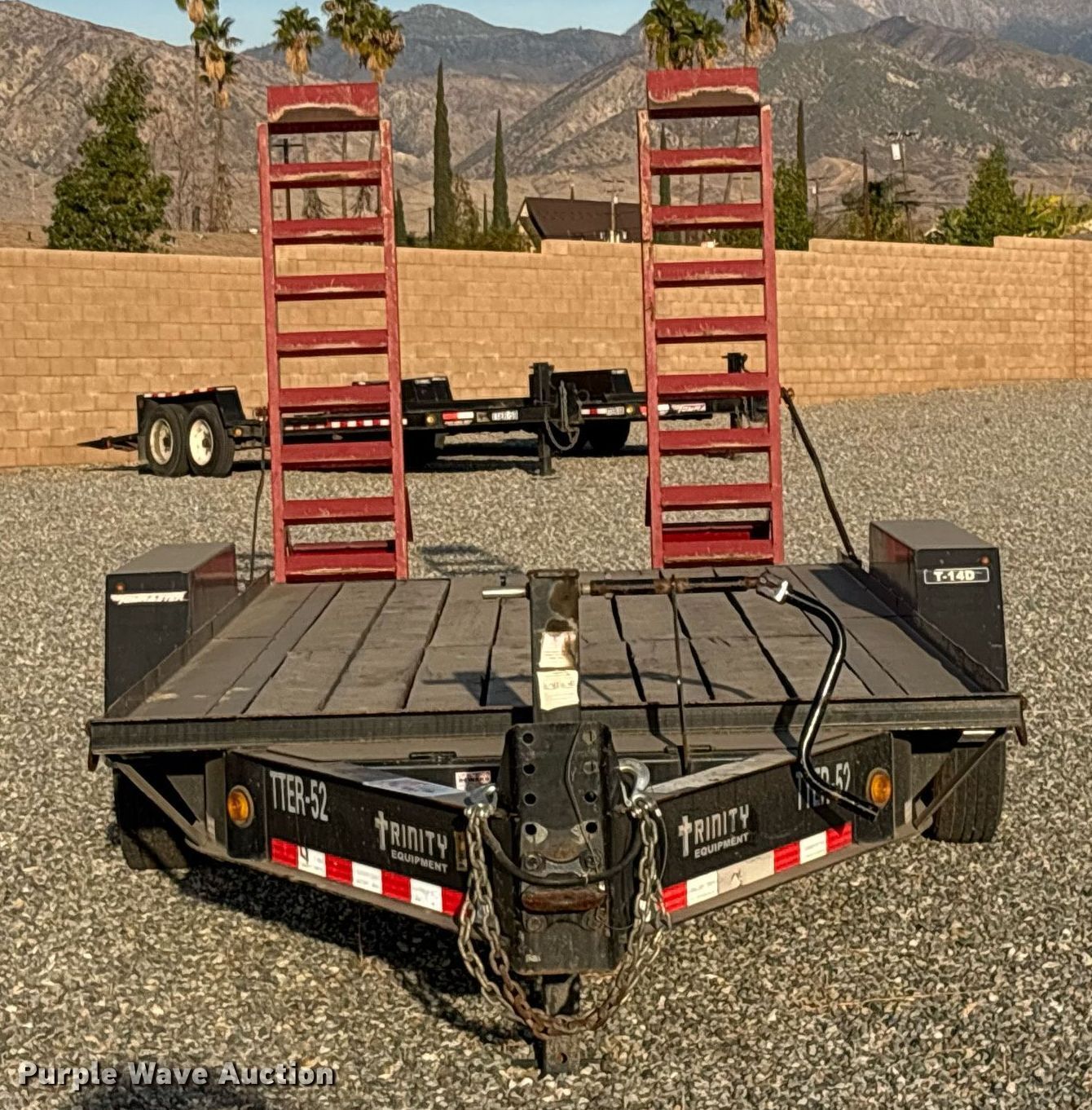 2020 Monroe Towmaster T-14D equipment trailer. VIN: 4KNBF2328LL160184, Unit #: TTER-52, Lot #: 84273994. Dimensions Deck: 10' L x 81" W, Ramps: Manual Length: 6'. Features Deck type: Steel, Wood. Chassis Hitch: Pintle, Landing gear: Single, Brakes: Electric, Axles: Tandem, GVWR: 17,800 lbs, GAWR: 7,200 lbs. Tires Steel wheels, Size: 215/75R17.5. Secured storage hosted by a Copart facility. Please review REQUIRED REMOVAL INSTRUCTIONS [titleremoval]. California title. Title distribution may be delayed up to 30 days from verification of funds. Trinity Equipment Rentals Inc.. Mentone, CA 92359