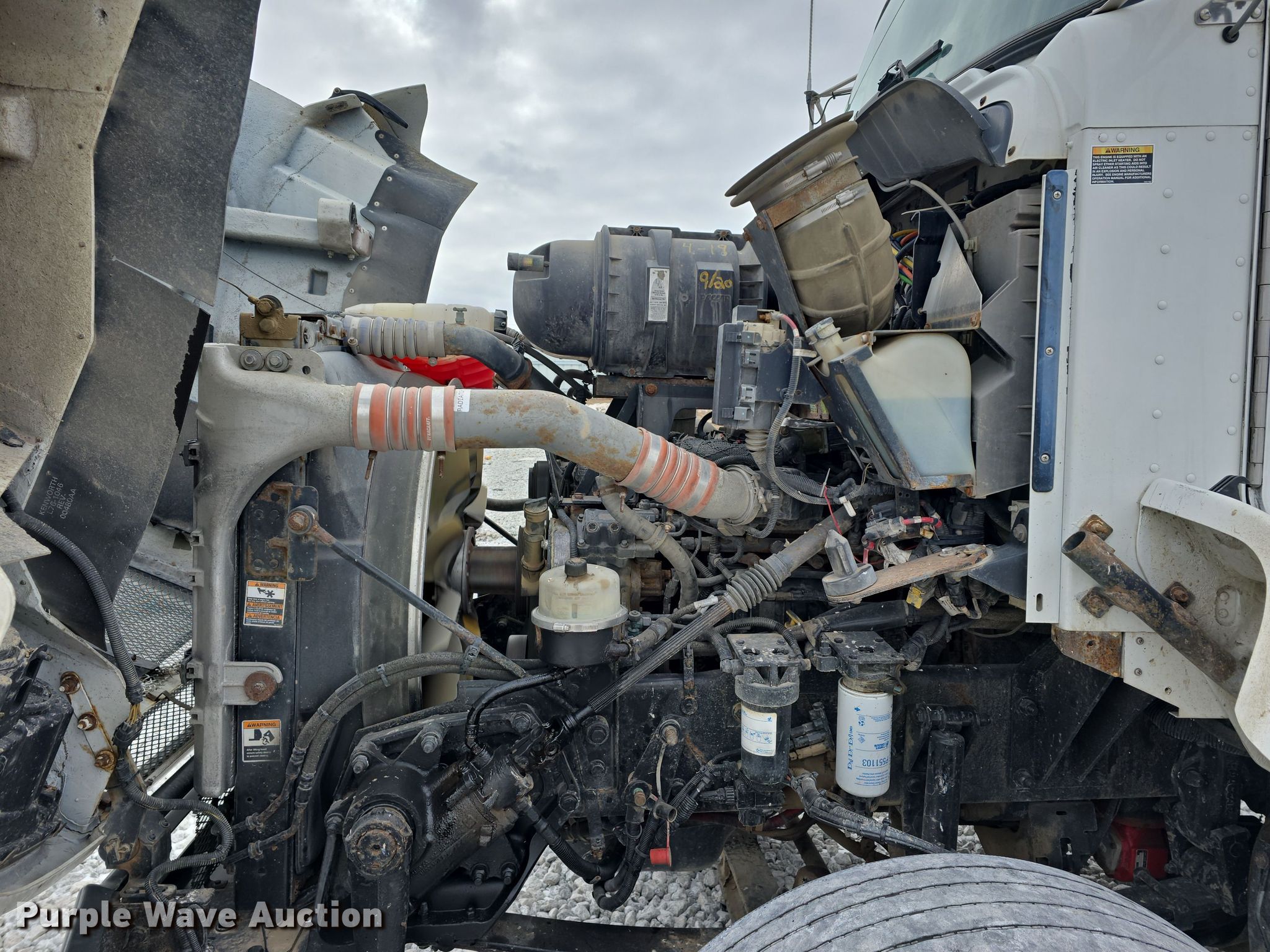 2014 Kenworth T400 dump truck. Miles: 398,218 on odometer, Hours: 13,540 on meter, VIN: 1XKBDJ9X8EJ387499, Lot #: 87236334. Engine Paccar PX-9, Serial: 73497792, Displacement: 8.9L, Cylinders: 6, Fuel type: Diesel, Engine brake. Transmission Eaton Fuller UltraShift PLUS, Automatic. Chassis Axles: Tandem, Differential lock: Inter-axle, Suspension: Air Dump valves, Brakes: Air, PTO, GVWR: 52,000 lbs FAWR: 12,000 lbs, IAWR: 20,000 lbs, RAWR: 20,000 lbs, Wheelbase: 170". Interior AC, Heat, Heated mirrors, Cruise control, Power passenger window. Features Dump bed American Body CMSS, 12' 6" L x 98" W, Side height: 48", Bed type: Steel, Roll tarp Ram: Single, End gate: Air operated. Tires Size: 295/75R22.5. Notes Dash warning indicator: Check engine, Service advised. Secured storage hosted by a Copart facility. Please review REQUIRED REMOVAL INSTRUCTIONS [titleremoval]. Virginia title. Title distribution may be delayed up to 30 days from verification of funds. Greenwood, NE 68366