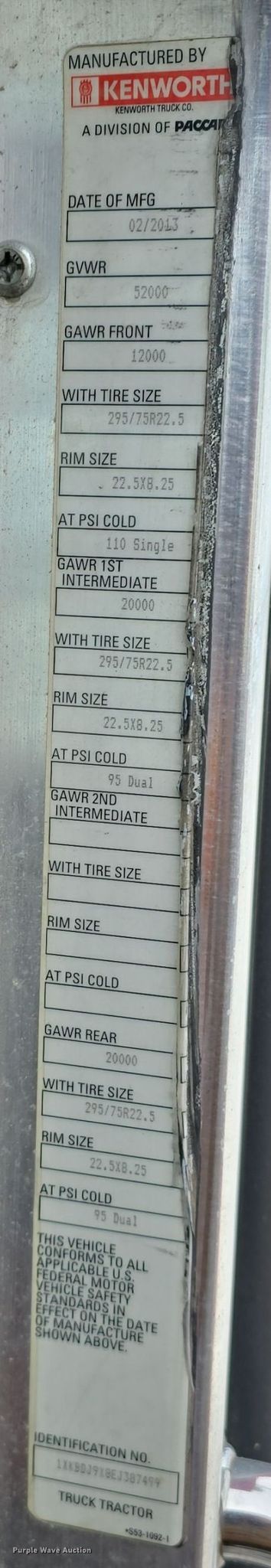 - VIN: 1XKBDJ9X8EJ387499