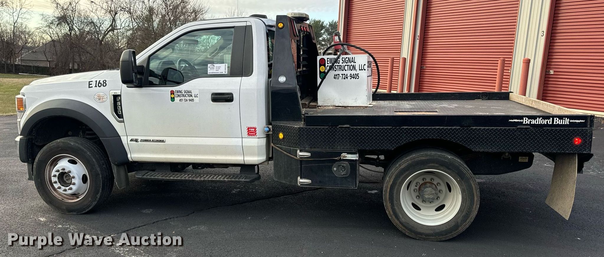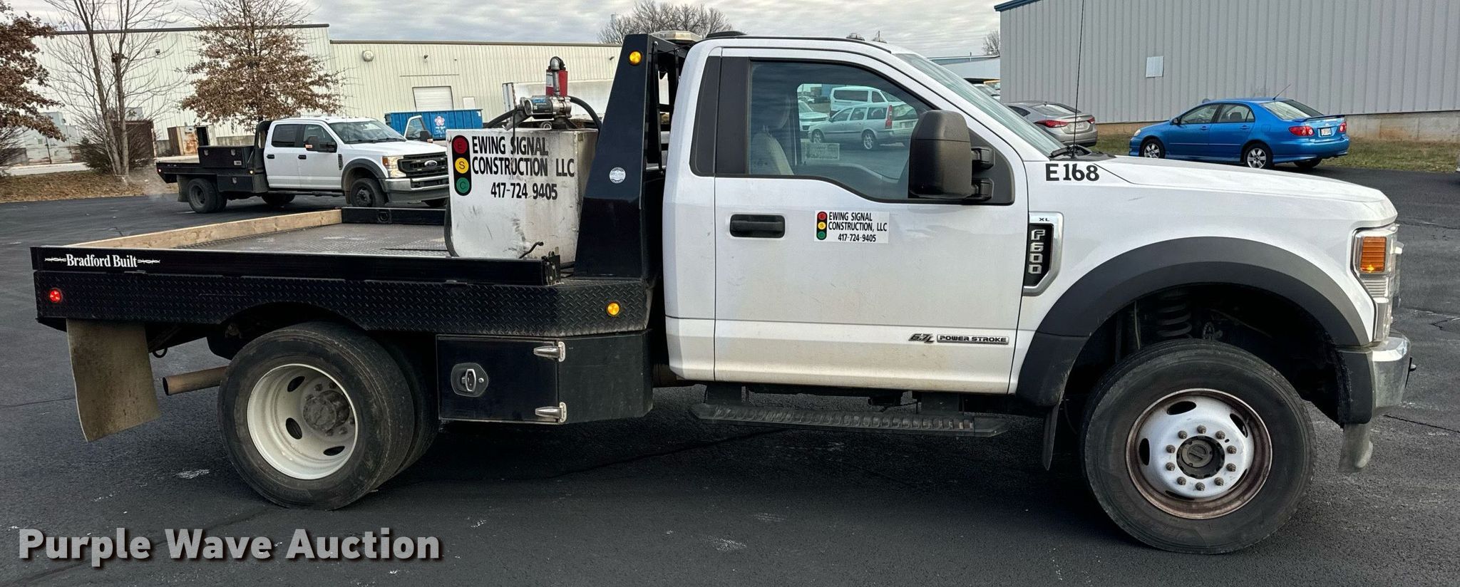 2021 Ford F600 Super Duty XL flatbed truck. Miles: 58,901 on odometer, VIN: 1FDFF6LTXMDA03709, Unit #: E168. Engine Displacement: 6.7L, Cylinders: 8, Fuel type: Diesel. Transmission Automatic. Chassis Four wheel drive, Axles: Single, Suspension: Spring, Brakes: Hydraulic. Interior AC, Heat, Heated mirrors, Power windows, Power locks, Cruise control, Brake controller. Features Flatbed 9' 4" L x 96" W. Tires Size: 245/70R19.5. Missouri title. Title distribution may be delayed up to 30 days from verification of funds. Ewing Signal Construction LLC. - Open Inspection February 21 and 26. 1730 N Gregory. Nixa, MO 65714