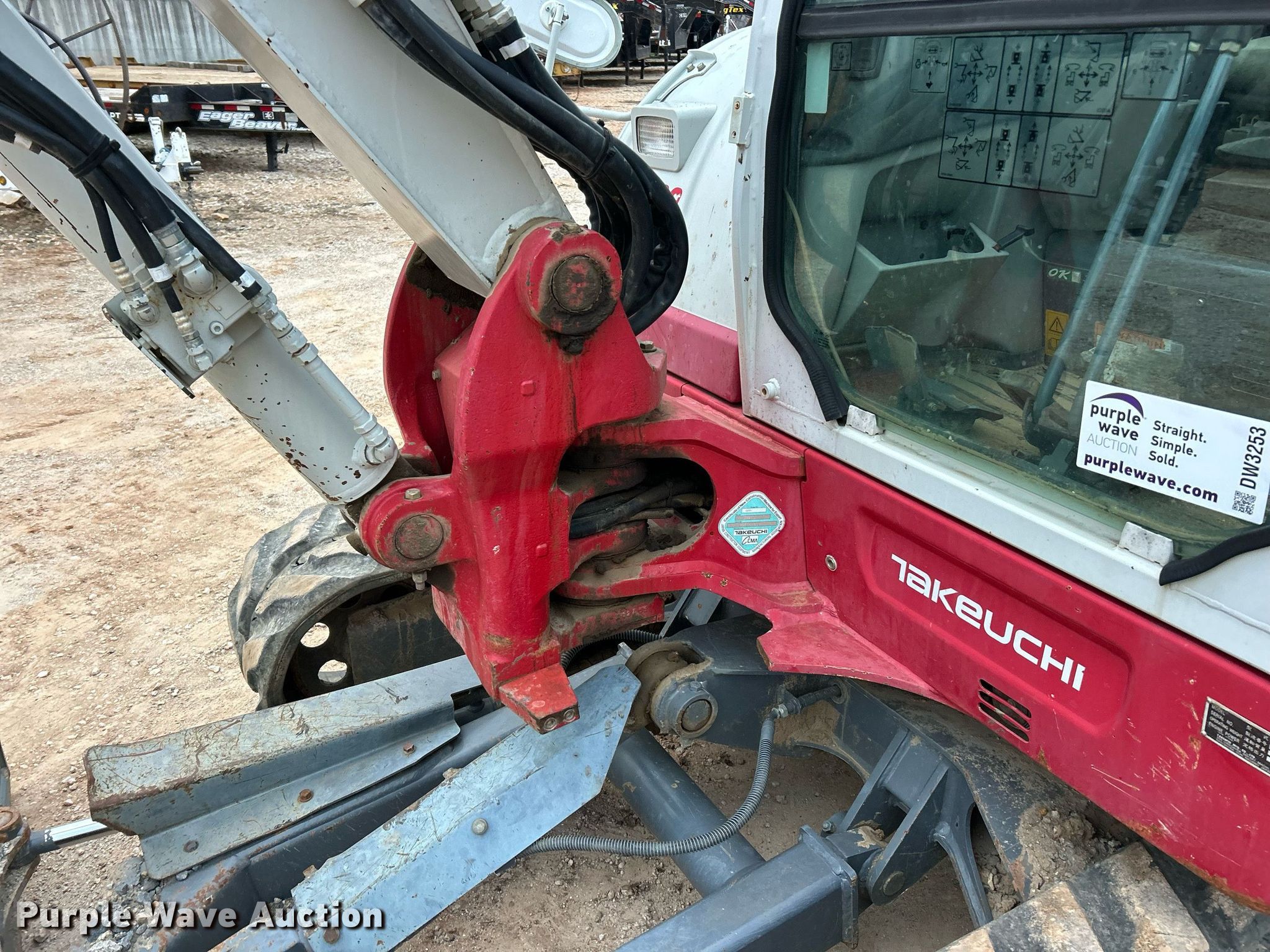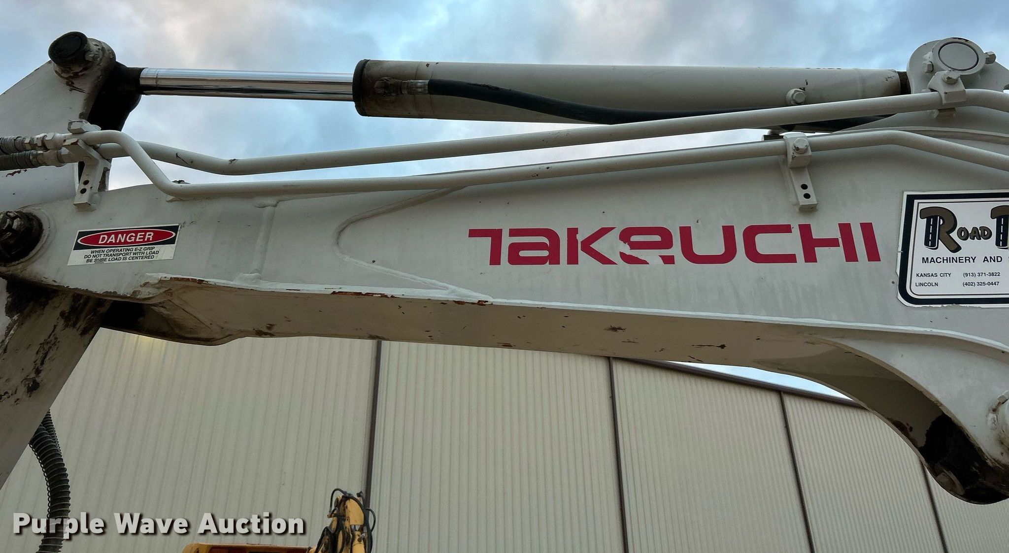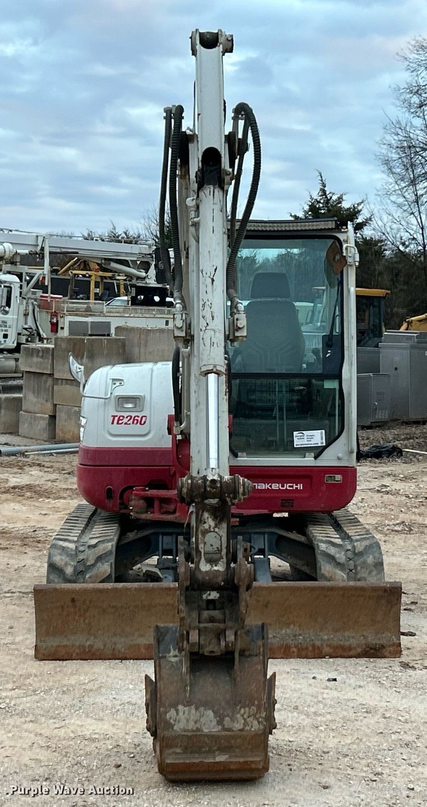 2015 Takeuchi TB260 mini excavator. Hours: 2,898 on meter, Serial: 126100911, Unit #: E114. Engine Yanmar, Displacement: 2.091L, Cylinders: 4, Fuel type: Diesel. Transmission Hydrostatic, Two speed travel. Operators station Enclosed cab, Heat, Pattern changer. Features Auxiliary hydraulics, Backfill blade Width: 79", Boom Swing, Stick Stick length: 6', Quick coupler: Mechanical WB, Bucket WB, Width: 18", Teeth: 4. Tracks Width: 15", Rubber. Notes Door glass missing, Safety arm issues, does not engage. Ewing Signal Construction LLC. - Open Inspection February 21 and 26. 1730 N Gregory. Nixa, MO 65714