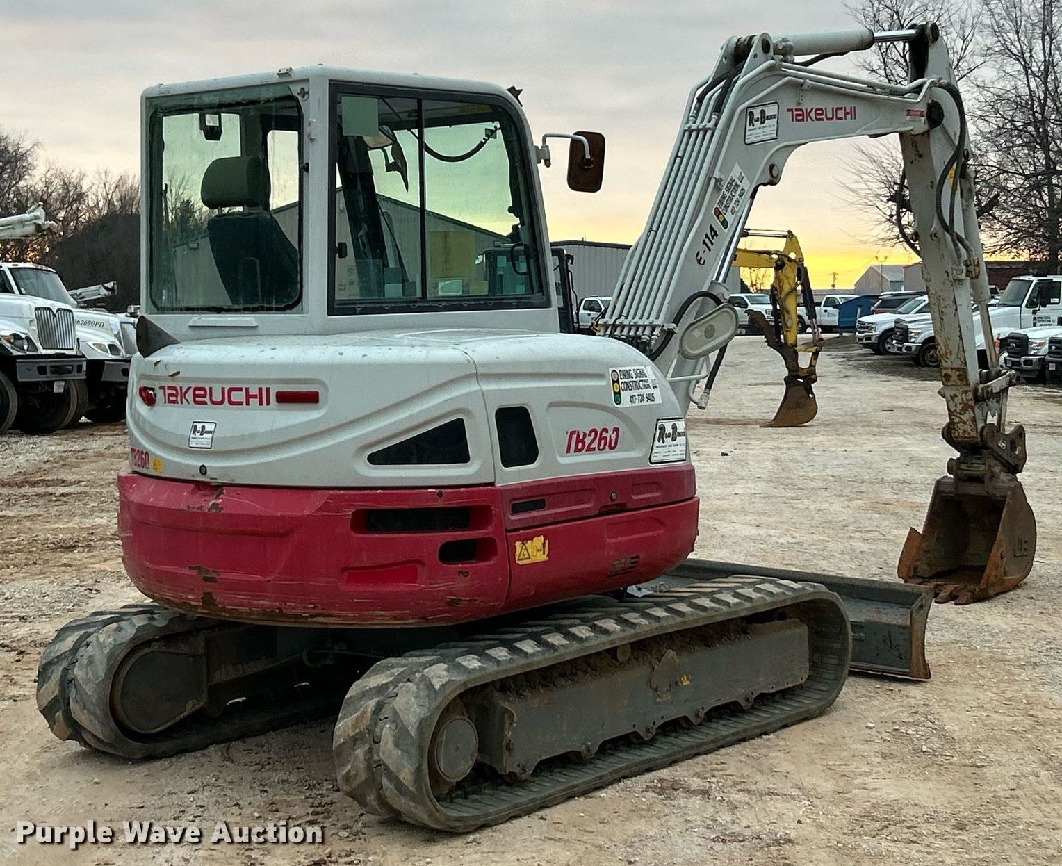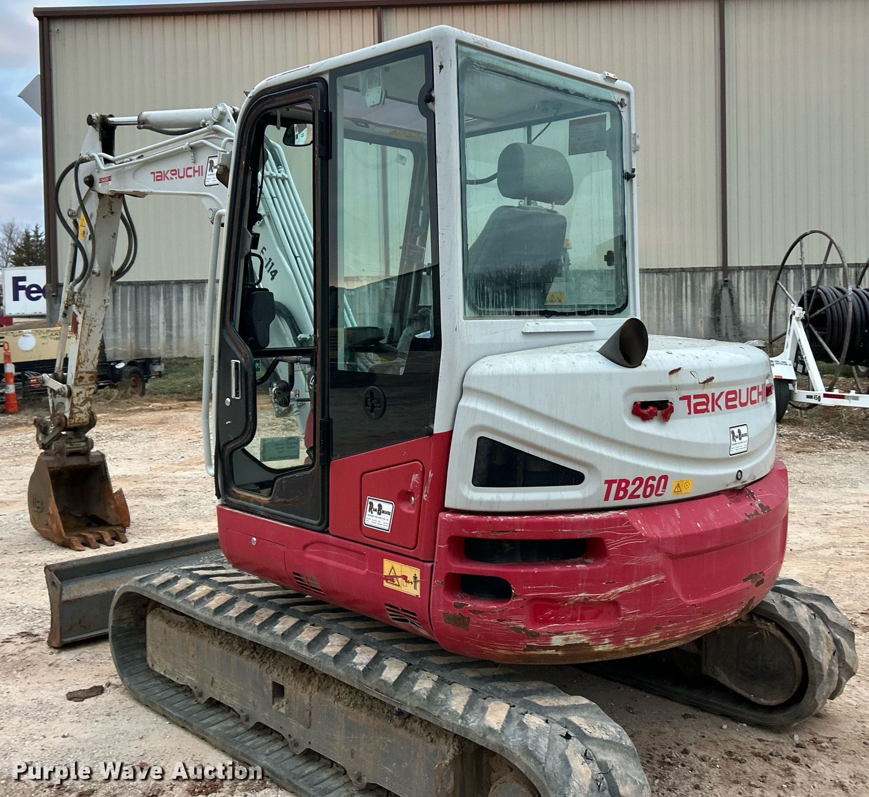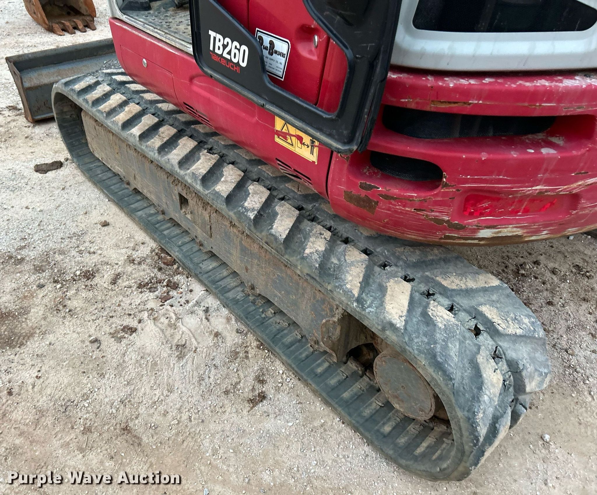 Purple Wave is selling a used Mini Excavator in Missouri. This item is a 2015 Takeuchi TB260 mini excavator with the following: Hours: 2,898 on meter, Serial: 126100911, Unit #: E114