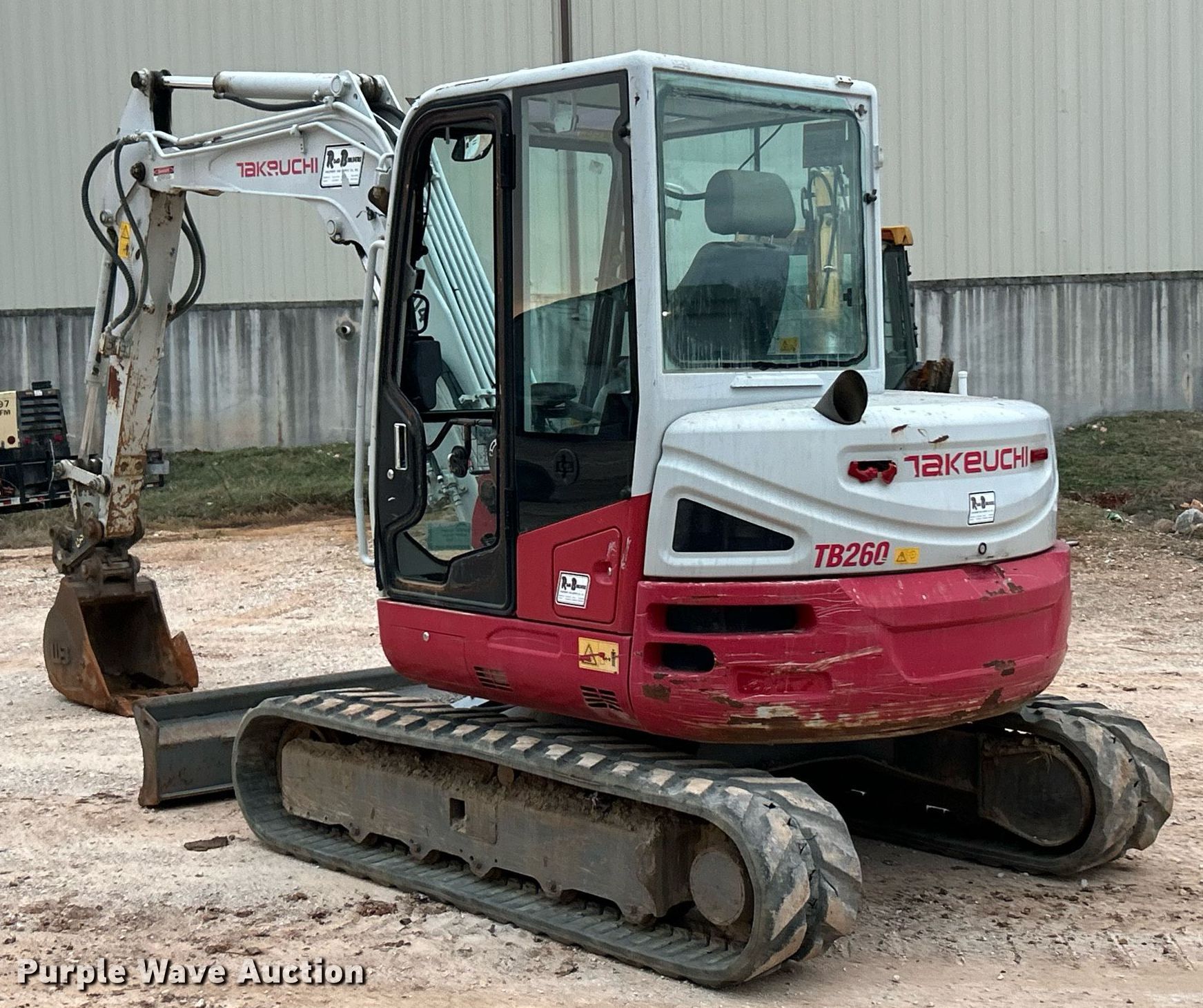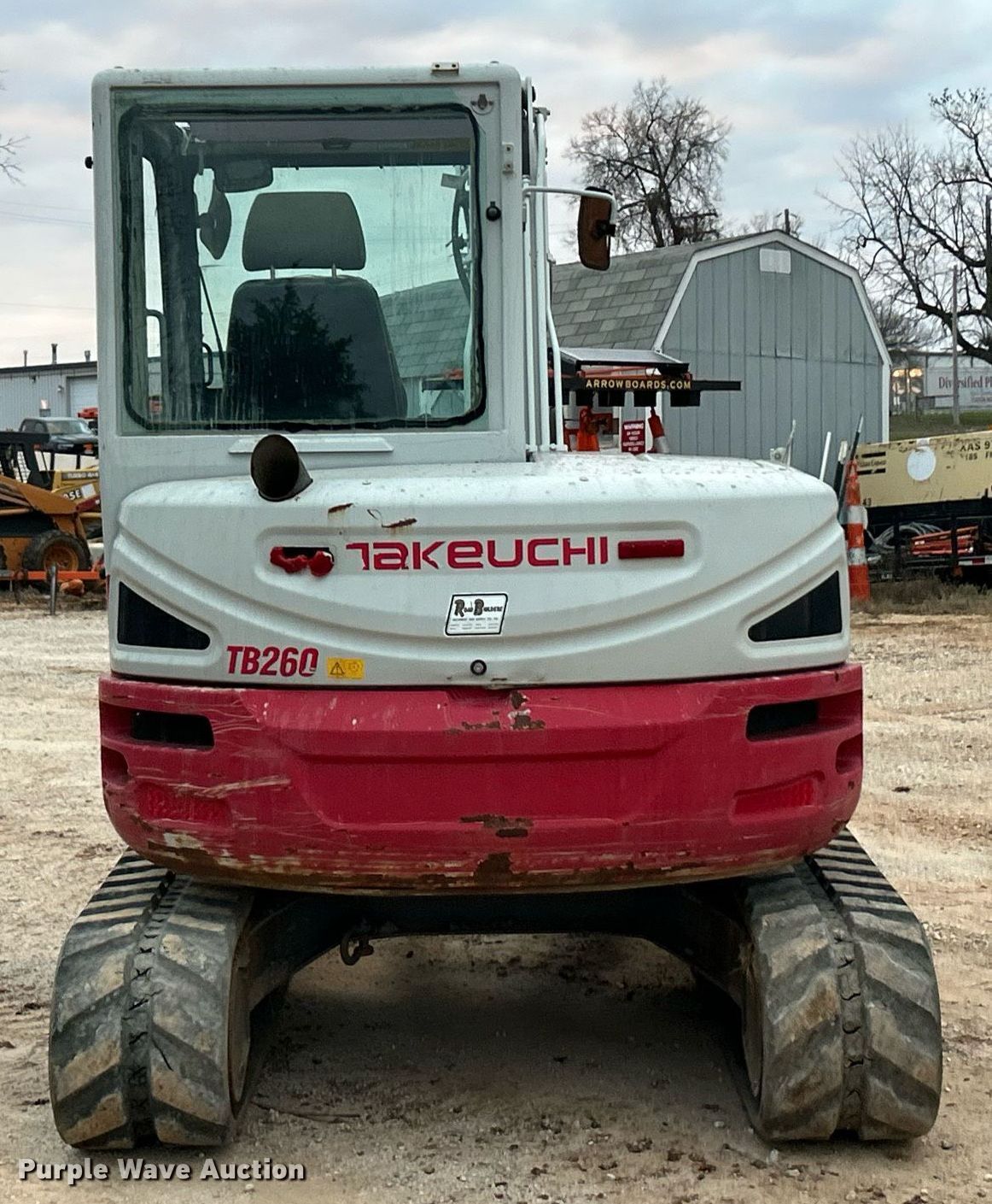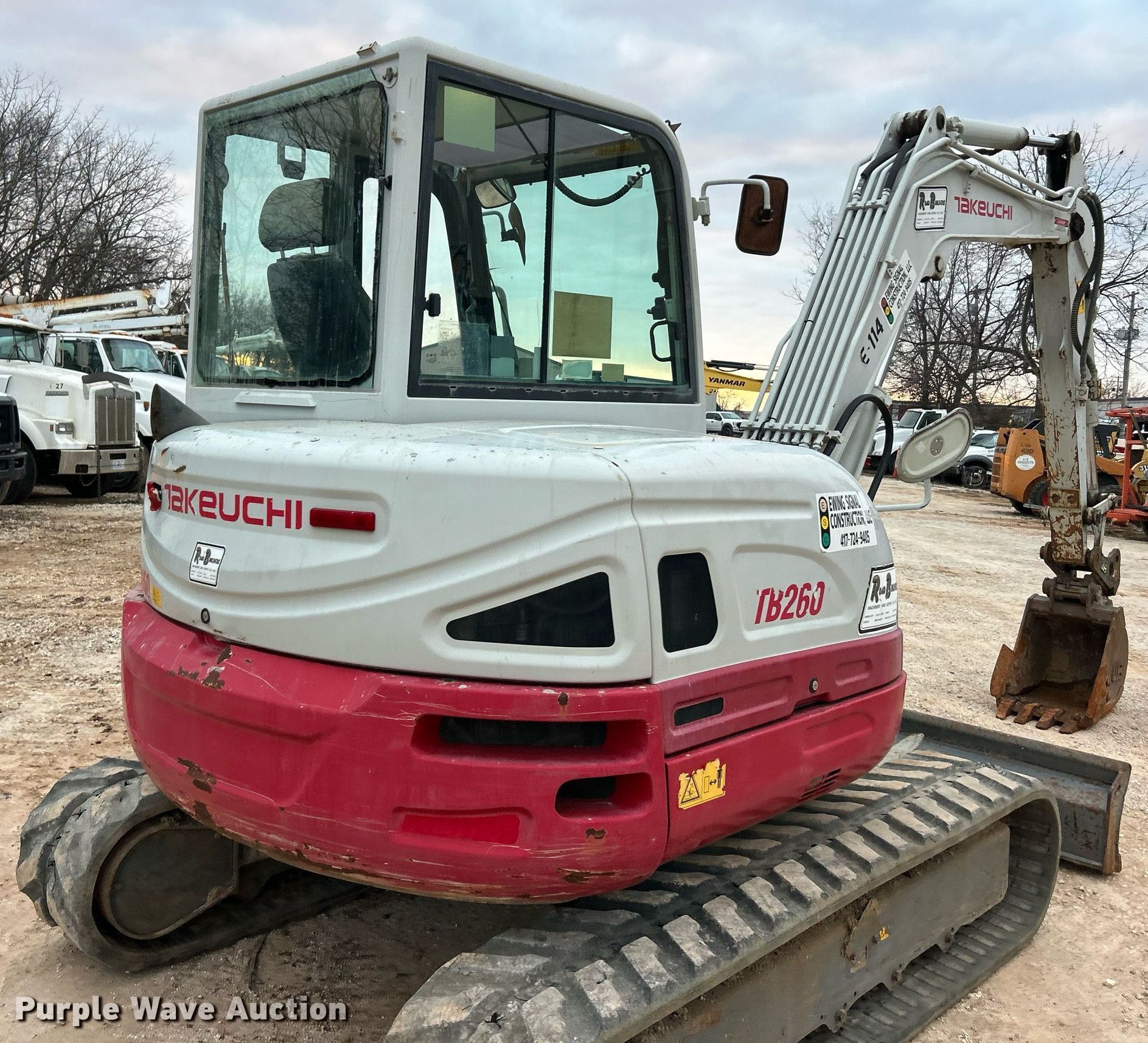 Purple Wave is selling a used Mini Excavator in Missouri. This item is a 2015 Takeuchi TB260 mini excavator with the following: Hours: 2,898 on meter, Serial: 126100911, Unit #: E114