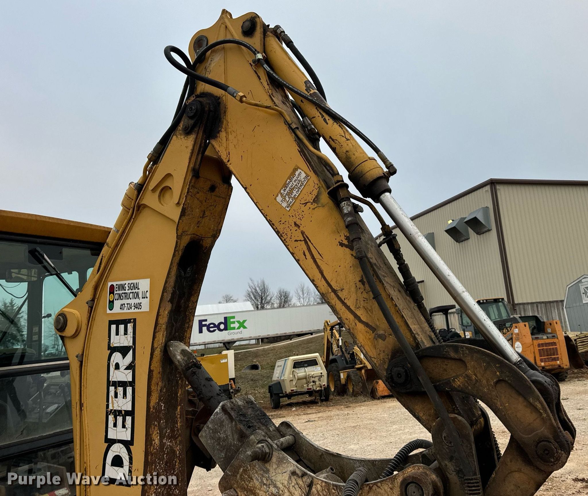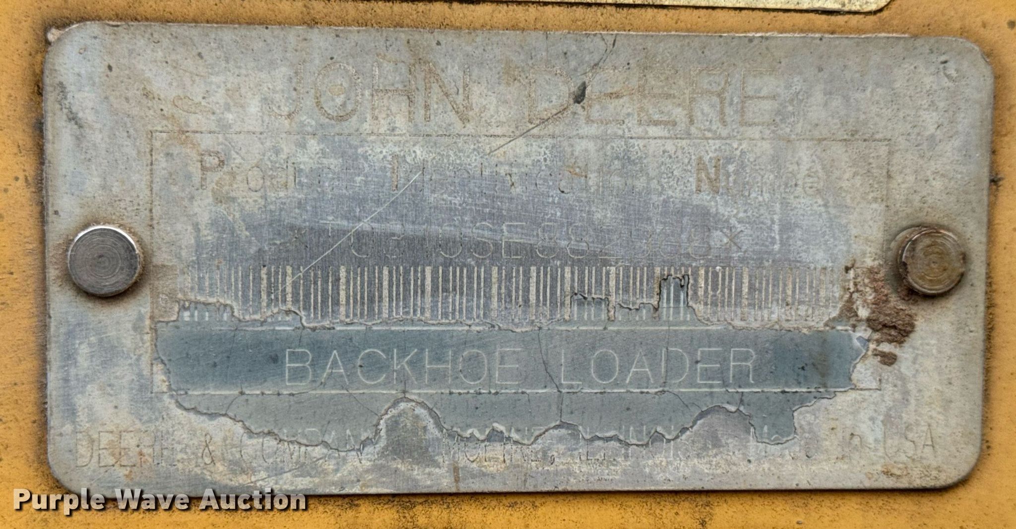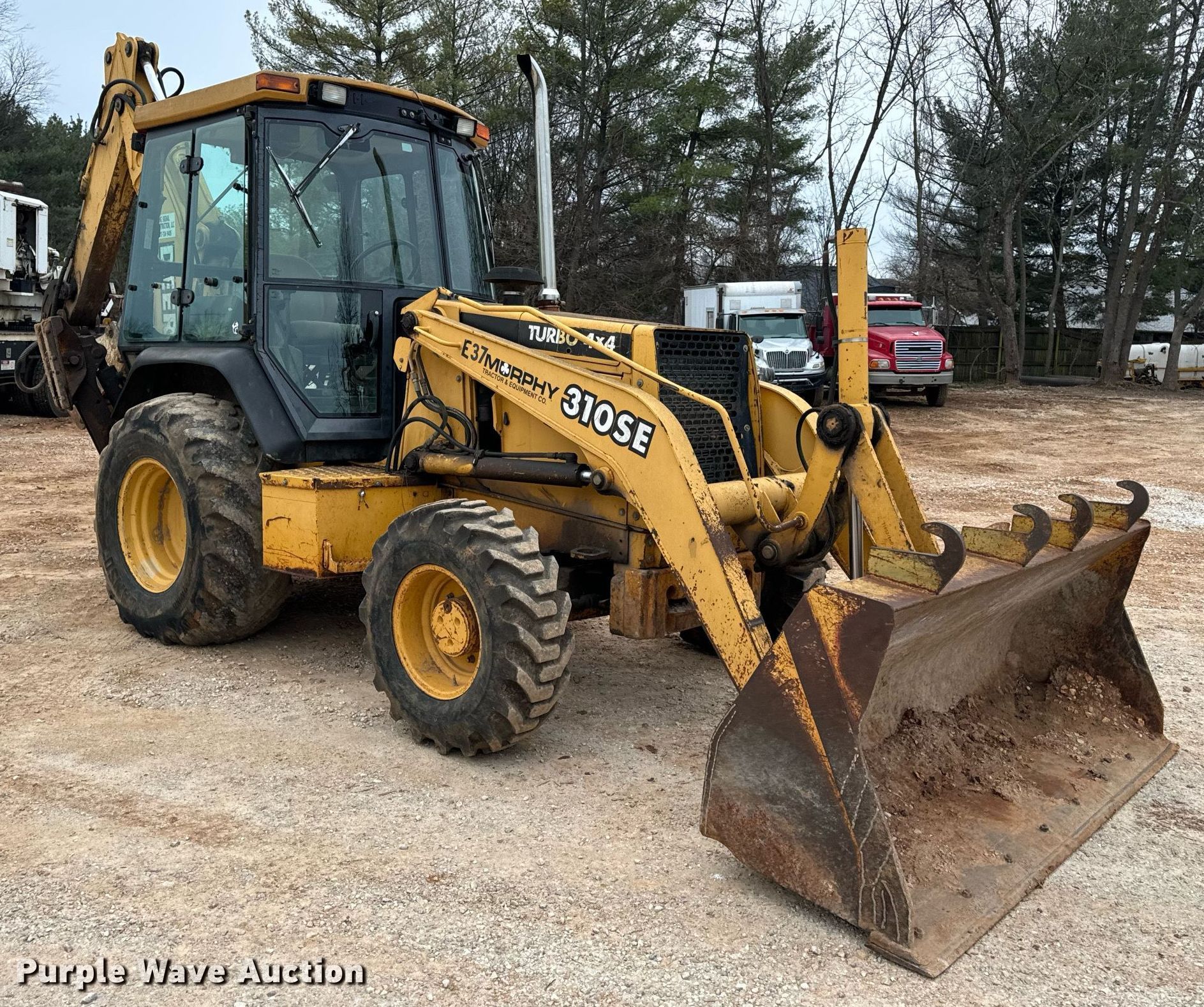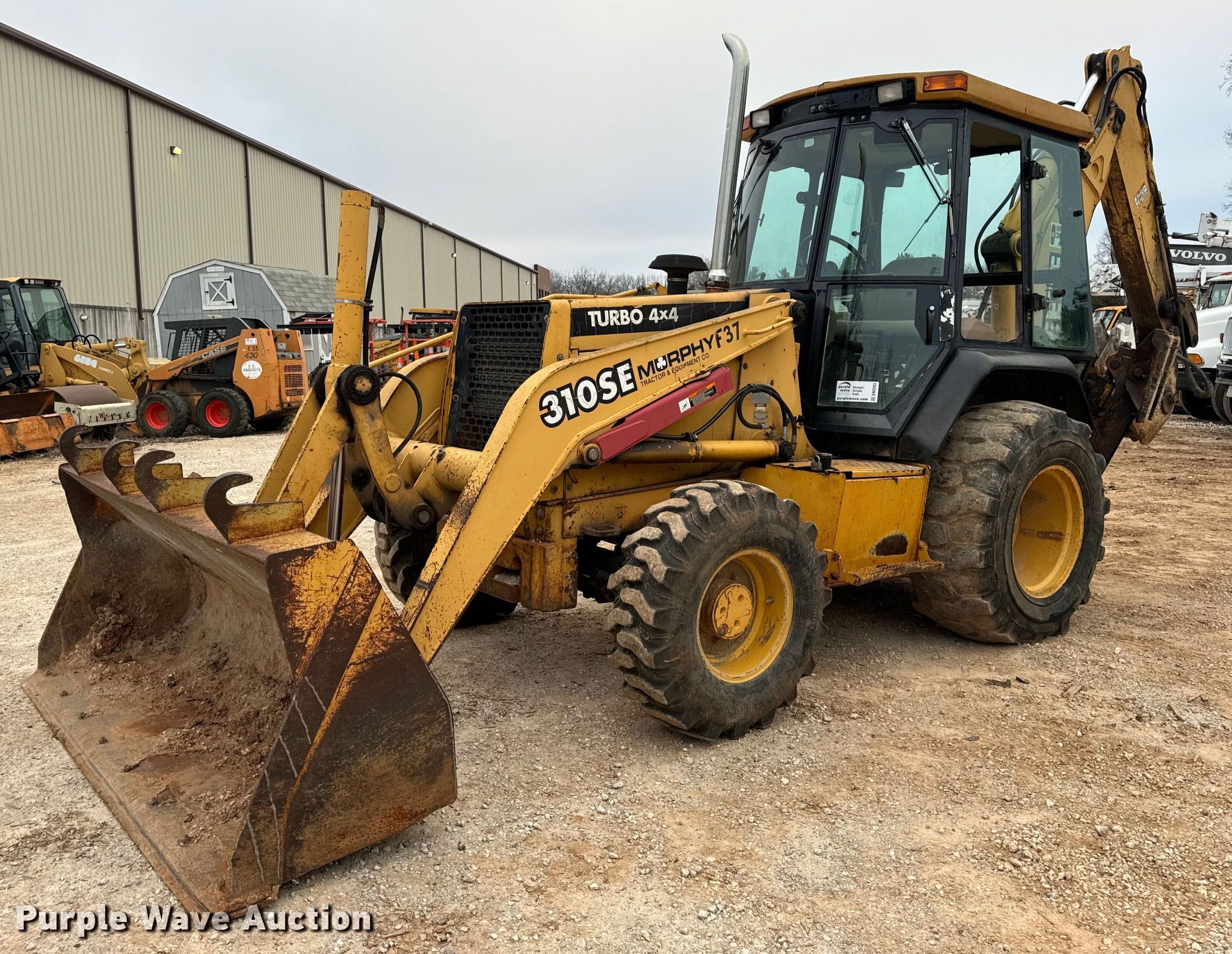 2000 John Deere 310SE backhoe. Hours: 7,641 on meter, Serial: T0310SE882968, Unit #: E37. Engine John Deere 4045TT050, Displacement: 4.5L, Cylinders: 4, Fuel type: Diesel. Transmission Shuttle shift, 4F - 4R. Chassis Four wheel drive. Operators station Enclosed cab, AC, Heat, Backhoe controls: Wobble stick / two stick. Features Loader Bucket John Deere, Width: 92", Cutting edge: Bolt-on, Backhoe Quick coupler: Manual, Auxiliary hydraulics, Breaker. Tires Front: 320/80-18, Rear: 19.5L-24. Notes Glass missing, Engine oil leak, Unknown operating condition of breaker, Hydraulic leak. Ewing Signal Construction LLC. - Open Inspection February 21 and 26. 1730 N Gregory. Nixa, MO 65714