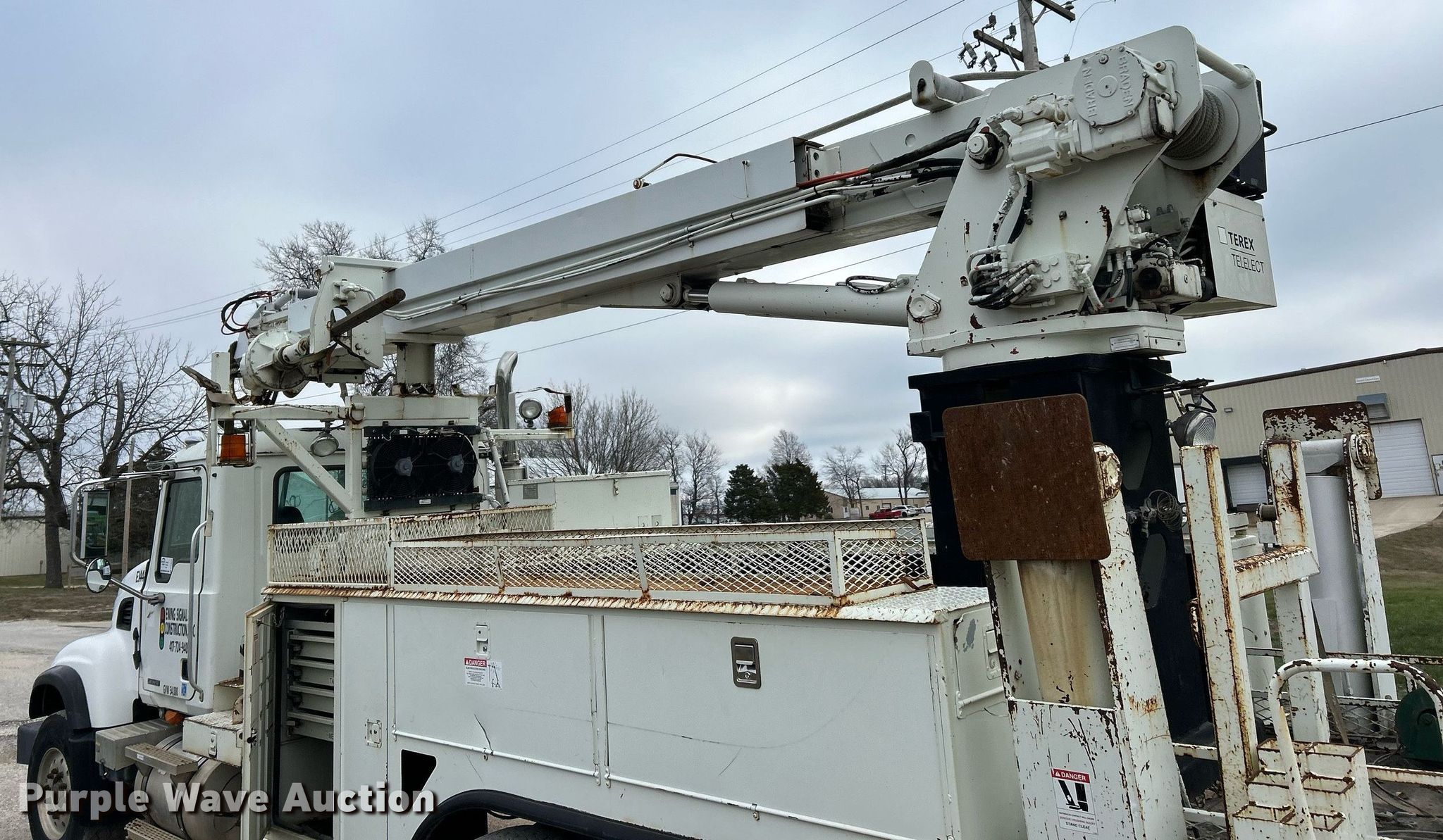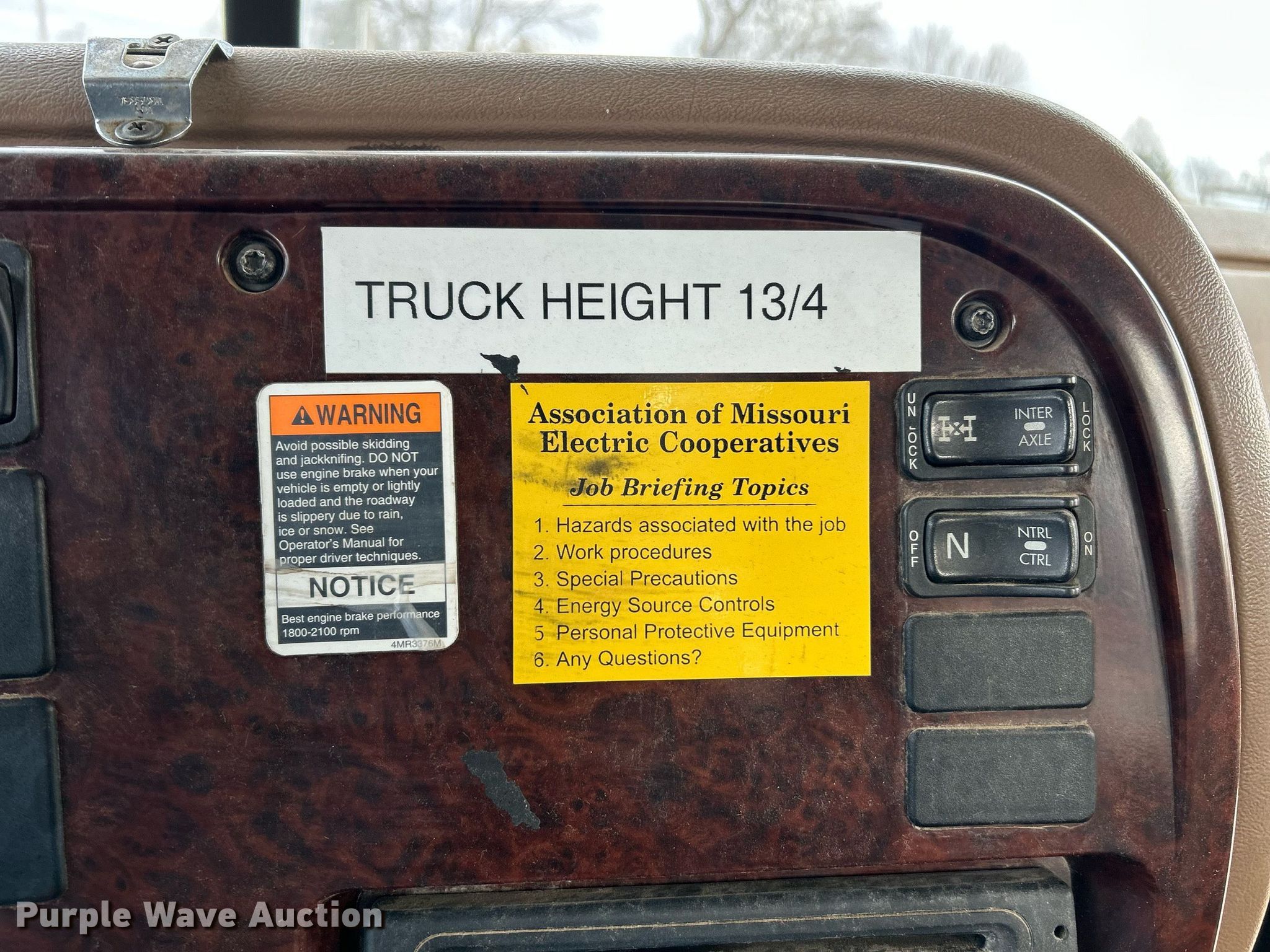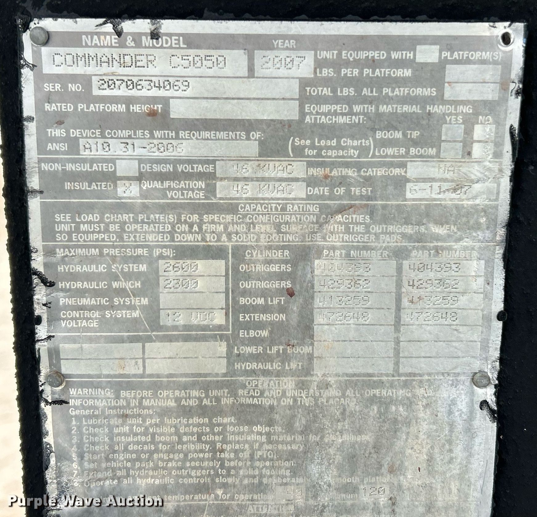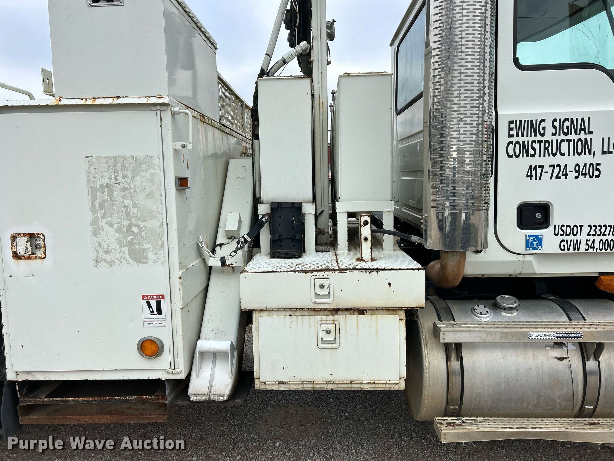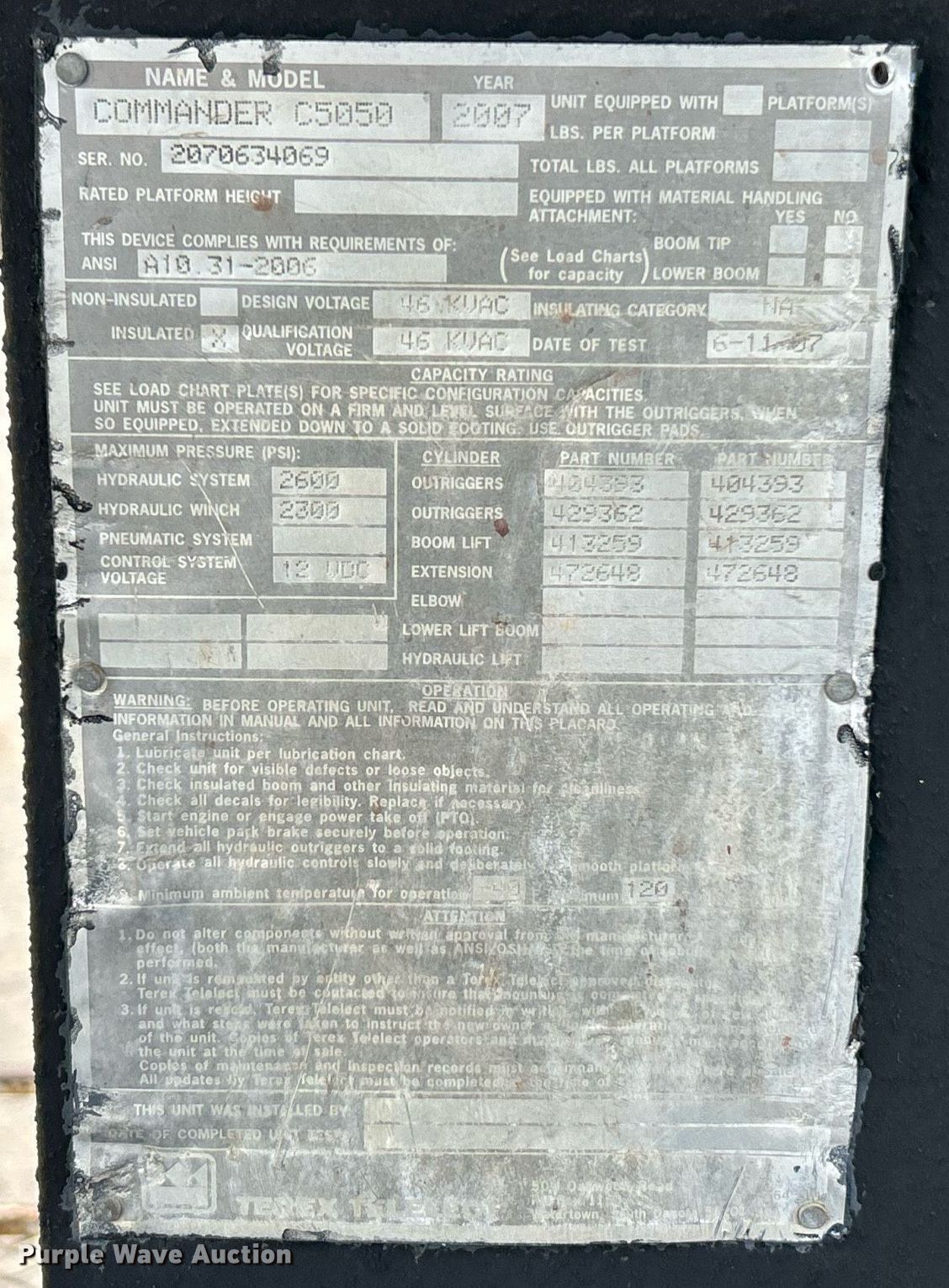 2007 Mack CV713 digger derrick truck. Miles: 138,360 on odometer, Hours: 12,887 on meter, VIN: 1M2AG11C07M058588, Unit #: E144. Engine Displacement: 12.0L, Cylinders: 6, Fuel type: Diesel. Transmission Mack Maxitorque, Manual. Chassis Axles: Tandem, Suspension: Camelback, Brakes: Air, PTO. Interior AC, Heat, Heated mirrors, Cruise control. Features Bed Terex Utilities, 16' 10" L x 94" W, Boom Terex Commander C5050, Serial: 2070634069, Boom type: Telescopic, Boom controls Platform/ basket, Material handler, Pole guide, Auger. Tires Front: 15R22.5, Rear: 11R22.5. Notes Windshield chipped or cracked, Non-operational front driver side toolbox door, Unknown operating condition of auger. Arkansas title. Title distribution may be delayed up to 30 days from verification of funds. Ewing Signal Construction LLC. - Open Inspection February 21 and 26. 1730 N Gregory. Nixa, MO 65714