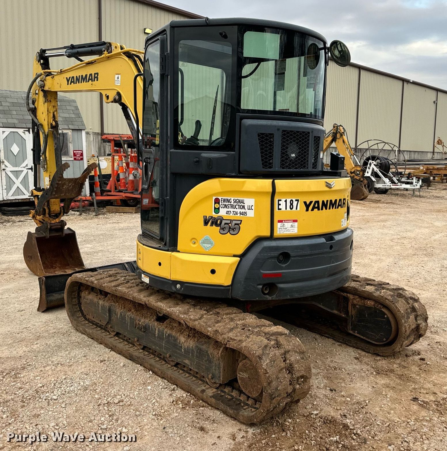Purple Wave is selling a used Mini Excavator in Missouri. This item is a Yanmar VIO55-6A mini excavator with the following: Hours: 1,772 on meter, Serial: YMRVI055JKAJAG474, Unit #: E187